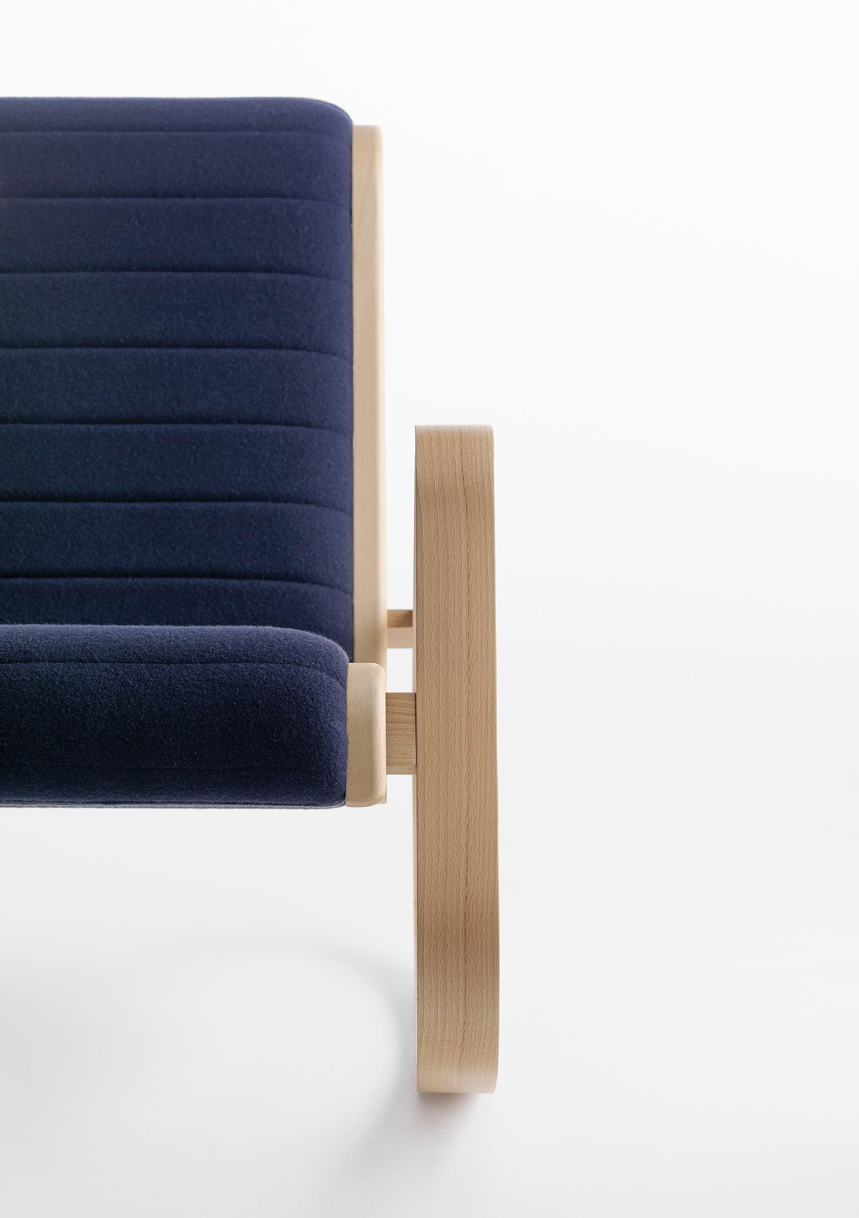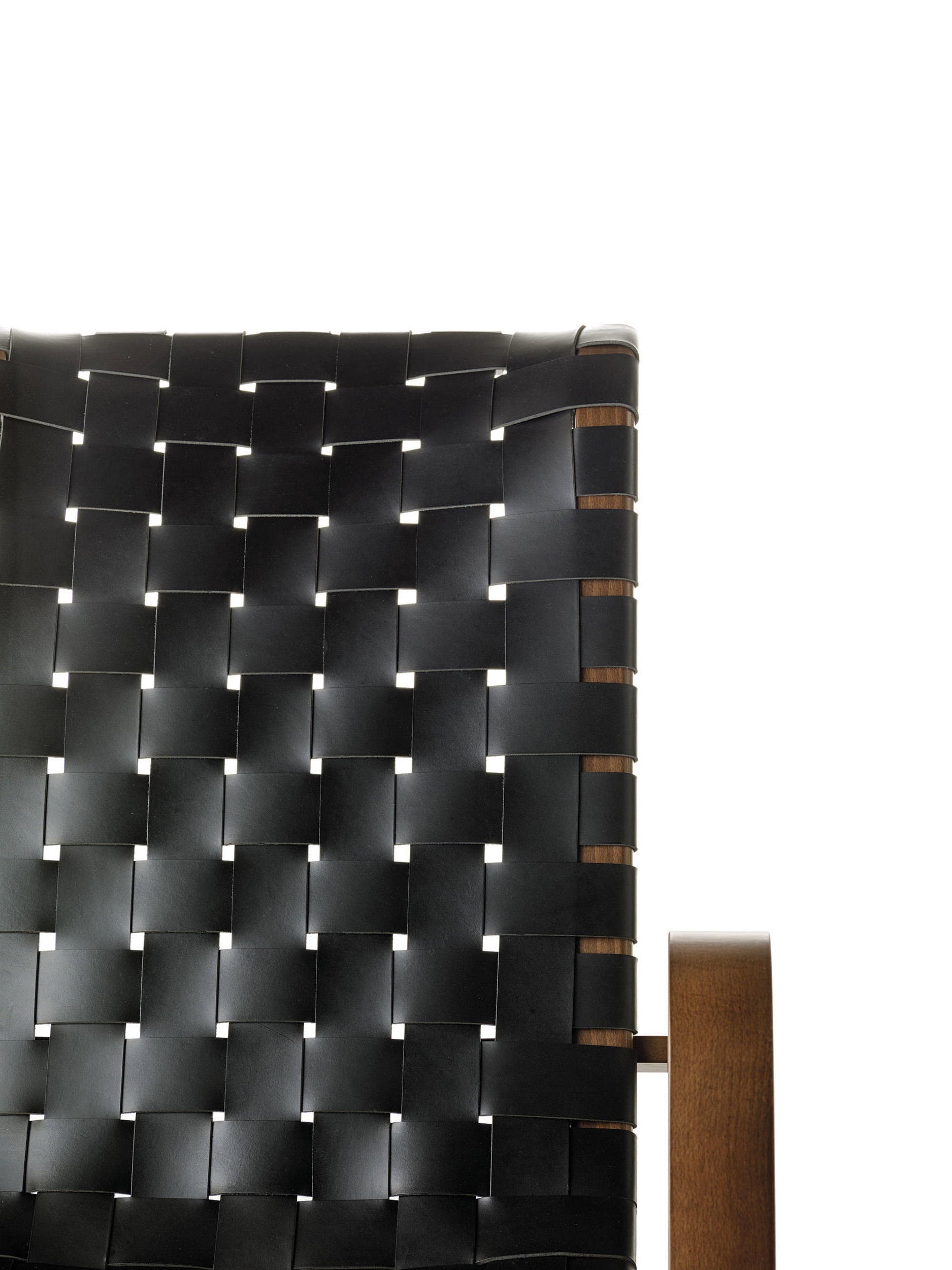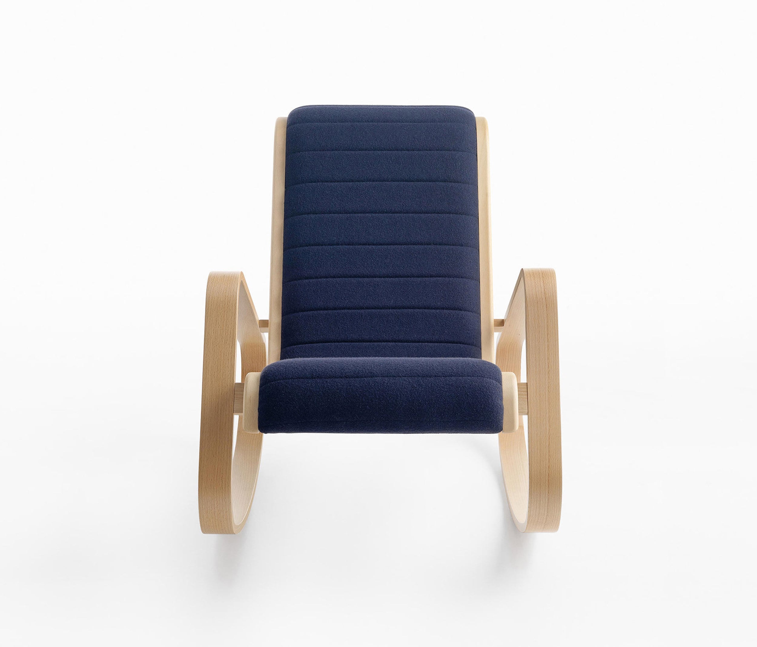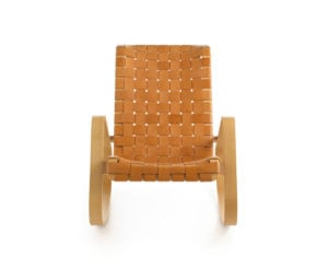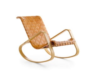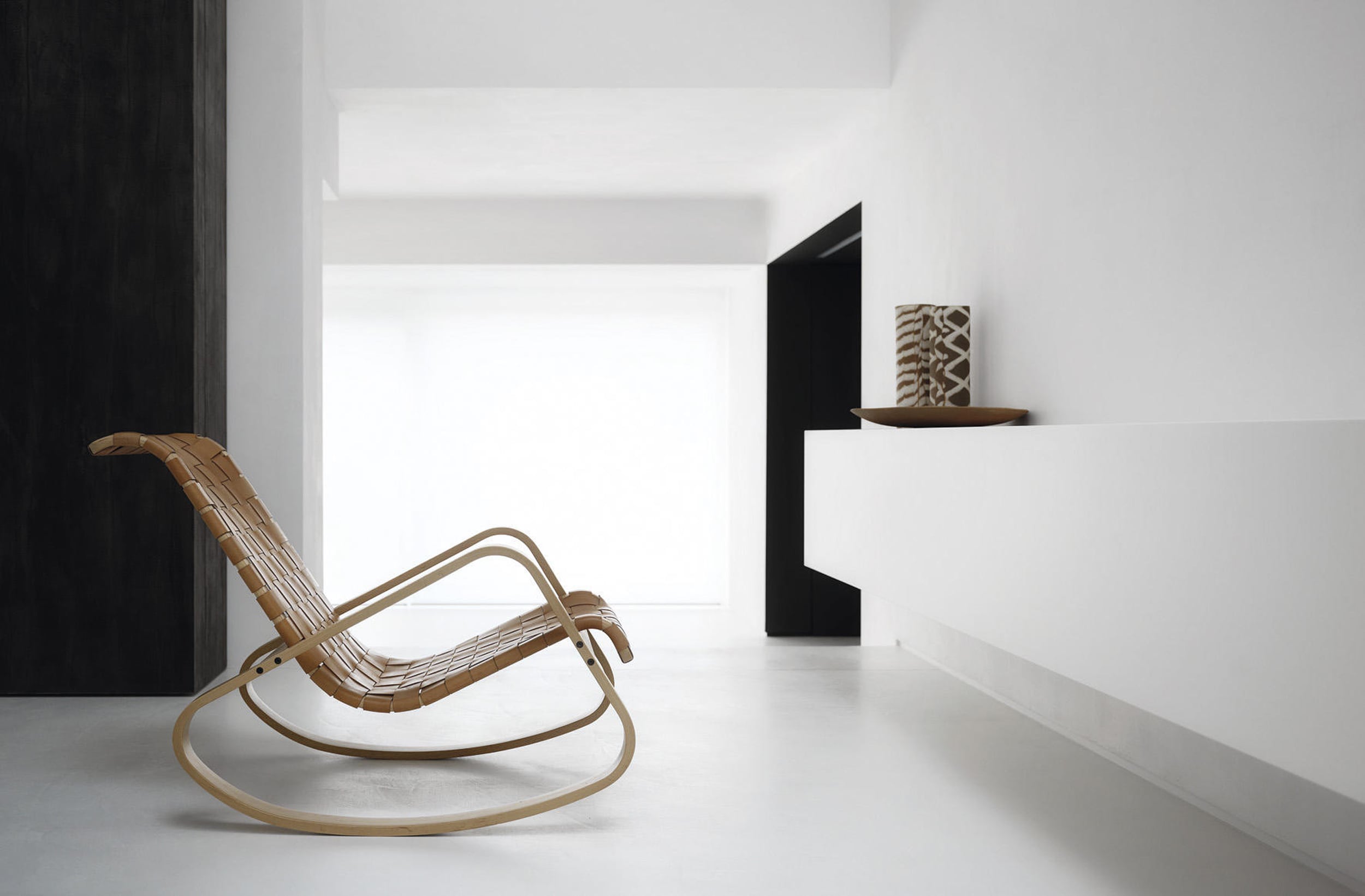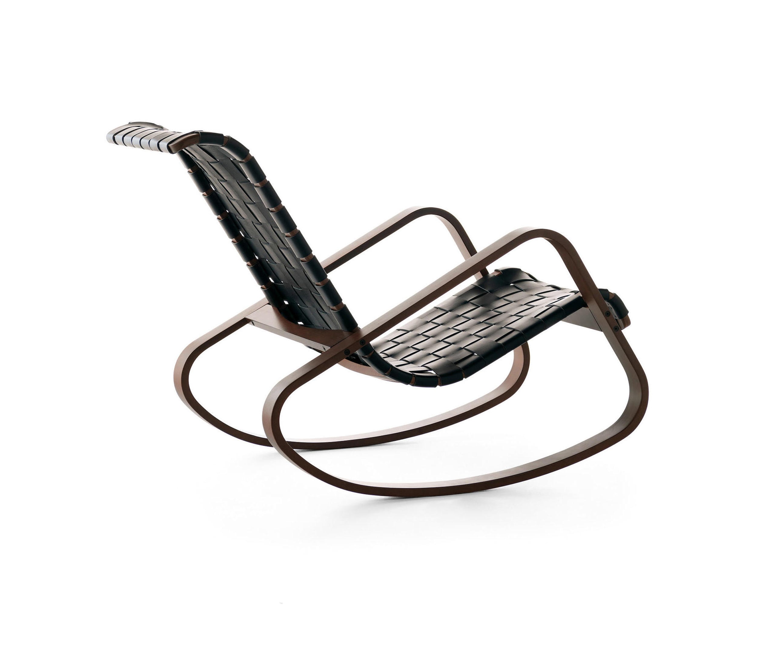 A collaborative effort of Studio Technico Crassevig from 1970, the Dondolo rocking armchair has attained an iconic status in the Crassevig collection. The choice of materials, the solid wood steam bending technique, the weave of leather and cotton and the ergonomic design are perfectly reproduced in a model that epitomises the ñMade in Italyî label.