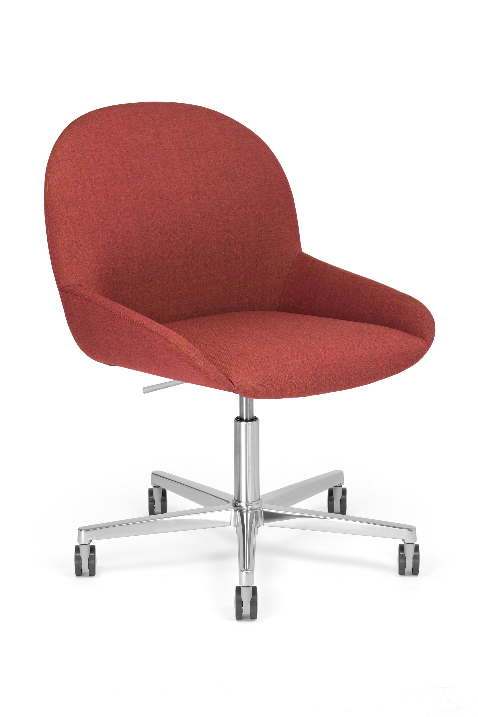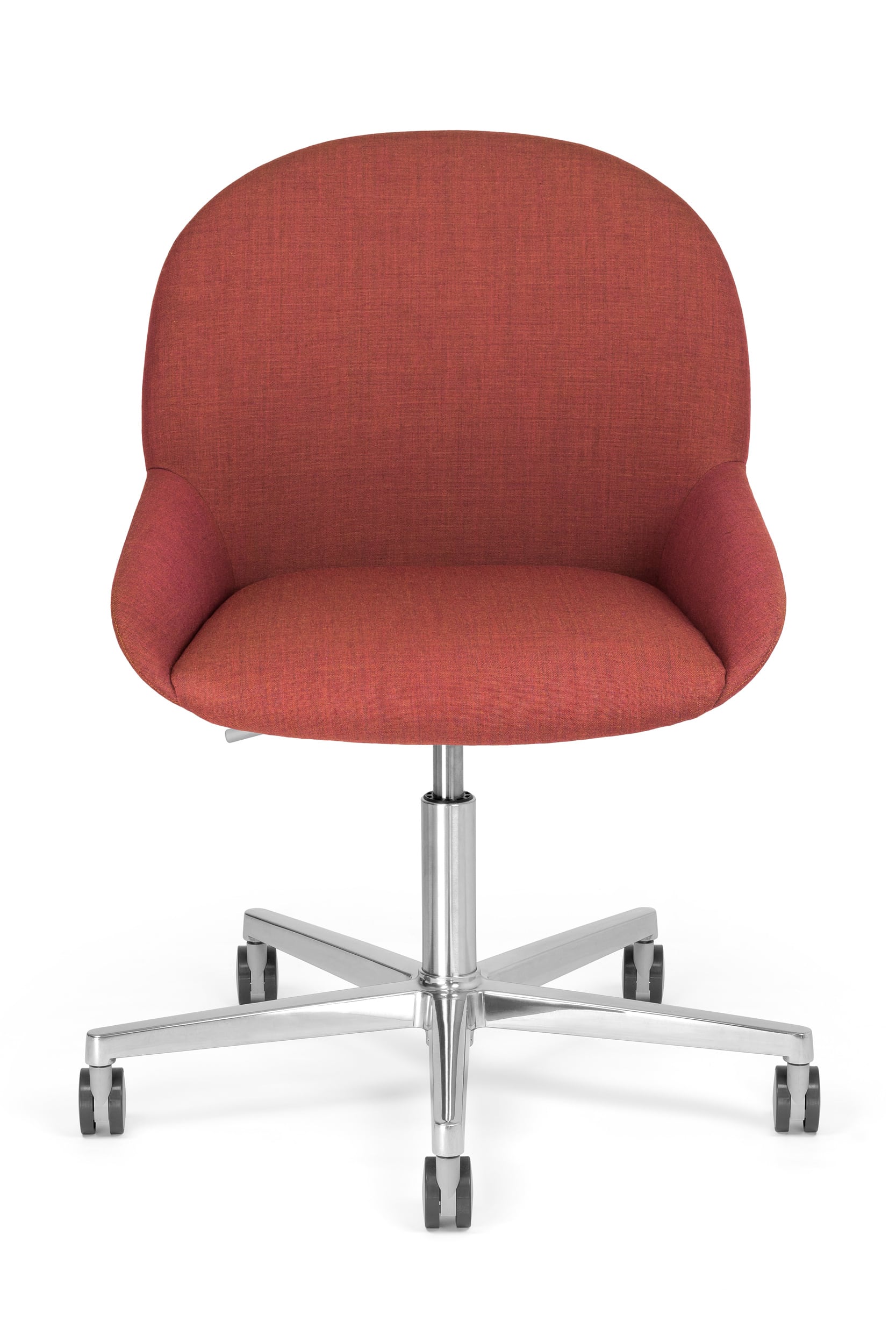 Elba is available with a timber or metal 4-Leg frame, wooden trestle, aluminum 4-Way swivel (with or without castors) or aluminum 5-Way swivel base on castors. Elba is available in both armless or armchair options and can be upholstered in a variety of fabrics.