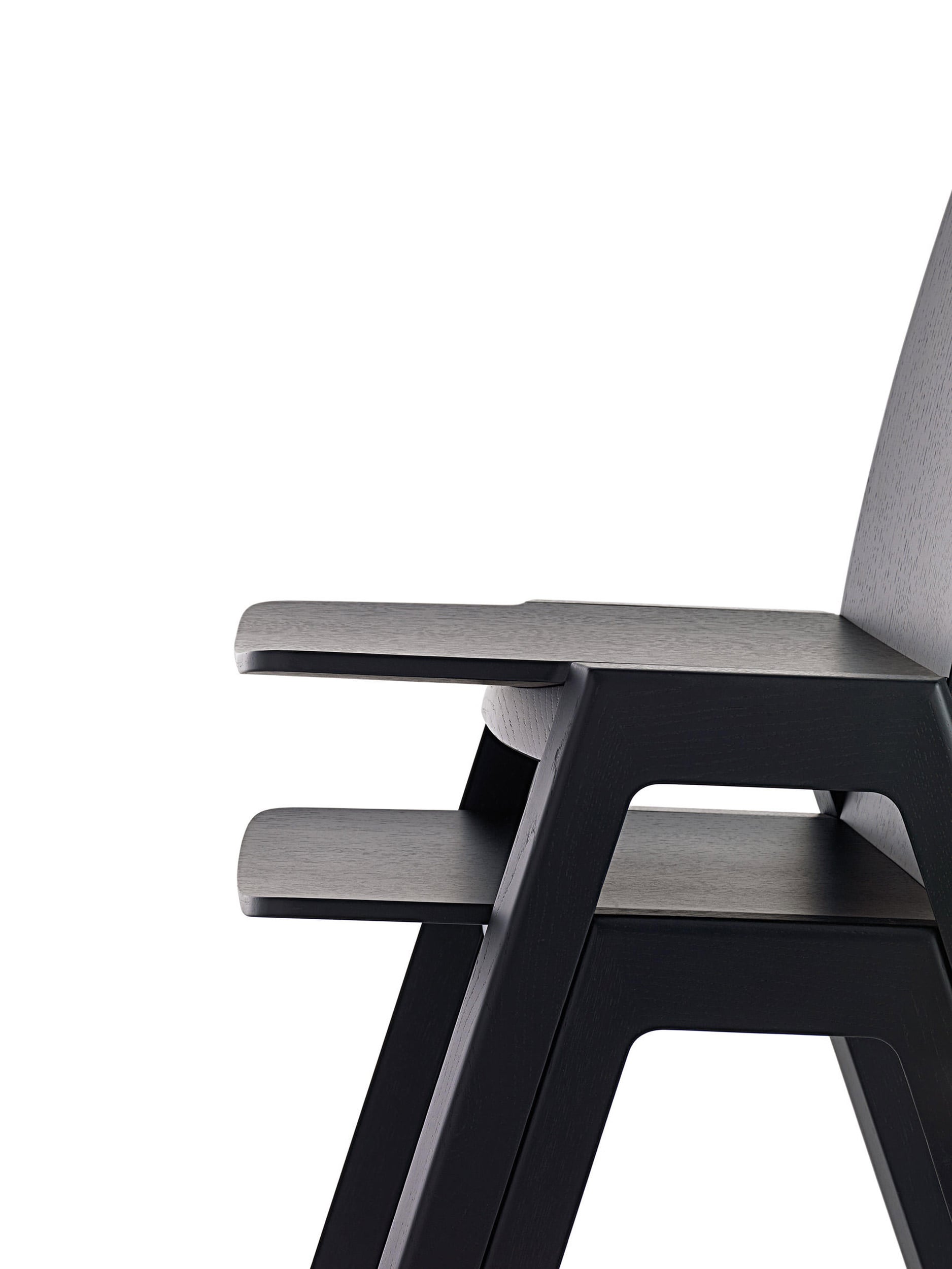 Kira’s is constructed from solid timber, further enhancing its stability, while the seat and backrest are available in veneer or with an upholstered seat. Kira is perfectly suited for dining areas and communal spaces.