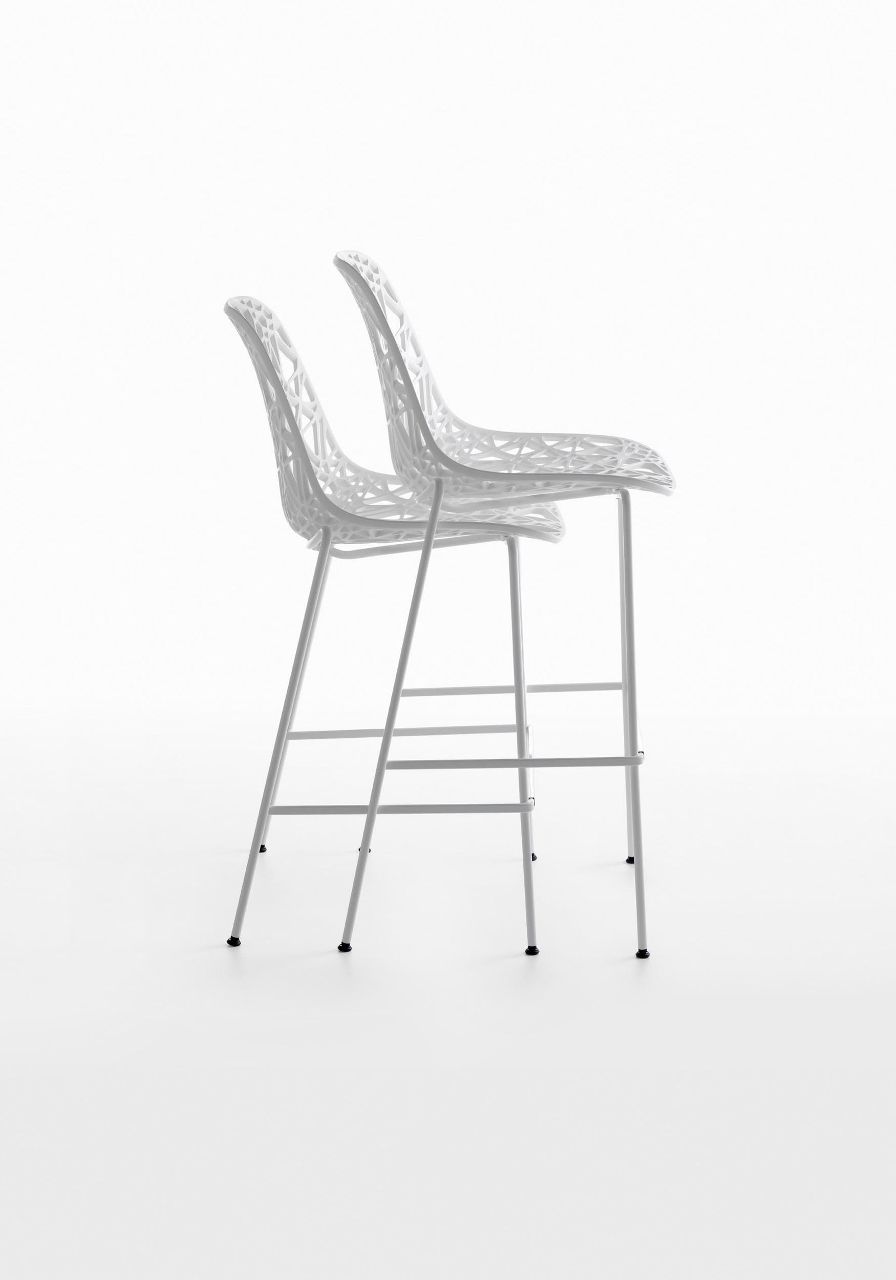 Available in 6 colours with powdercoat frames the Nett collection includes a stacking chair and stool: available in both counter and bar stool and a folding table. Light and resistant, Nett is also suitable for outdoor use as its design prevents the collection of rainwater. A removable seat cushion suitable for both indoor or outdoor use, is also available.