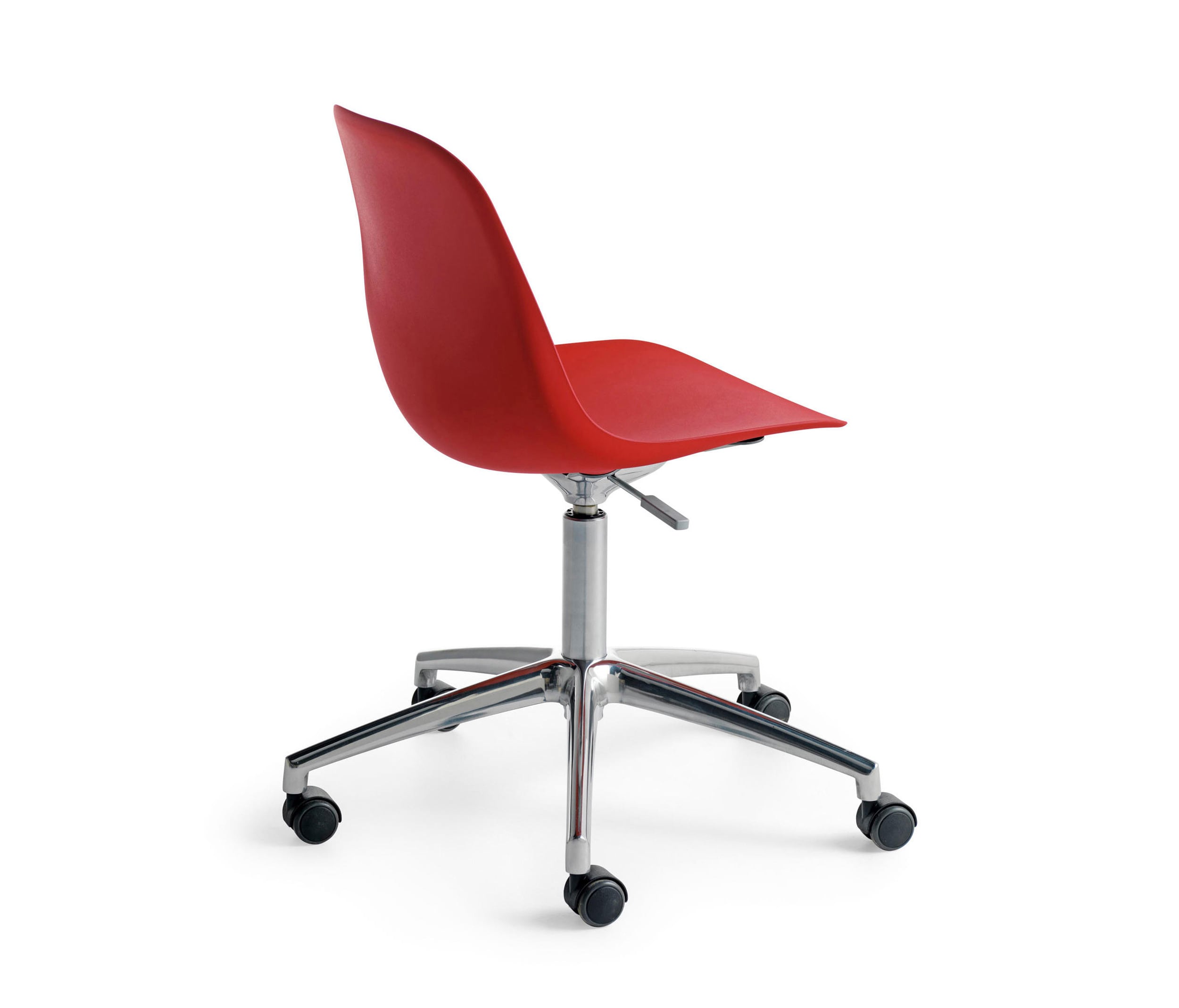 The Pola family of seating includes a chair and armchair on a variety of base options: 4 Leg (timber or steel), Sled, 4-Way Swivel on glides, timber 4-Way Trestle and 5-Way Swivel chair on castors. Chairs are available with or without arms, and in selected house colours or finishes