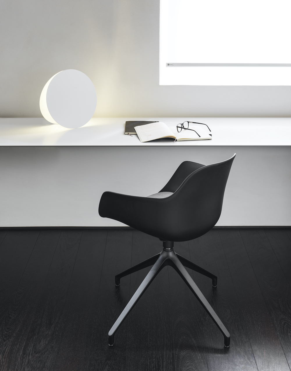 The shell of the Pola Light and Pola Round seating collection has a strikingly simple shape which follows and supports the lines of the human body with amazing comfort. Constructed in polypropylene, the shells are available un-upholstered in 7 solid colours, with an upholstered seat pad or fully upholstered fabric or leather.