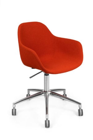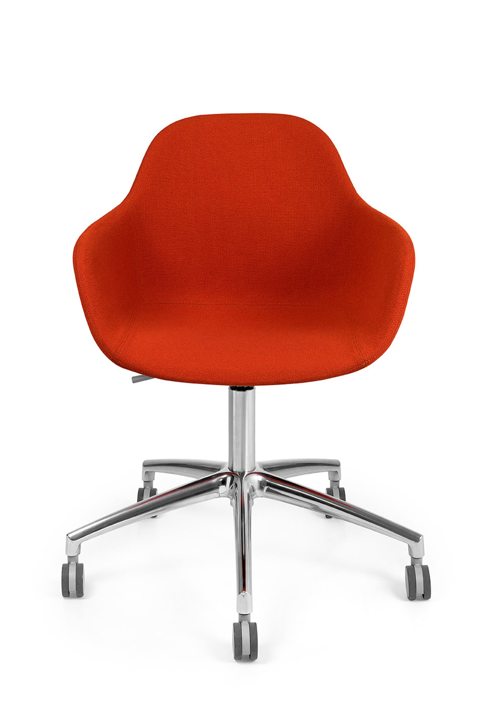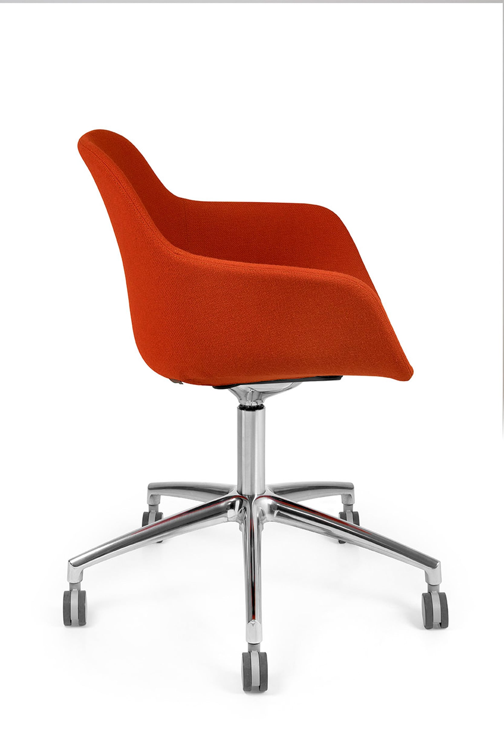 The Pola family of seating includes a chair and armchair on a variety of base options: 4 Leg (timber or steel), Sled, 4-Way Swivel on glides, timber 4-Way Trestle and 5-Way Swivel chair on castors. Chairs are available with or without arms, and in selected house colours or finishes