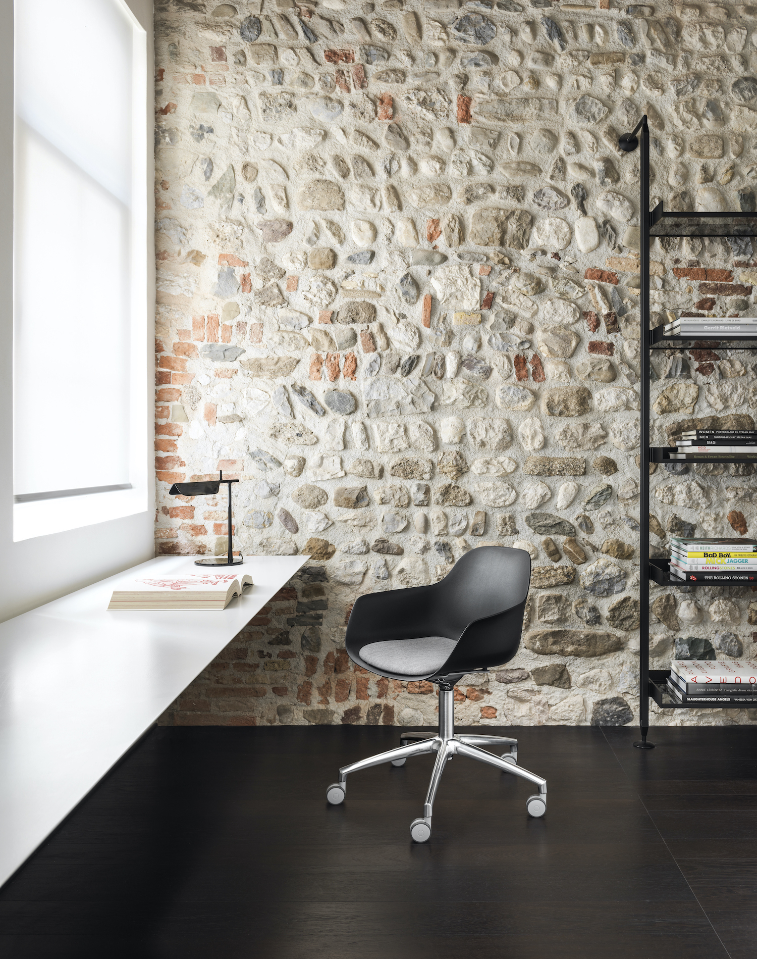 The shell of the Pola Light and Pola Round seating collection has a strikingly simple shape which follows and supports the lines of the human body with amazing comfort. Constructed in polypropylene, the shells are available un-upholstered in 7 solid colours, with an upholstered seat pad or fully upholstered fabric or leather.