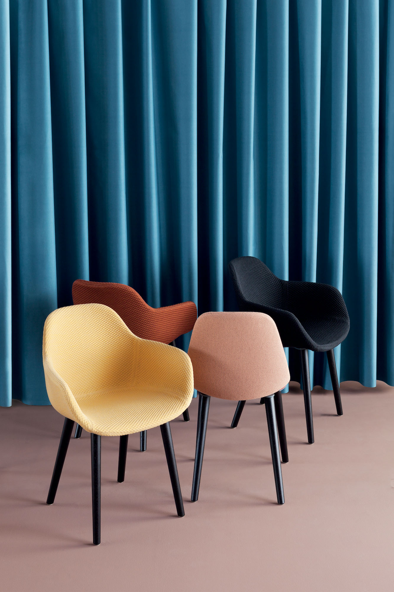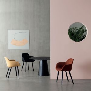 The shell of the Pola Light and Pola Round seating collection has a strikingly simple shape which follows and supports the lines of the human body with amazing comfort. Constructed in polypropylene, the shells are available un-upholstered in 7 solid colours, with an upholstered seat pad or fully upholstered fabric or leather.