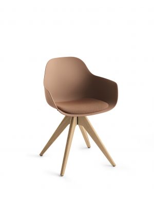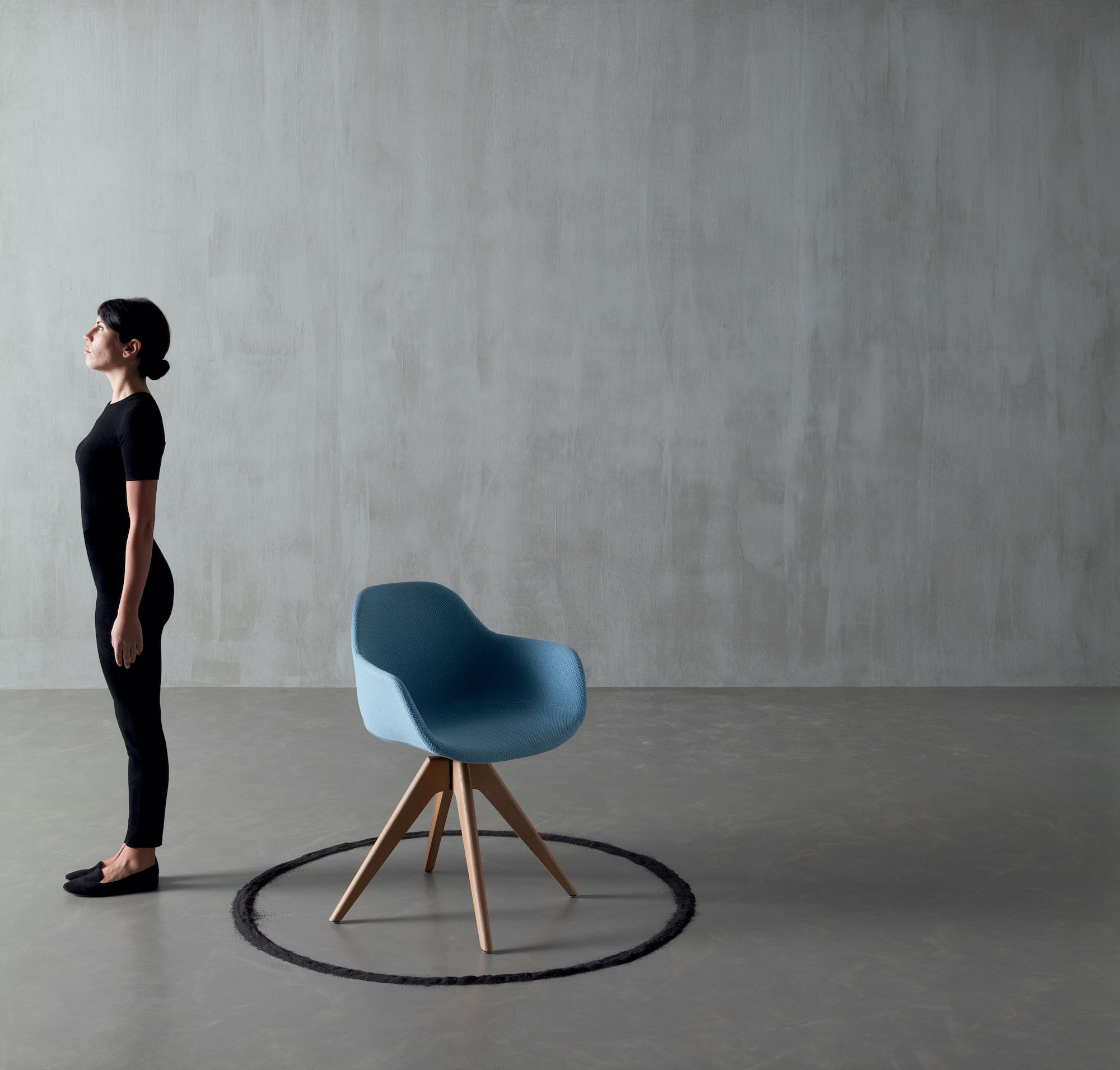The Pola family of seating includes a chair and armchair on a variety of base options: 4 Leg (timber or steel), Sled, 4-Way Swivel on glides, timber 4-Way Trestle and 5-Way Swivel chair on castors. Chairs are available with or without arms, and in selected house colours or finishes