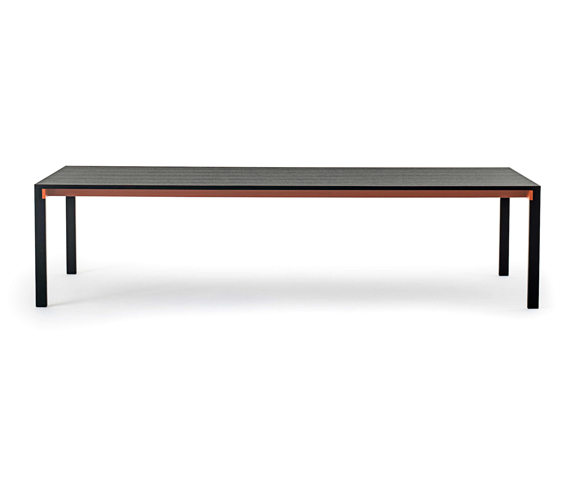 Design emphasises shapes, materials and technology. Beam, enhances the symbolic value of a table, thanks to its lightness, almost suspended top, held to the ground by its geometric legs.