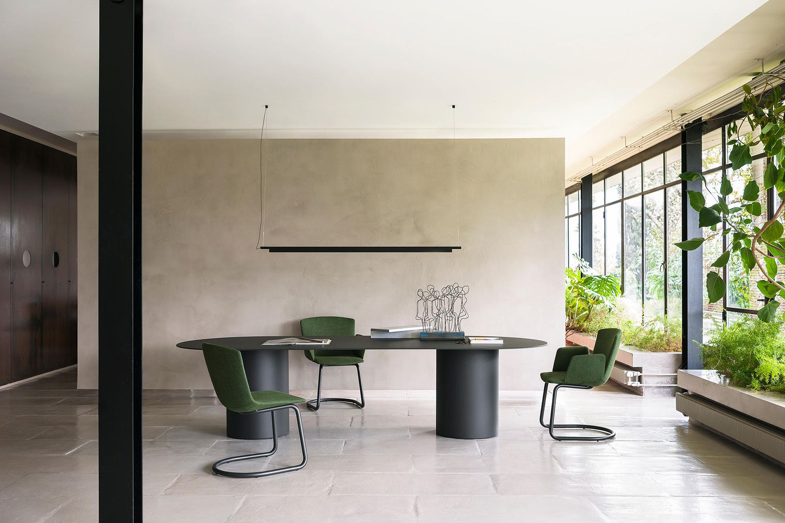 A variety of base and arm options allow Calum to take on many forms. Surprising but reassuring at the same time, it is the natural evolution of a collection of chairs for residential use and contract environments.
