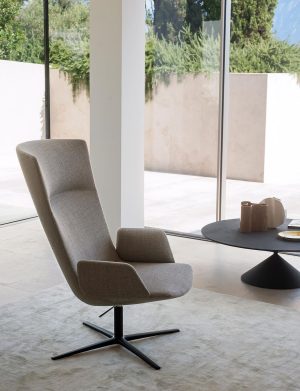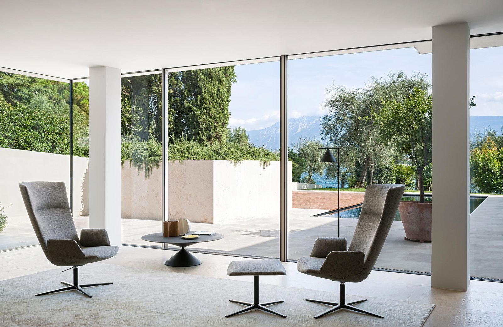 The delicate and discreet silhouette of Calum fits spontaneously into home and contract environments. The collection offers extremely comfortable seats in a pure and fluid form, which rest on the ground lightly, fitting easily and naturally into any context. Relaxing and graceful thanks to its delicate profile, Calum has a simple, spontaneous and intuitive shape.