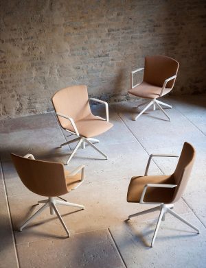 A variety of base and arm options allow Calum to take on many forms. Surprising but reassuring at the same time, it is the natural evolution of a collection of chairs for residential use and contract environments.