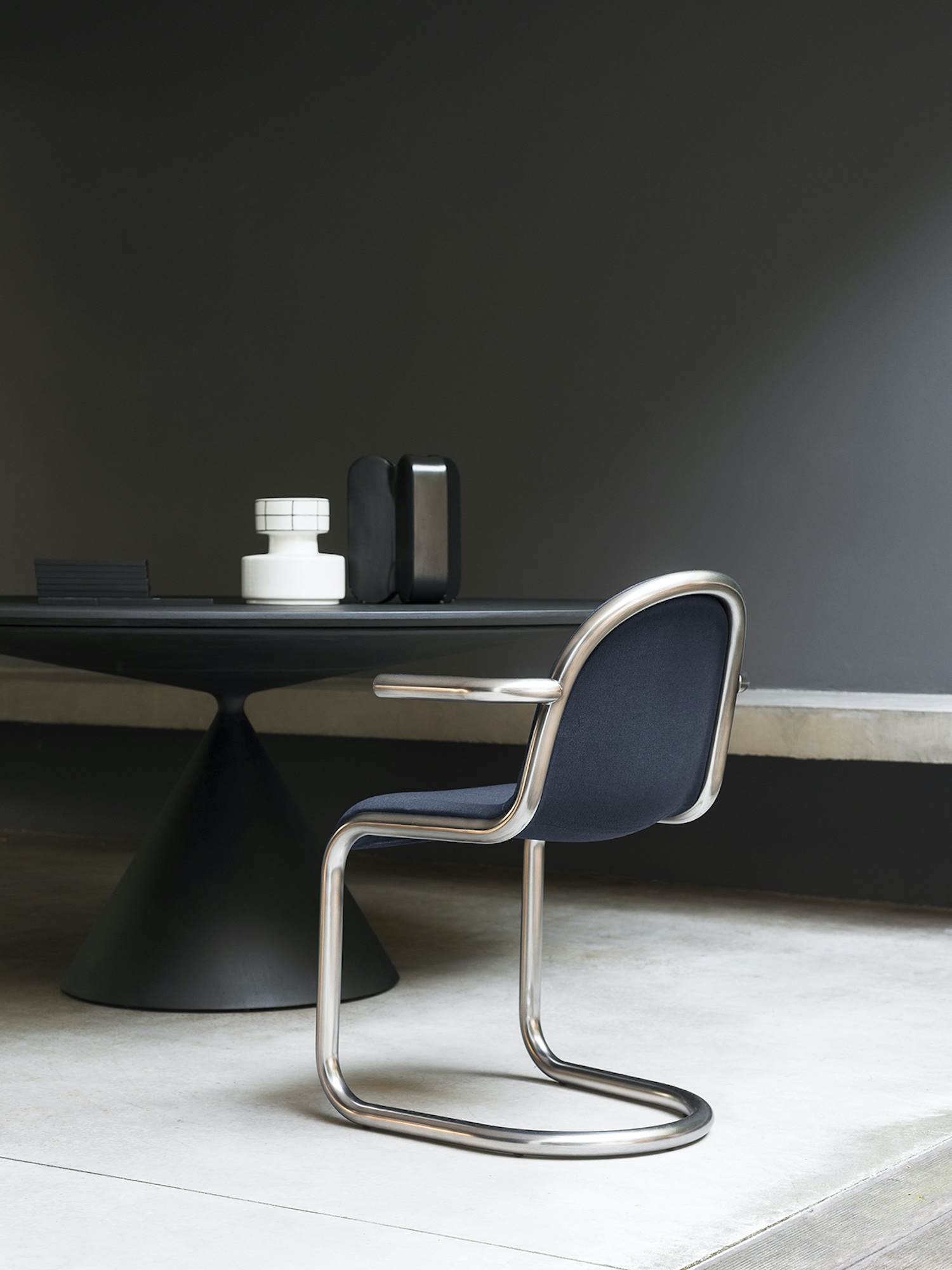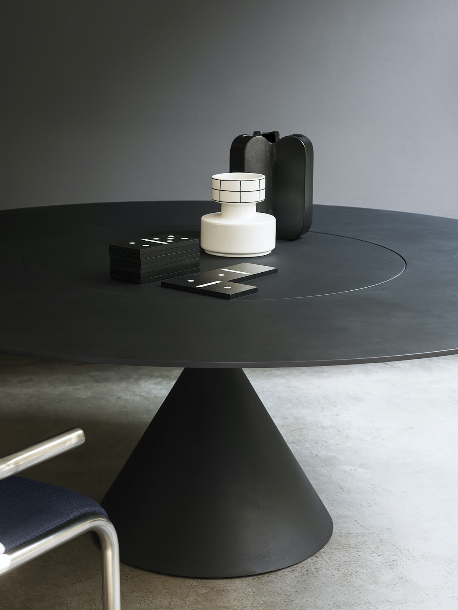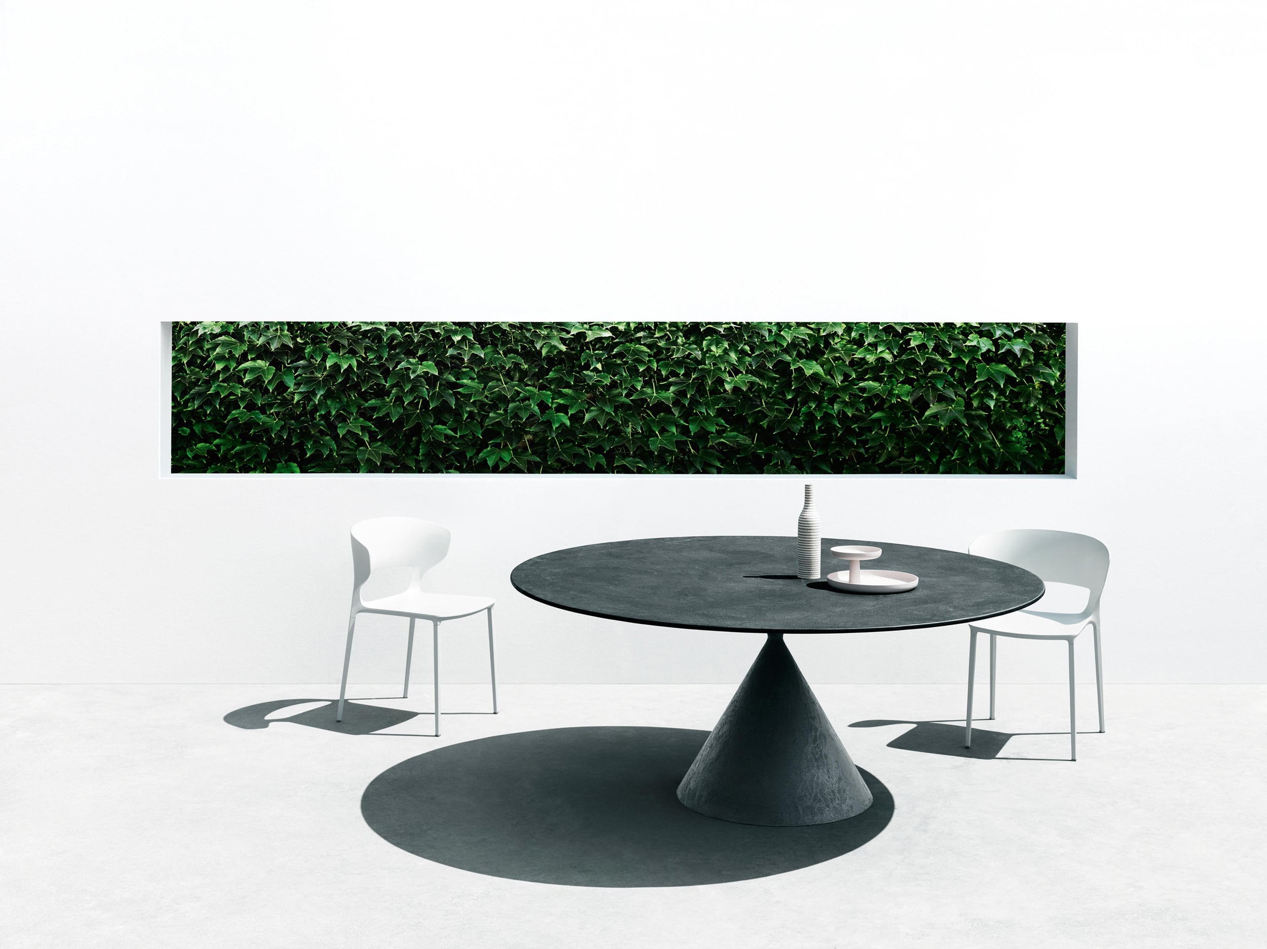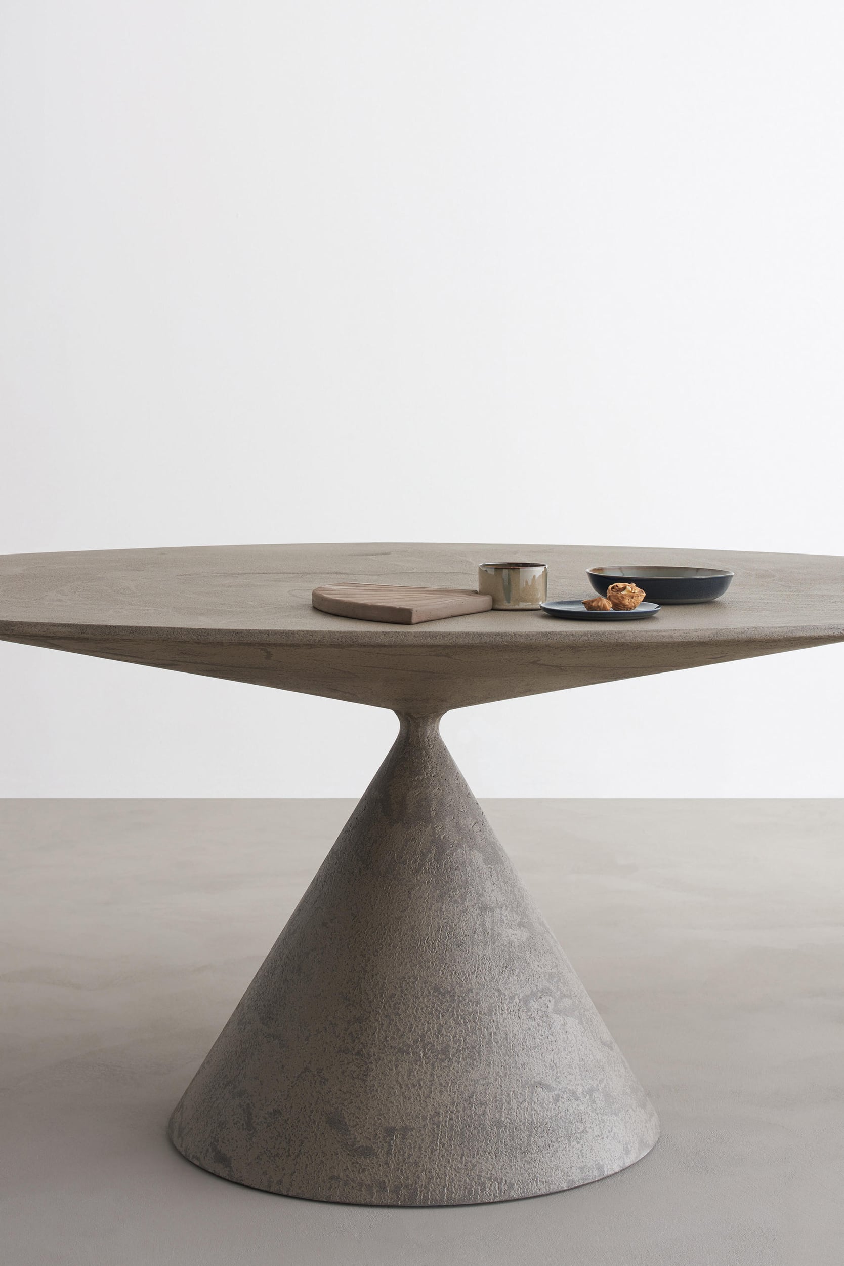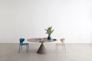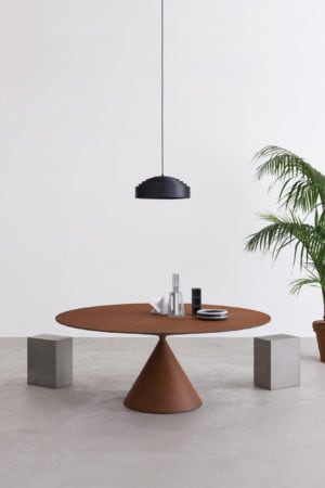 More than a table, Clay is a sculpture, a perfect union of beauty and harmonious proportions. The meeting of two volumes achieves a perfect balance of one over the other. The Clay table is visually remarkable feat of engineering in that the round top balances boldly on a fine conical base with ease and rigidity. This critical construction detail was resolved by developing a connection which, despite its small size, does not compromise the stability of the table.