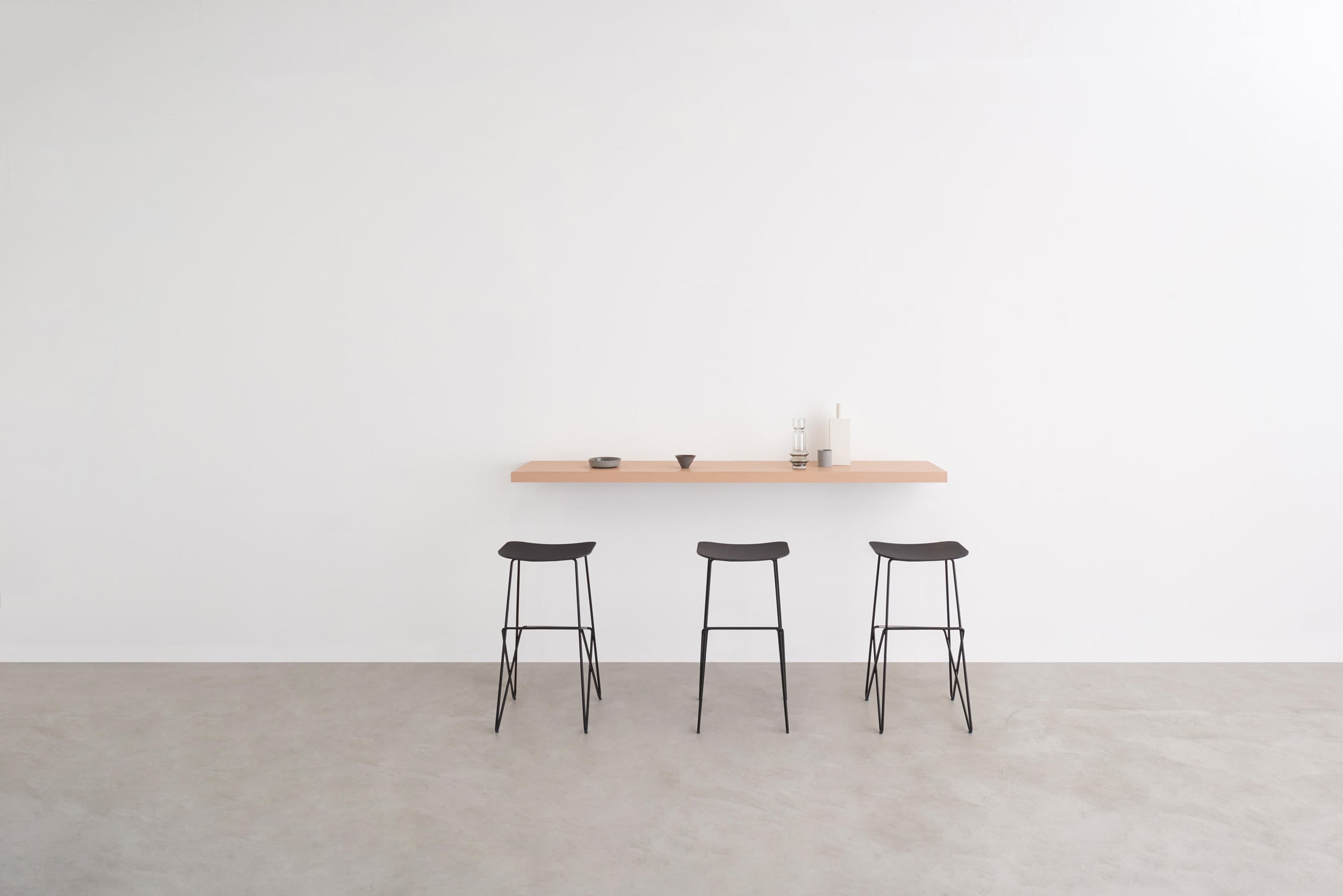 A perfect sensation of infinity generated by an almost virtual line projected into space. The frame of the Endless stool supports a gently curved seat, continuing to travel like a laser beam, where every curve or straight line plays a structural or comfort-related role.