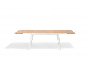 The extendable dining table is always a design challenge in combining the balance of technical and formal functioning. Fourmore makes a synthesis of this balance with a simple gesture of the mechanism, together with aesthetic and linear rigour, where the table maintains its proportion, both in the closed and extended versions.