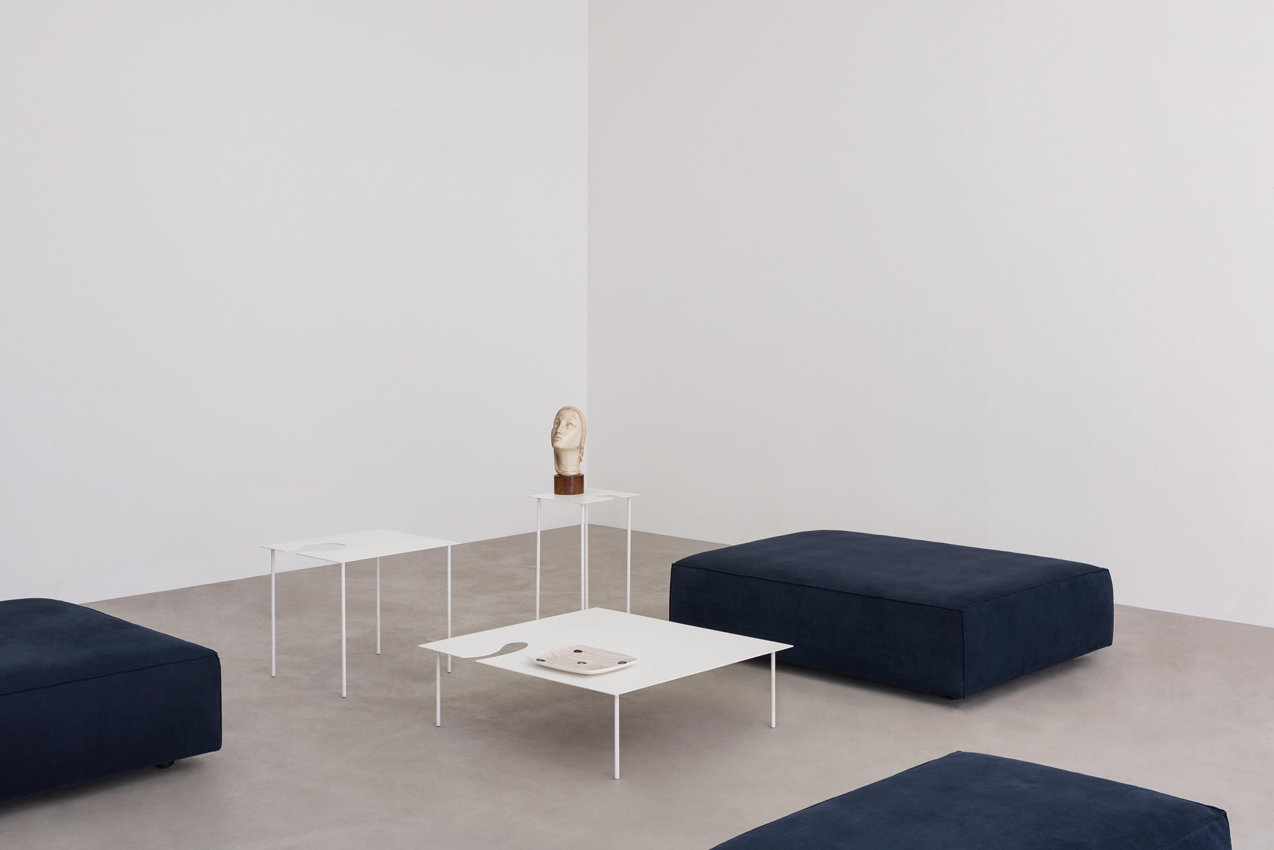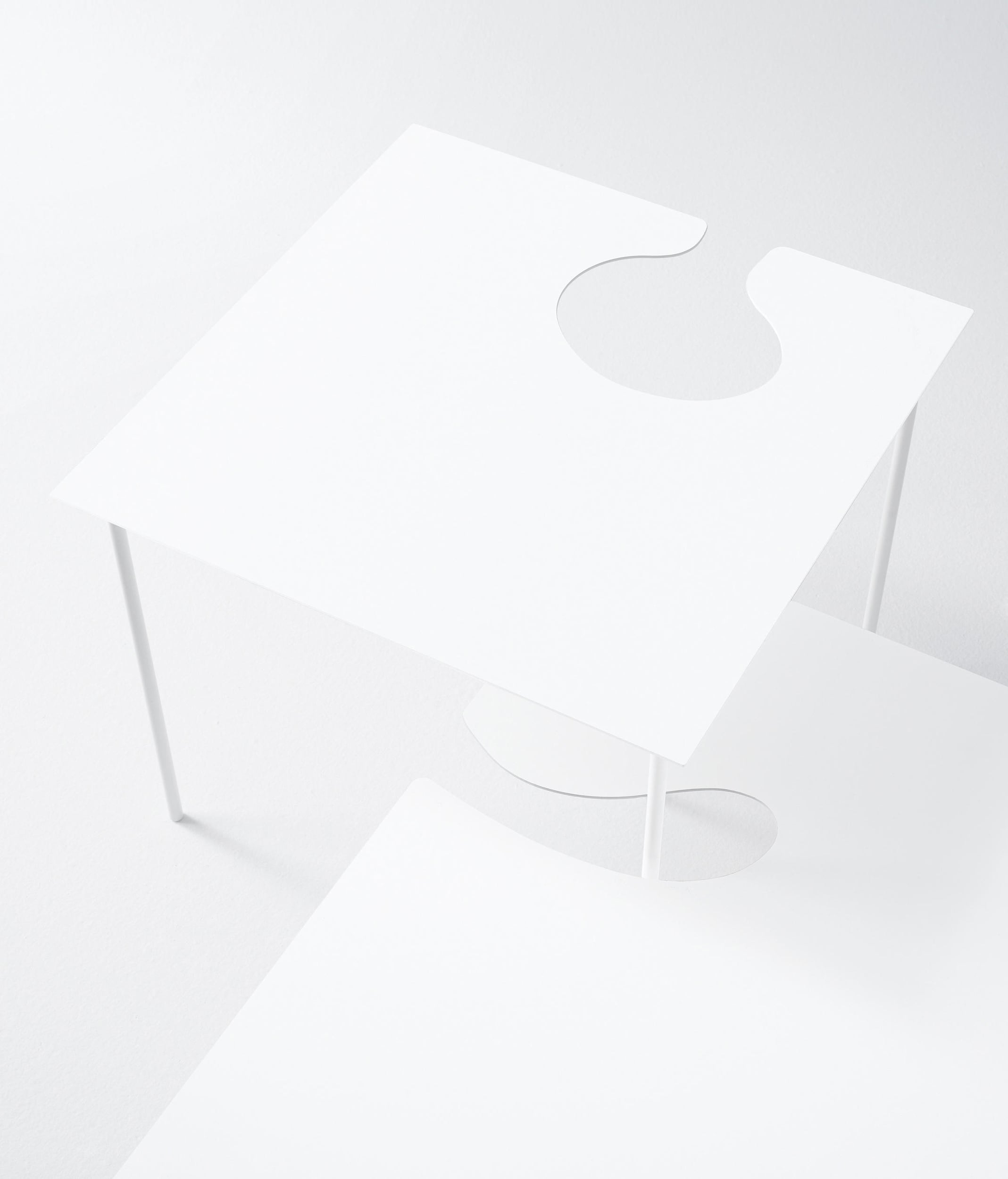 Softer than steel is a poetic and delicate collection. Constructed from rigid sheet metal, the metal surface is bent and folded to create the chairs backrest. The ordinarily hard metal gains new functionality, the result appears light and flexible as if the metal were paper or fabric.