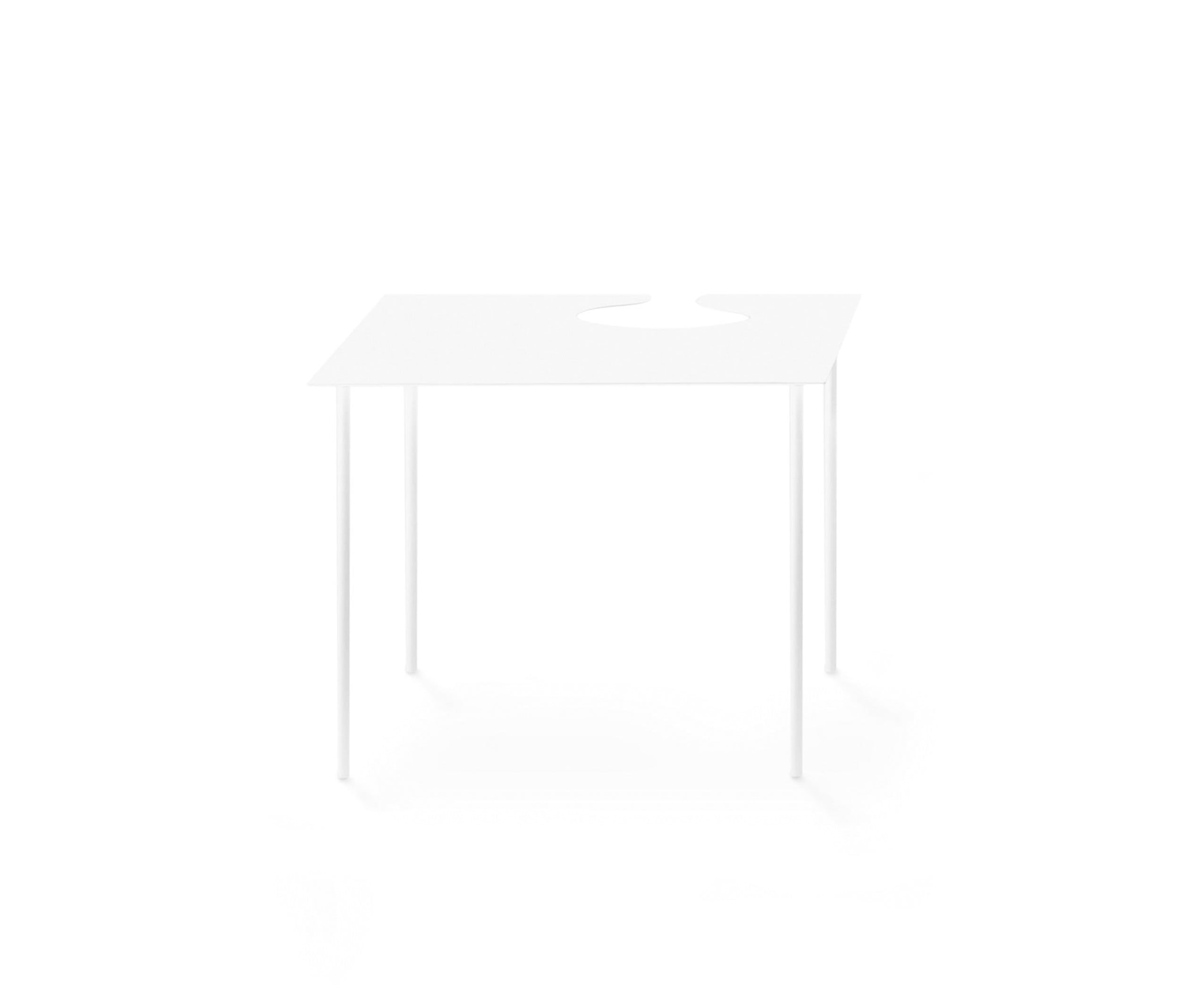 Table Top: Constructed from folded metal sheet, powdercoated to house colour