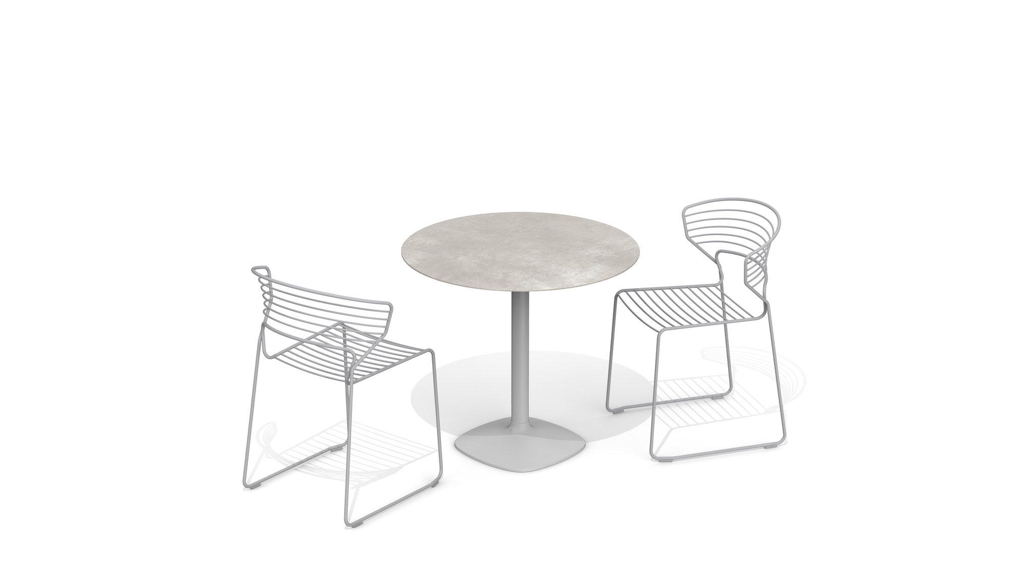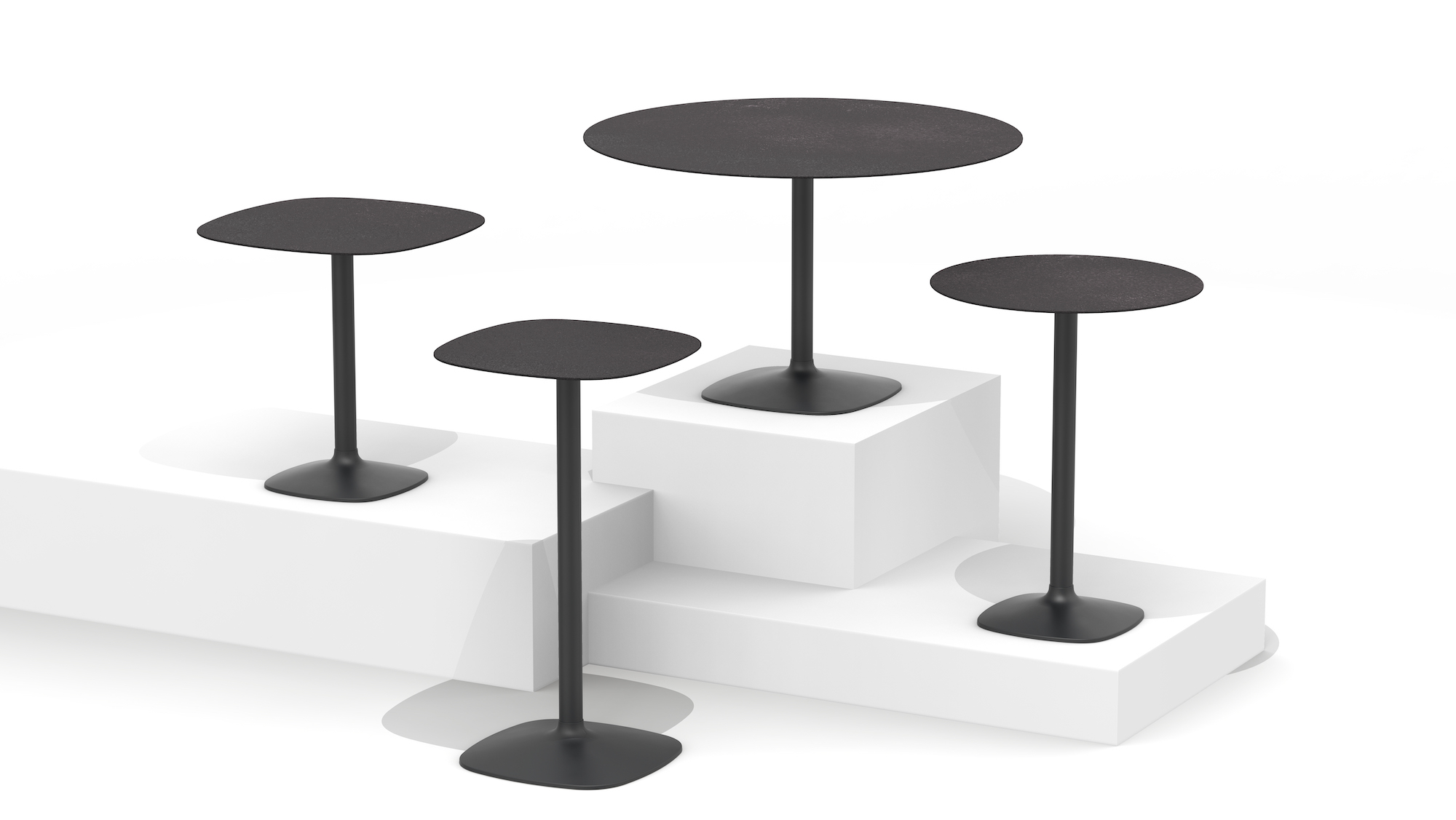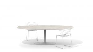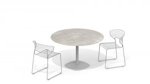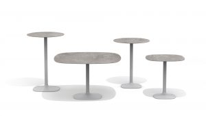 A collection of tables taking on a minimalist approach. Created to live both indoors and outdoors, and in a wide variety of home and contract settings. The overhang of the table tops emphasises the distance between the surface and the small base, giving elegance to both small and large scale tables