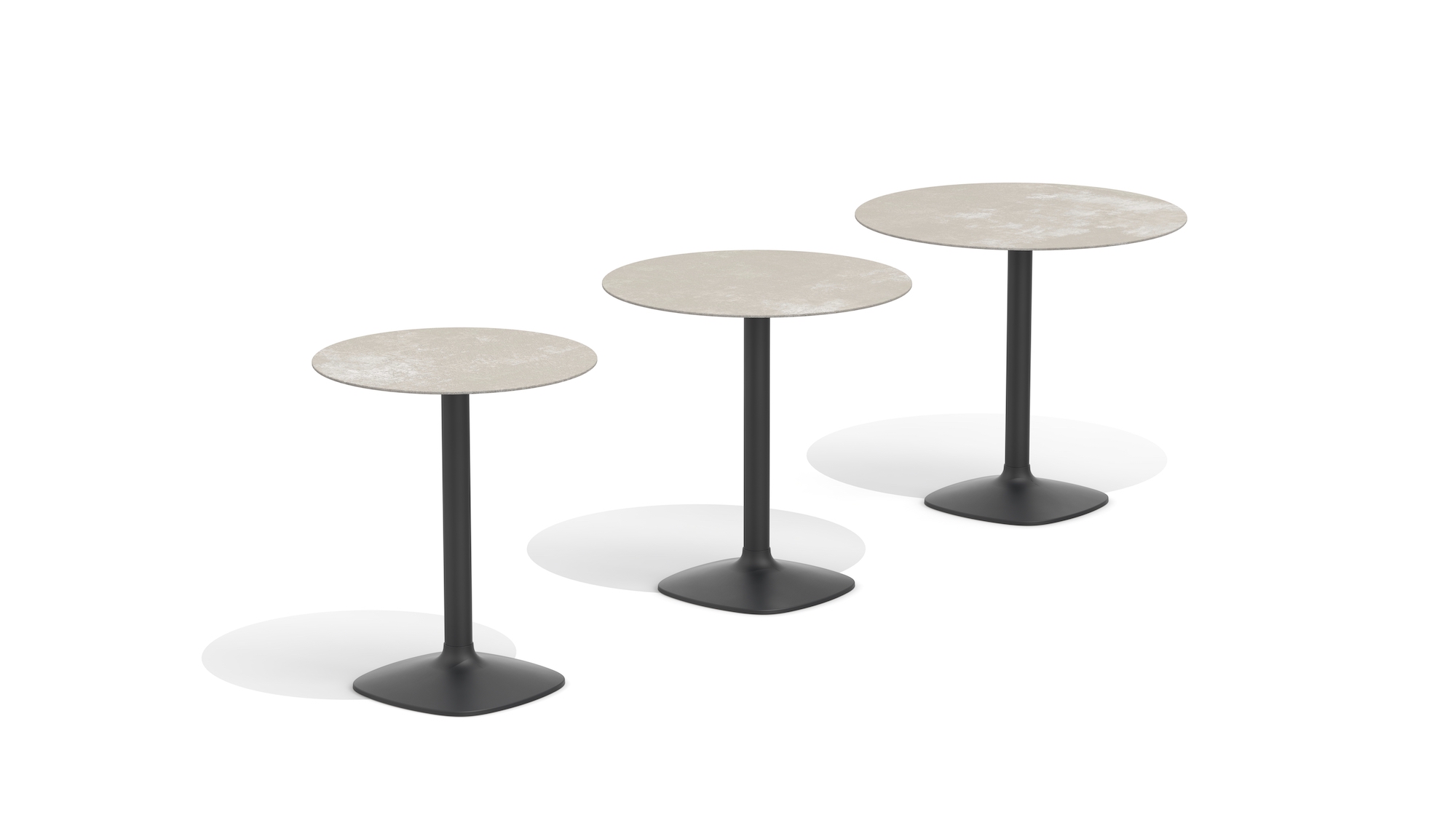 Available in a range of heights, sizes and shapes, with tops in hardy ceramic and bases in cast iron with a steel tube column.