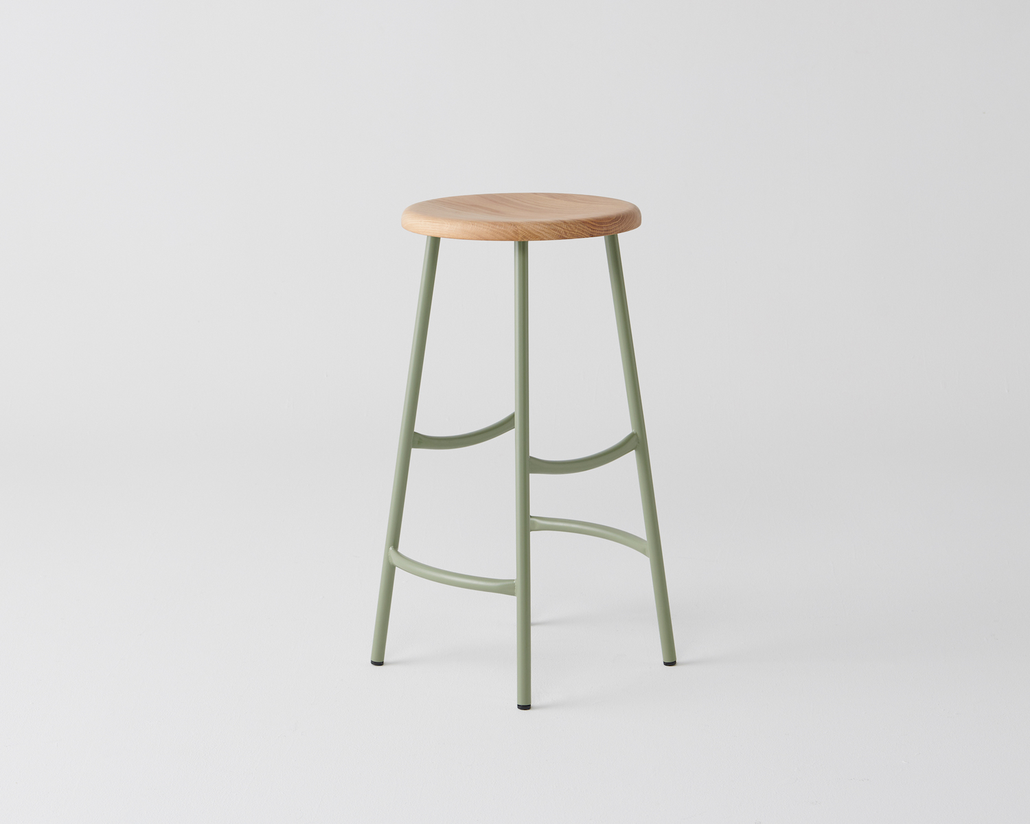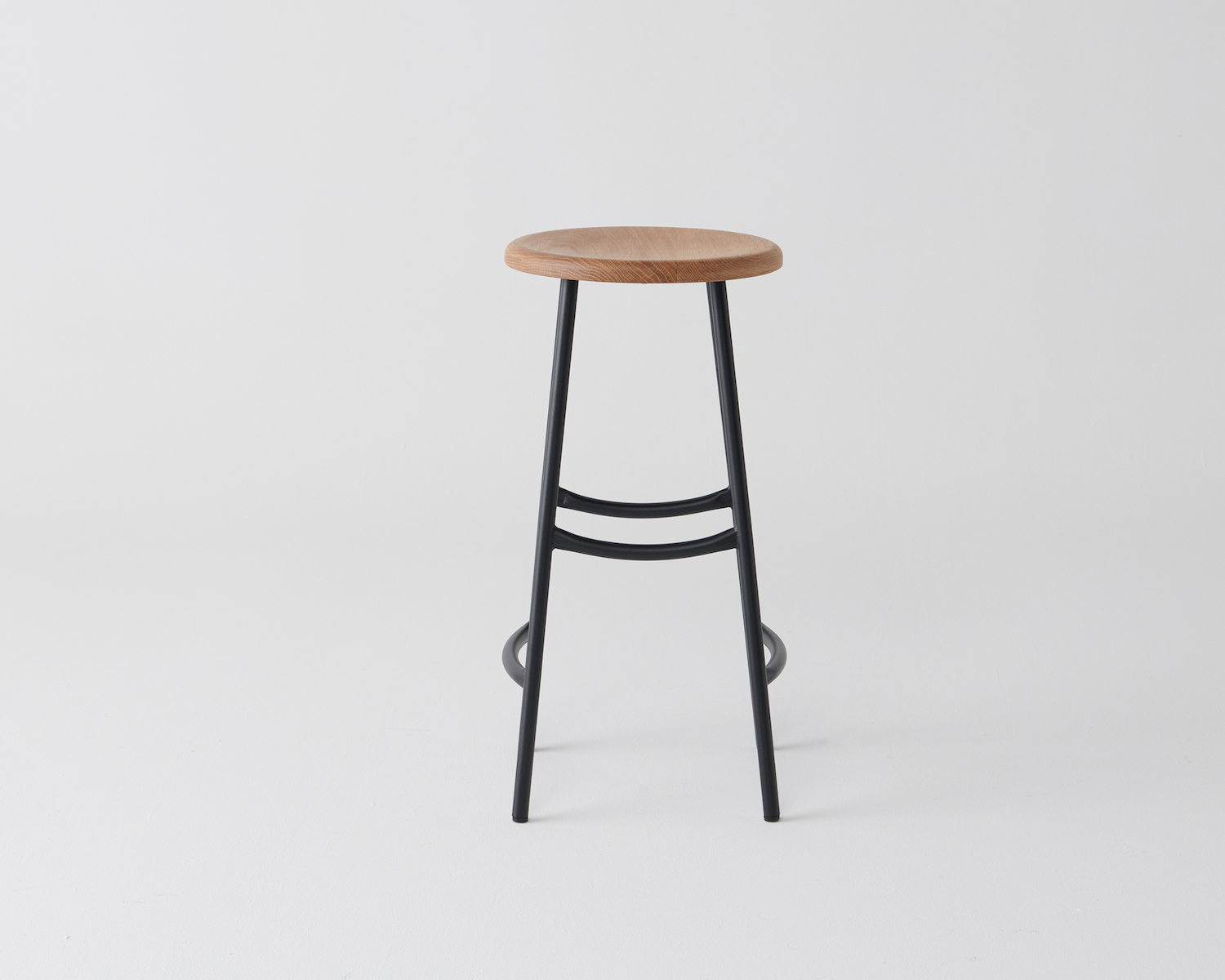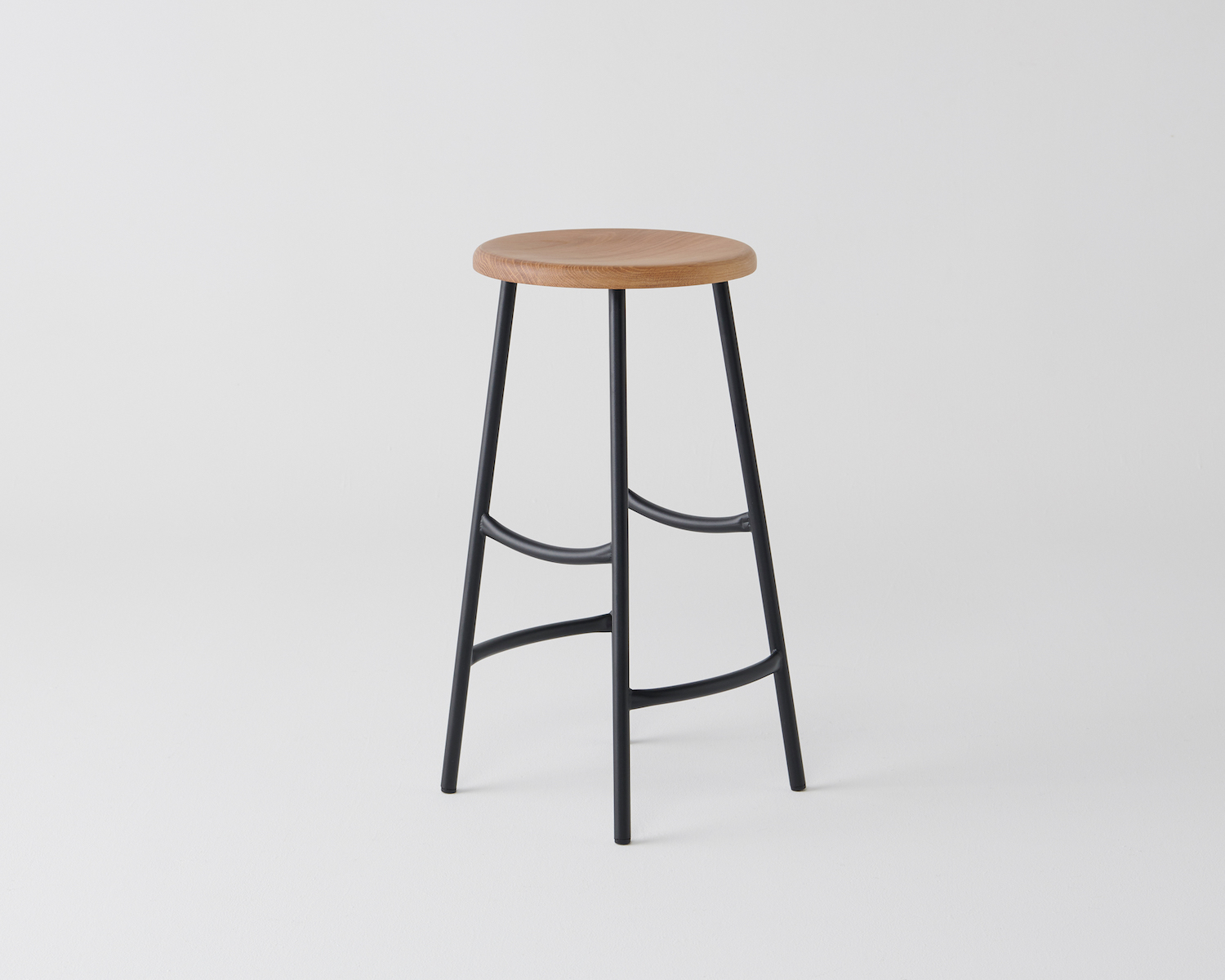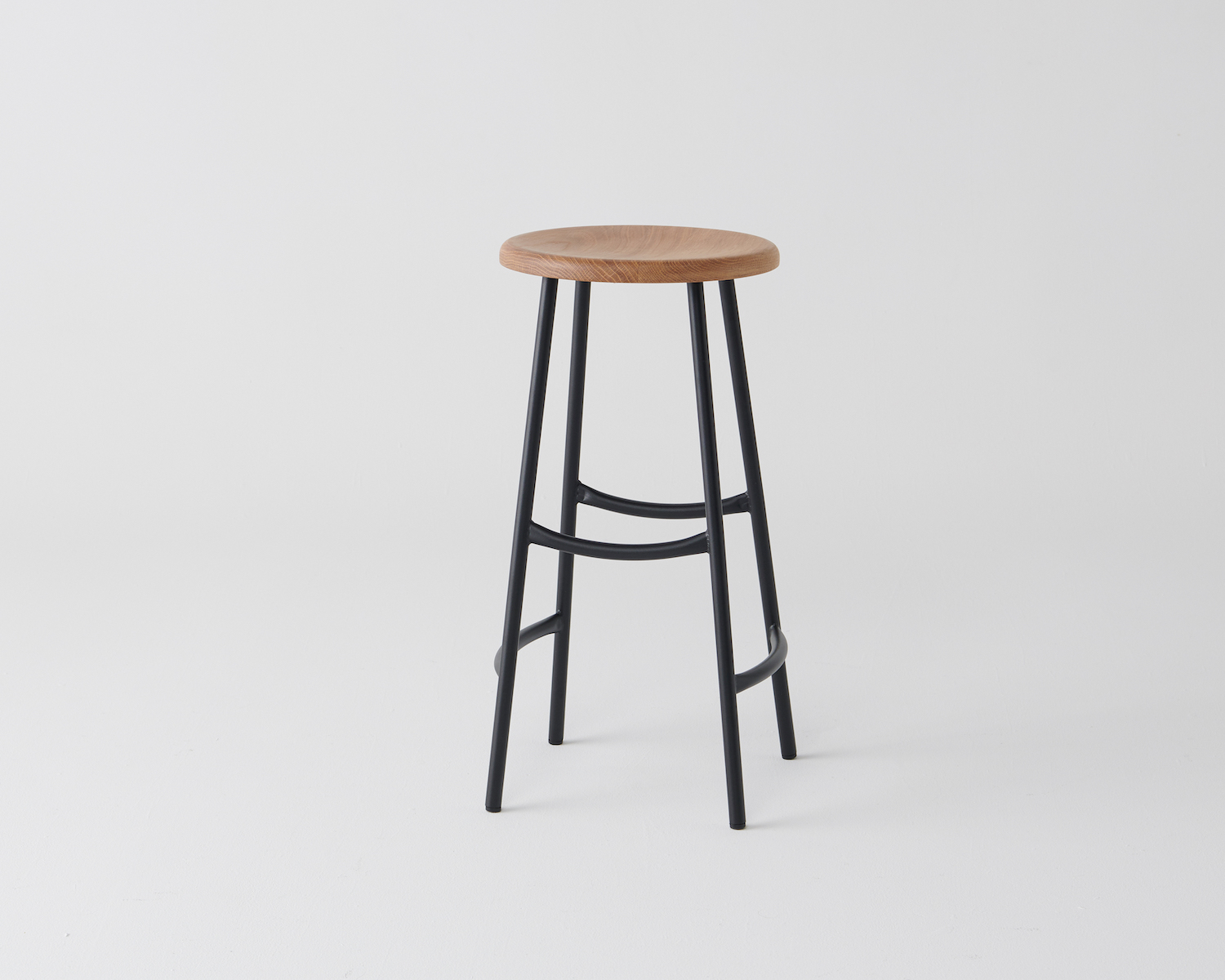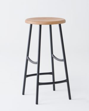 The Archie High Stool features a steel frame made up of slightly curved sections, with a softly carved solid timber seat for comfort. Blending strong lines with a thin tubular frame creates a minimal stool with added comfort. Archies strength and functionality will ensure years of everyday use in both high-traffic seating areas and in private environments.