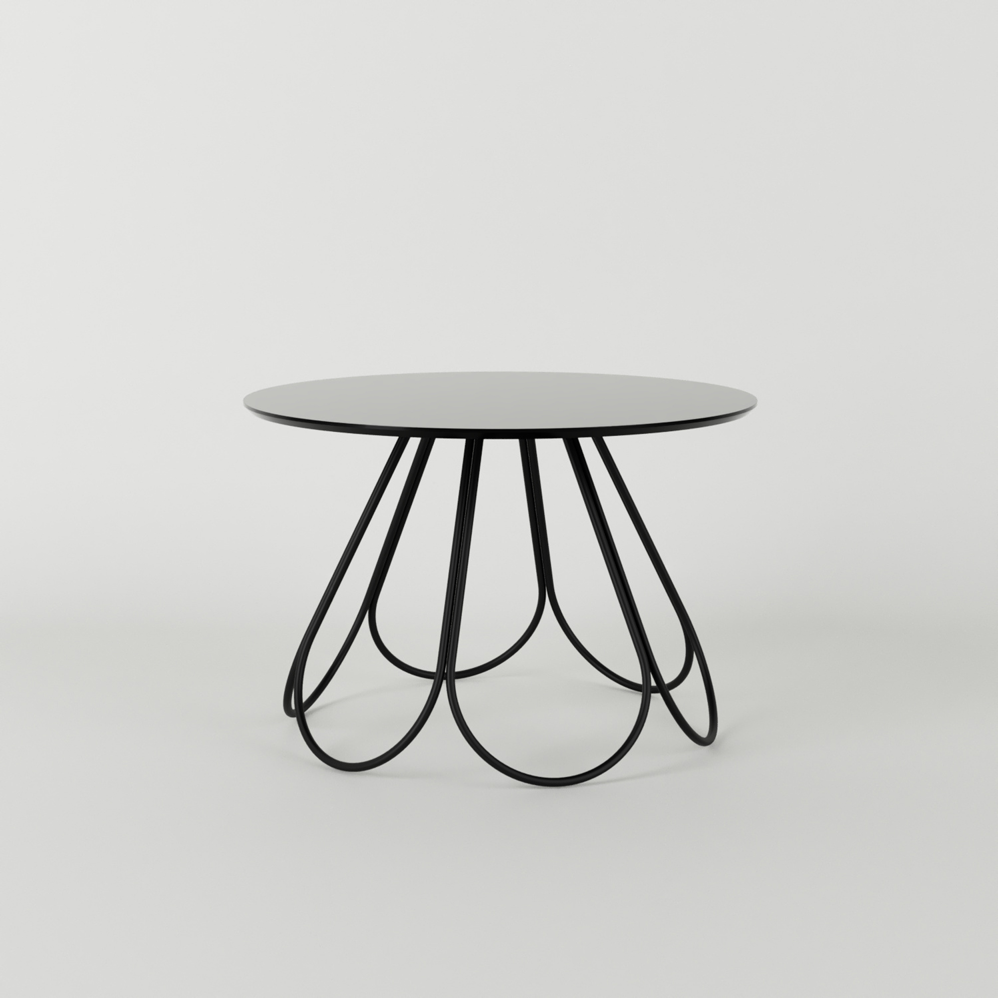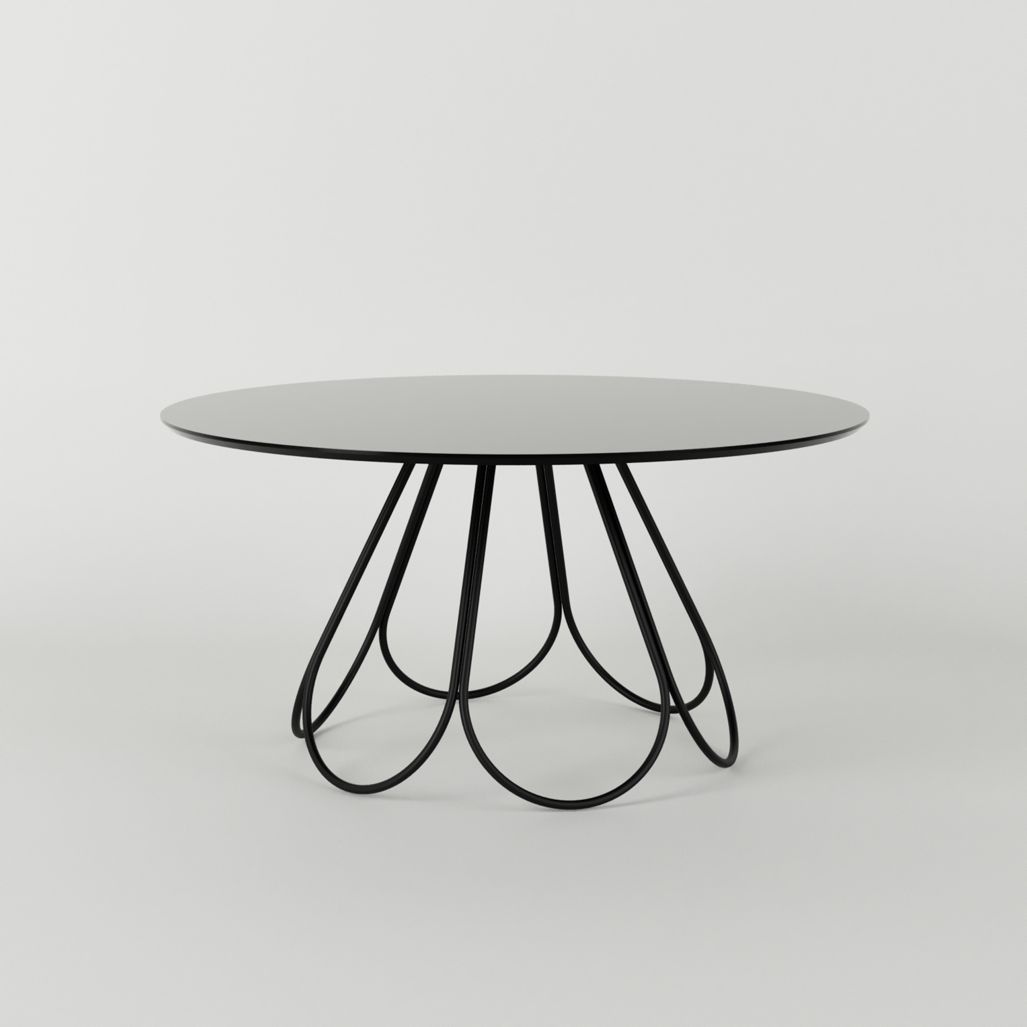 The Blossom Coffee Table features a solid wire base in a powder coated finish and compact laminate table top. Suitable for indoors or outdoors, the base and top can be customised on request.