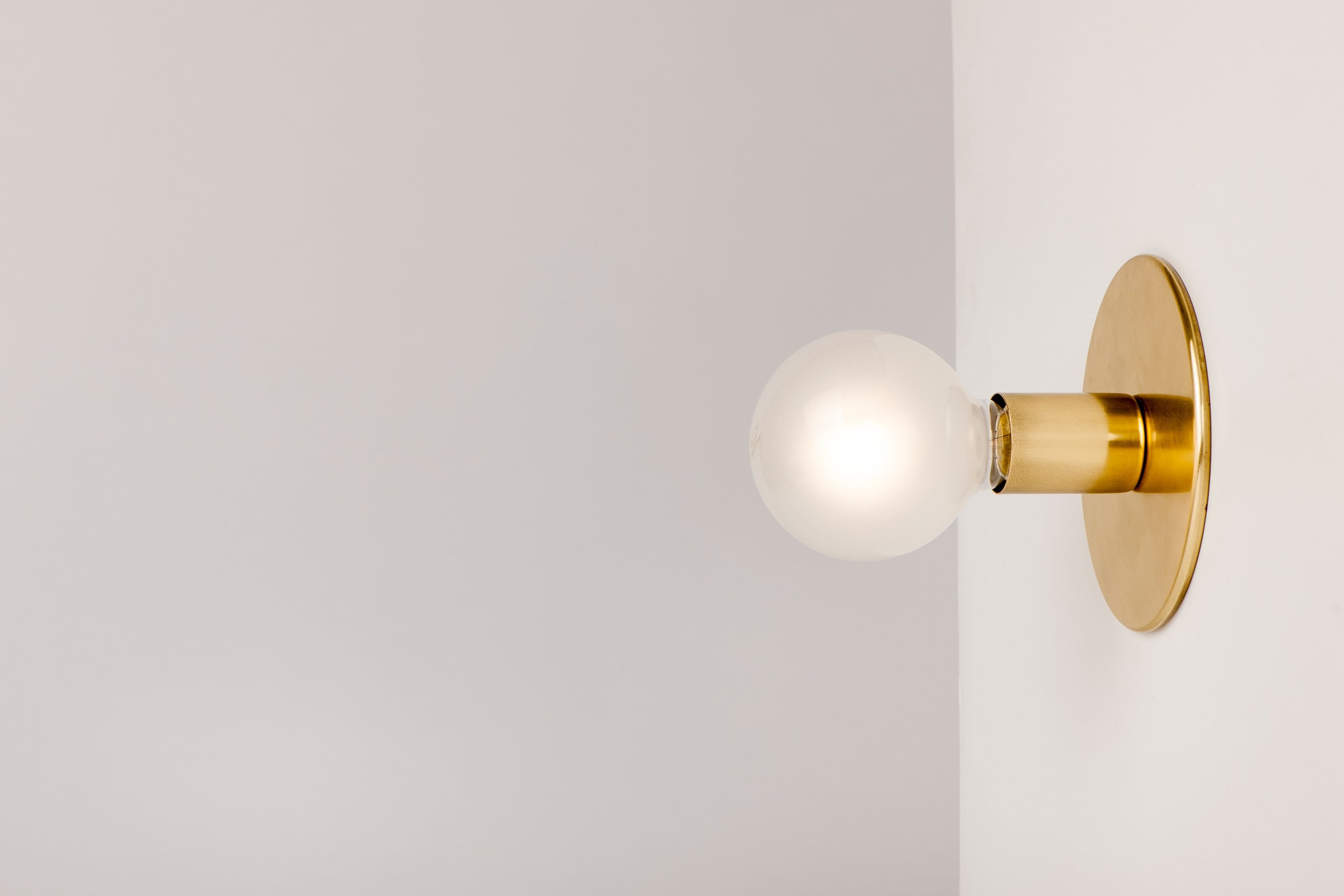 Lord Sconce is a simple understated wall light available in 2 sized backing plates. Stamped from solid brass resulting in a smooth and clean finish, Lord Sconce is also available in a powdercoated version.