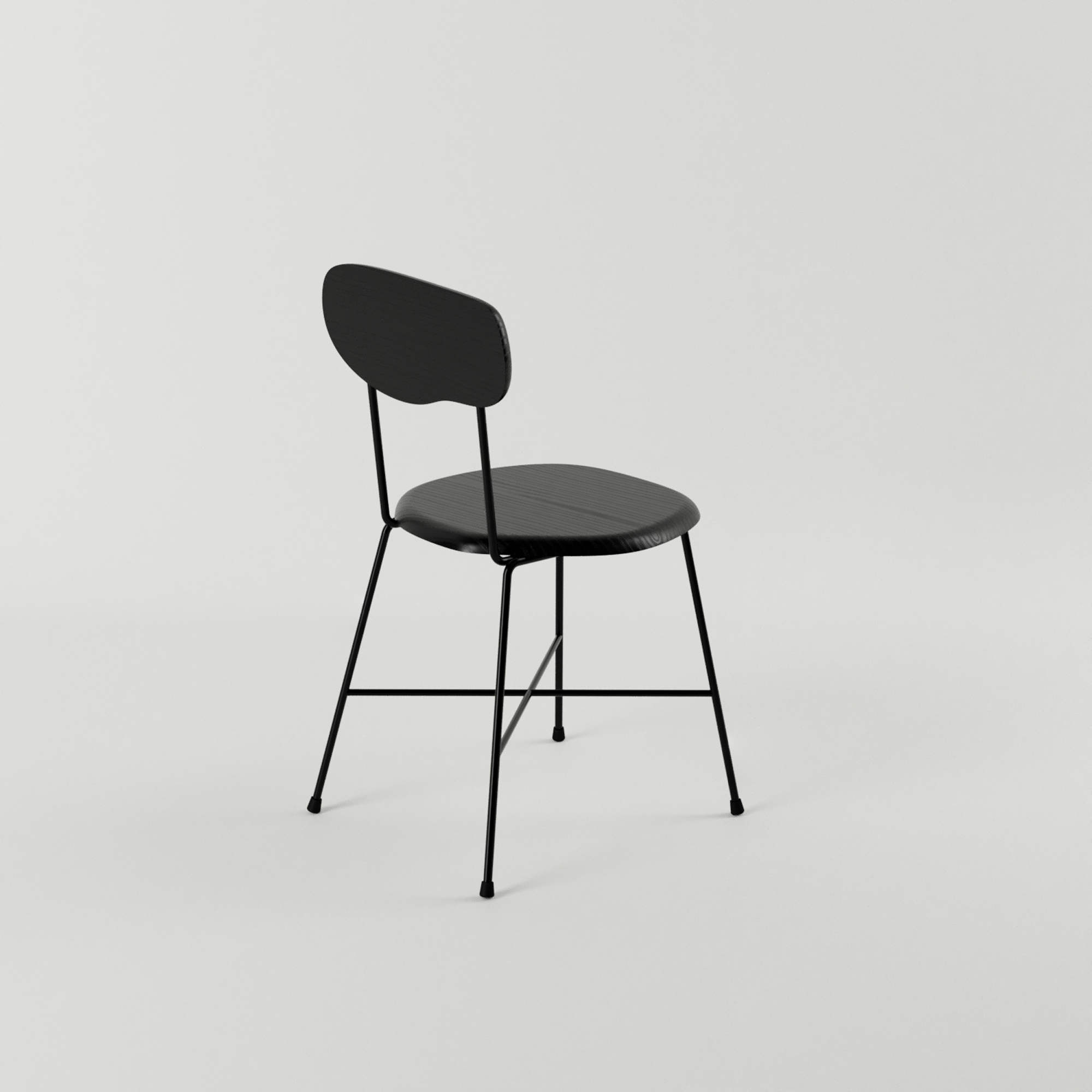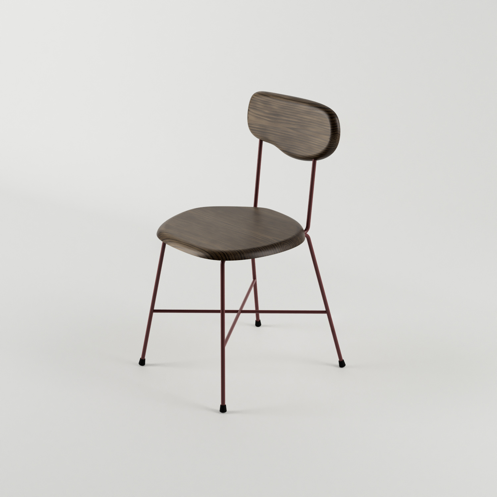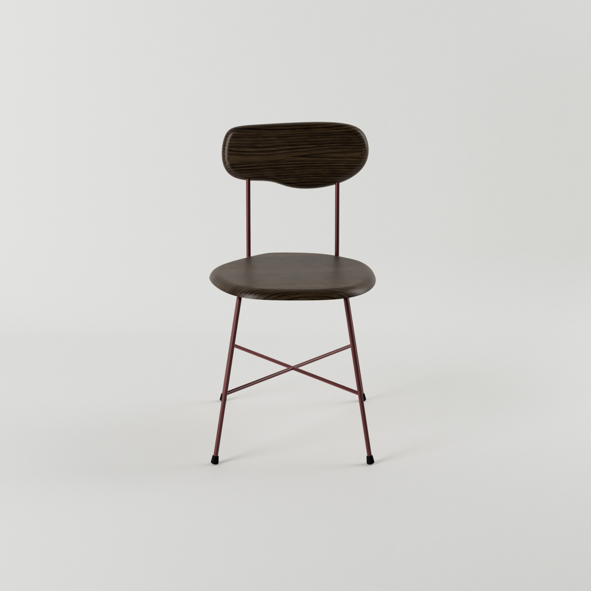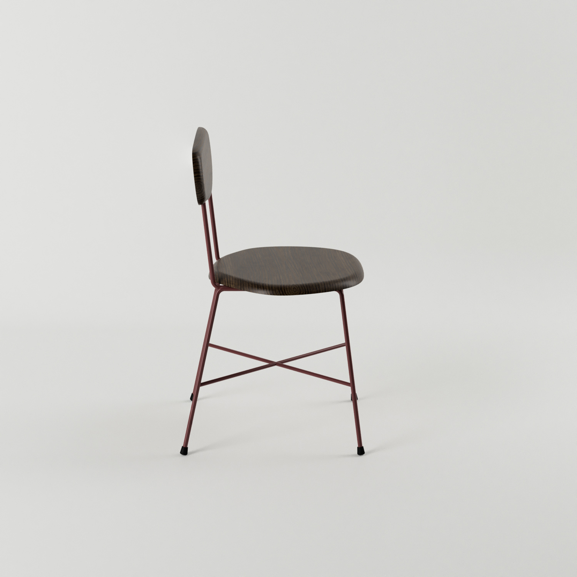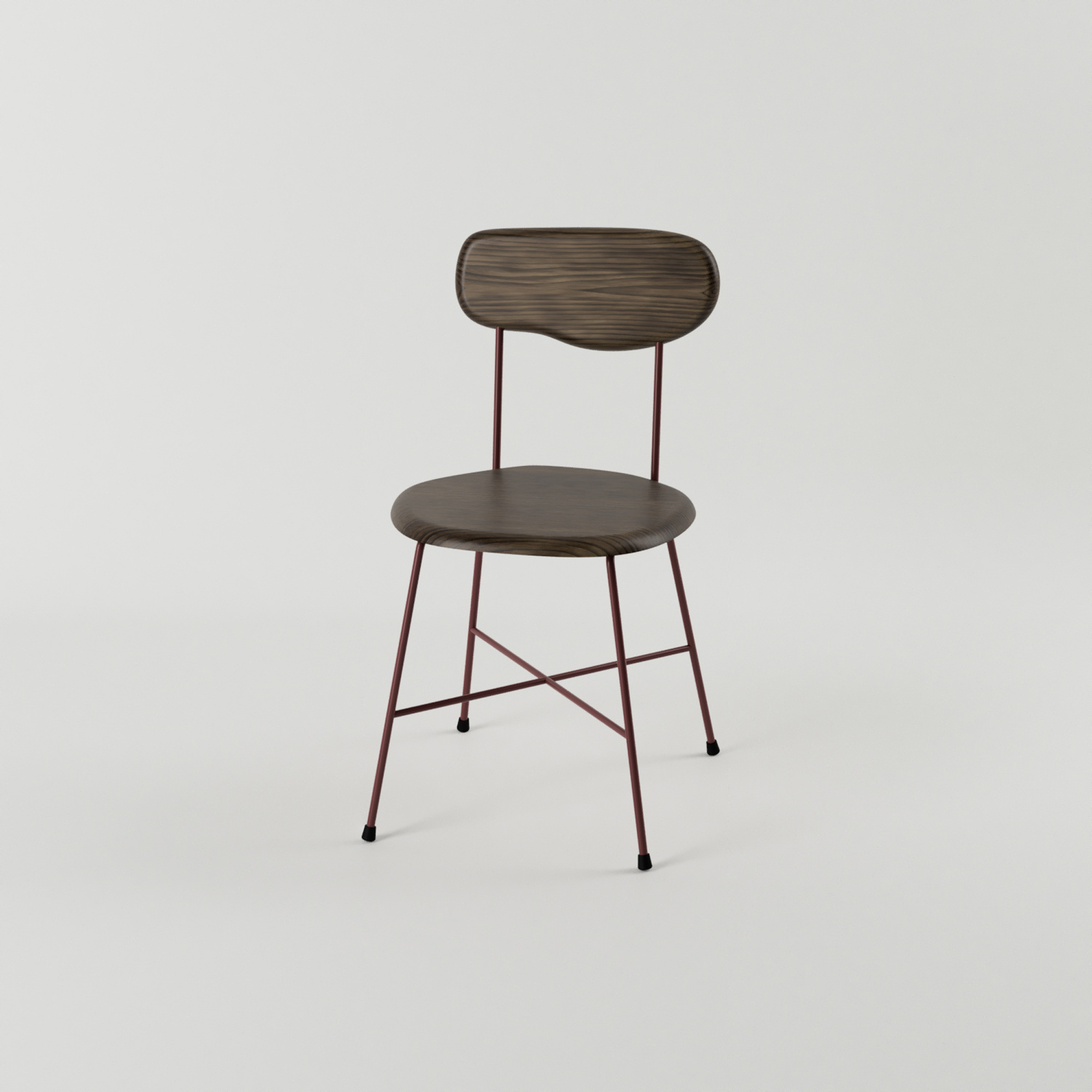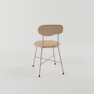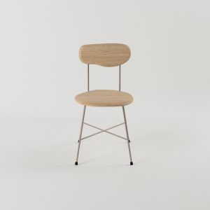 The Pool Chair carries the motif of the Stool, where the linearity of the wire frame is interrupted by the organic wobble of the seat and backrest. The Pool chair features a powder-coated frame and timber seat and backrest. The Pool Collection is available in 27 frame colours, and various timber options.