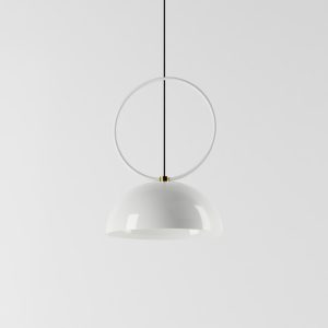 The Fig Jones Pendant is the perfect balance of elegance and modernity. Using the graphic qualities of the King Dome Pendant and the spherical shape of the Arcade Pendant, the Fig Jones Pendant is given a new soft personality through its use of a solid brass centre fixture that will tarnish and age over time.