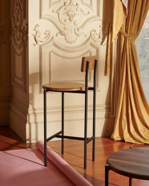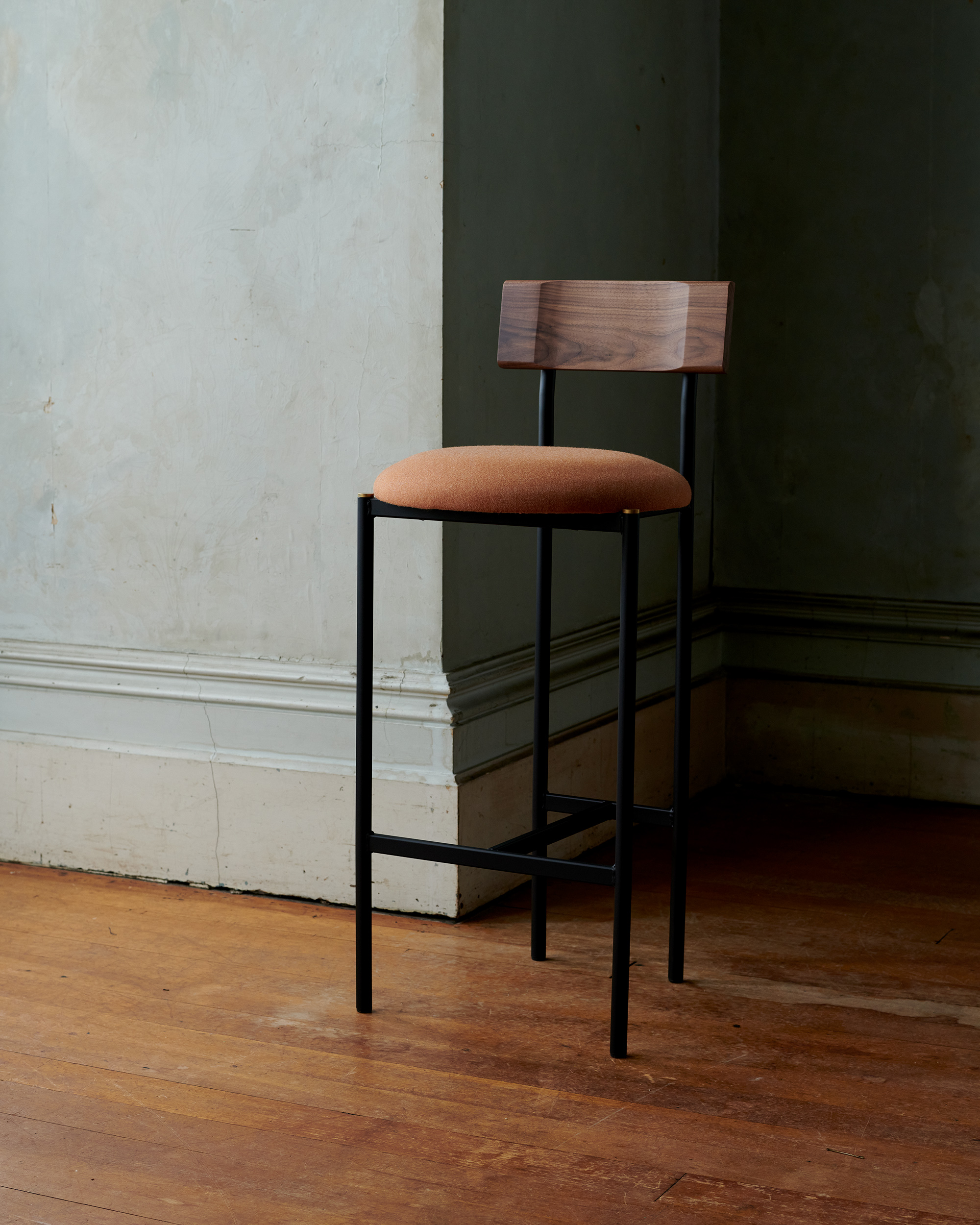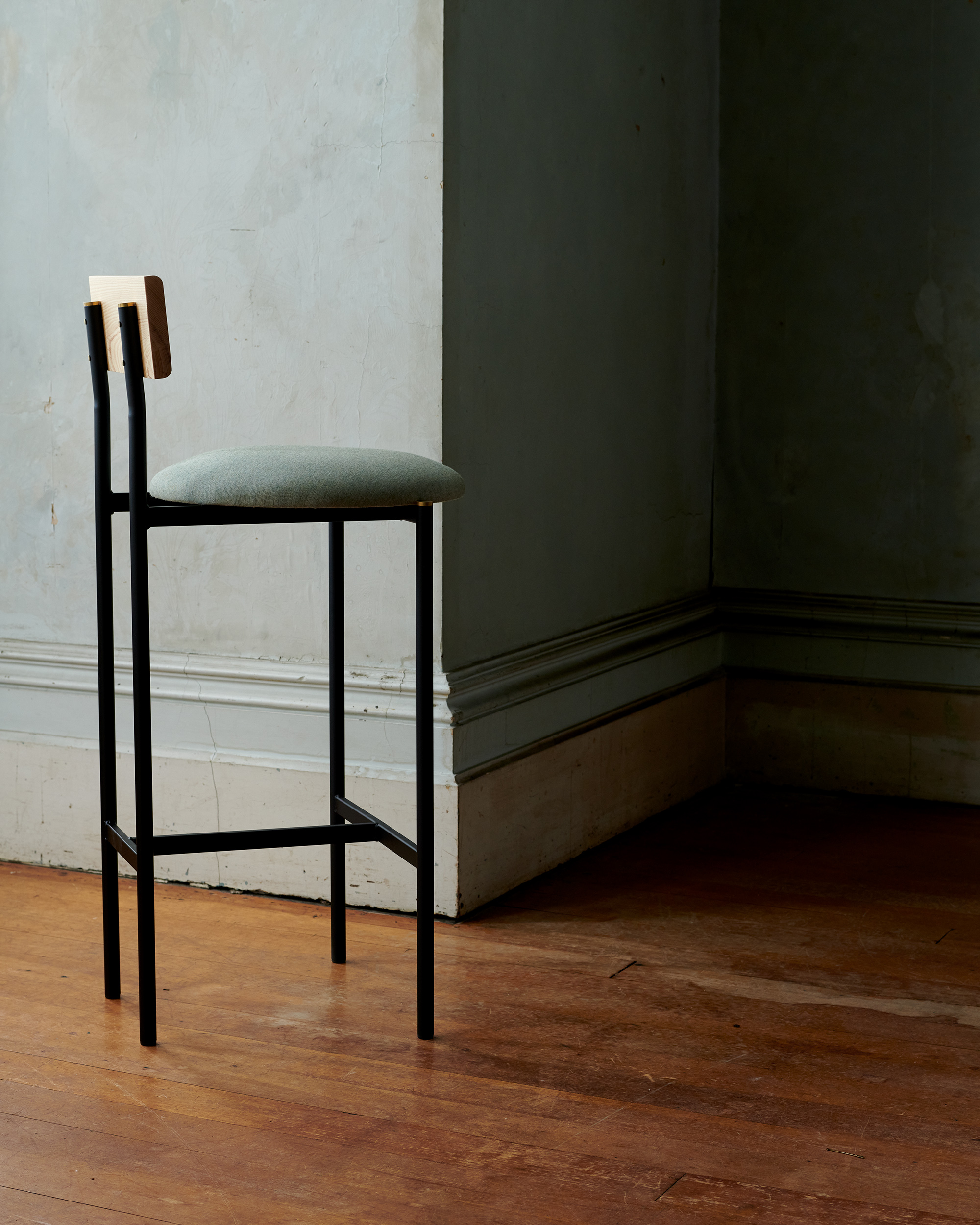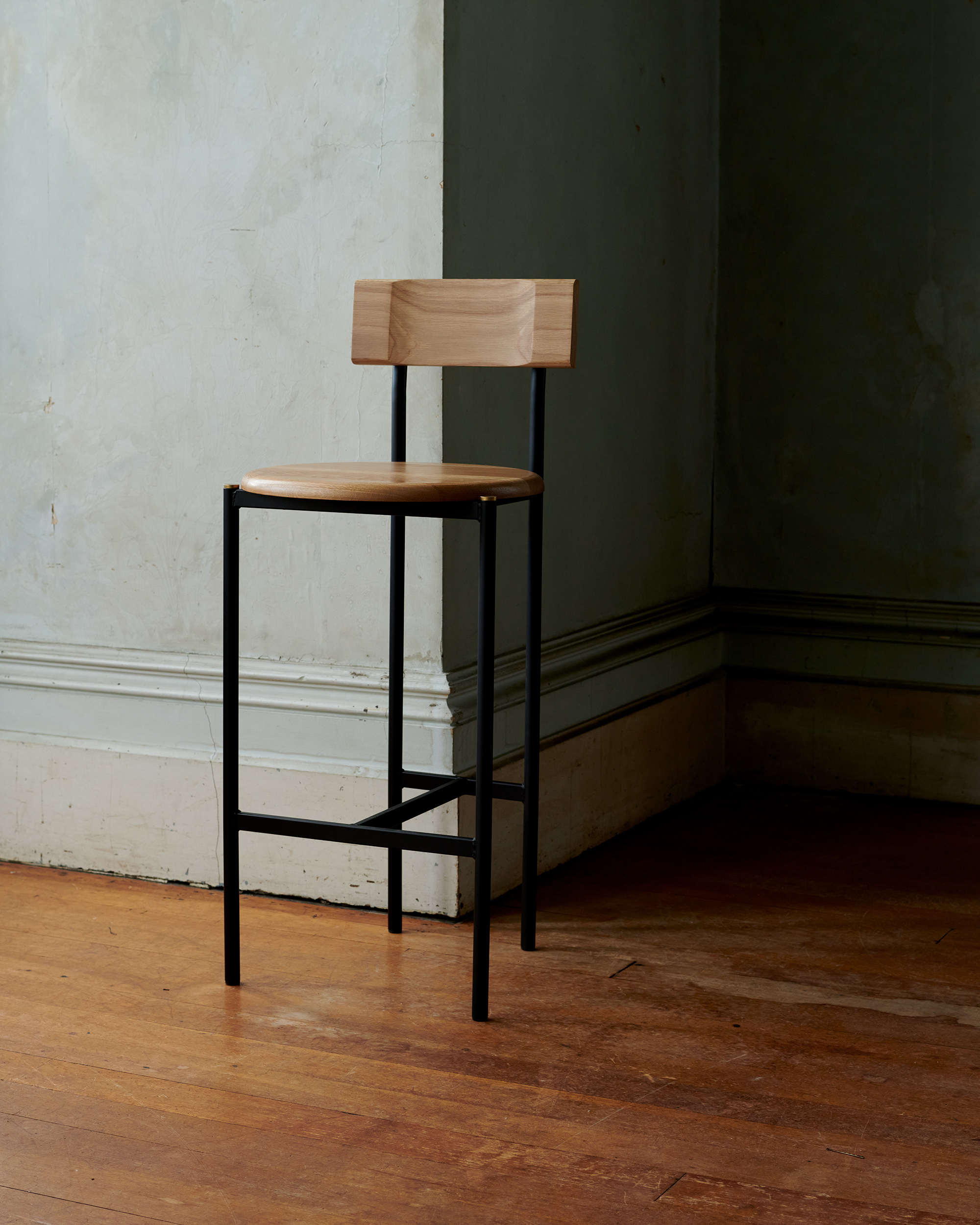 The Volta Collection is a new approach to seating from Dowel Jones. With a carved solid timber backrest that embraces the body and circular seat with the option of upholstery — the Volta High Chair explores the possibility of a mixed-material chair.