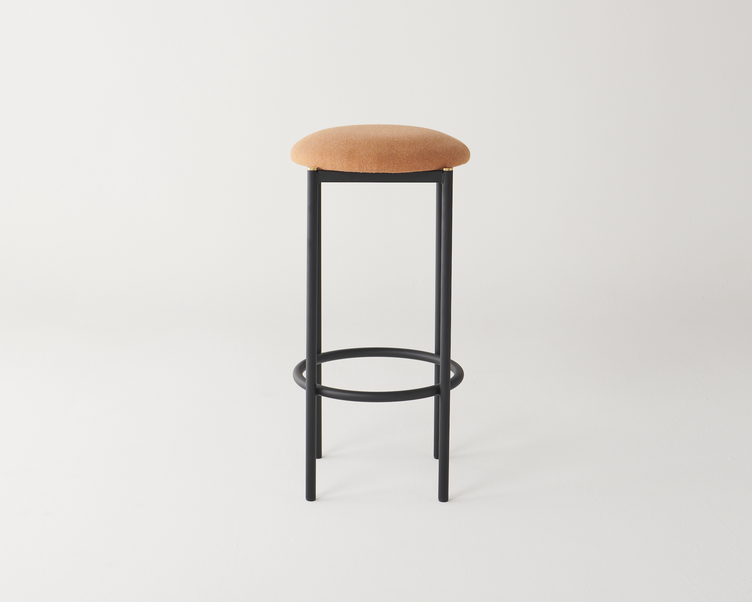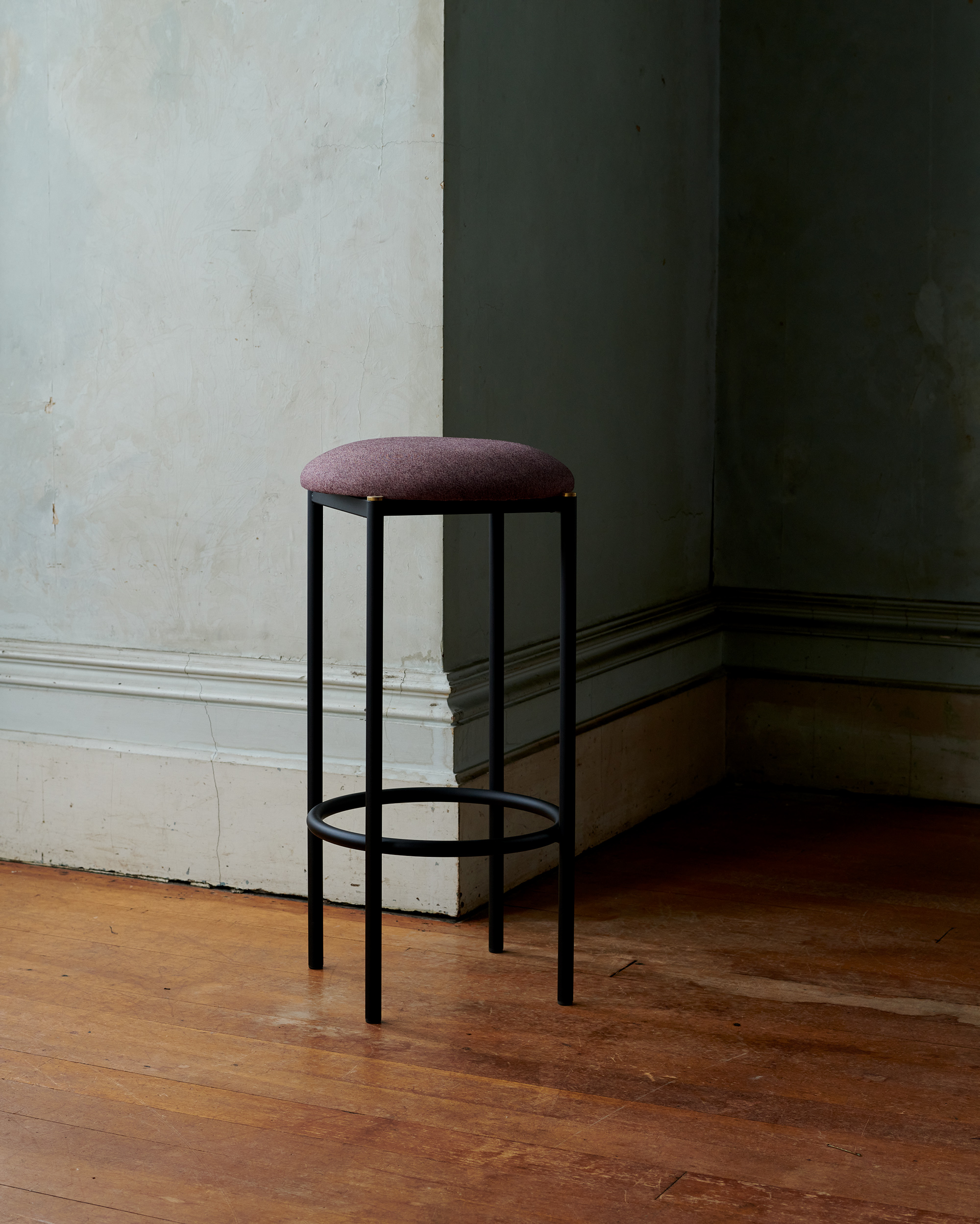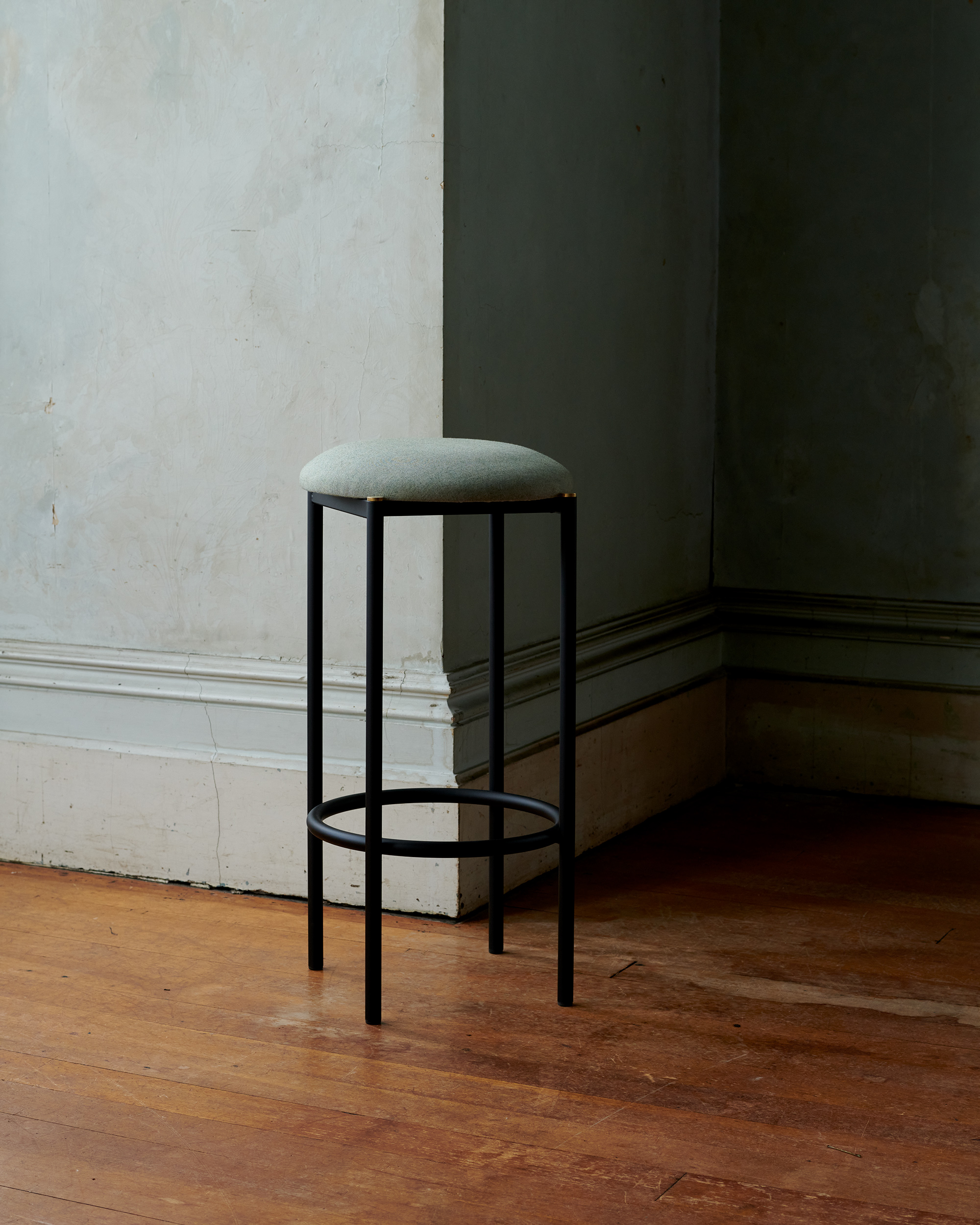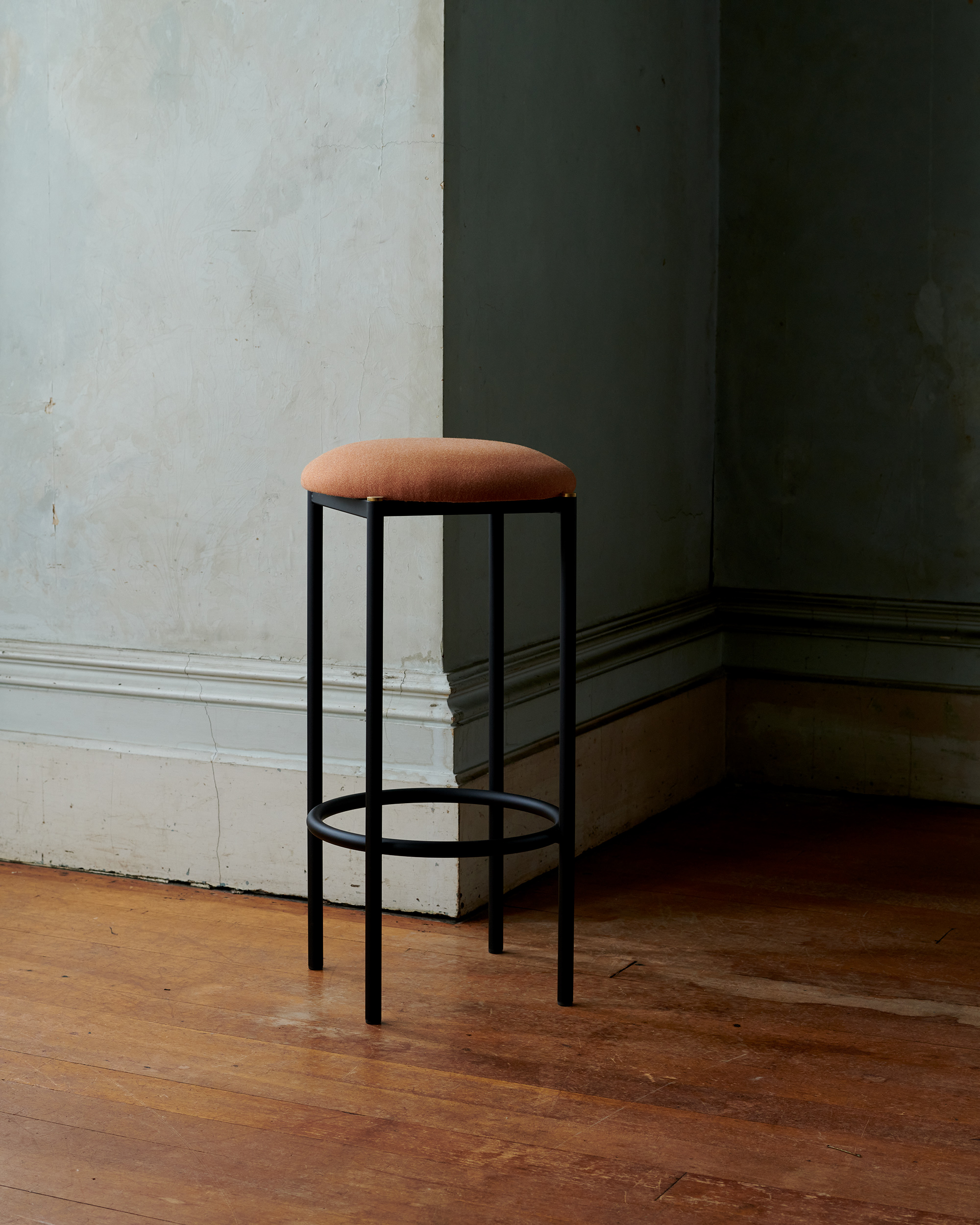 The Volta Collection is a new approach to seating from Dowel Jones. With a carved solid timber backrest that embraces the body and circular seat with the option of upholstery — the Volta High Stool explores the possibility of a mixed-material chair.