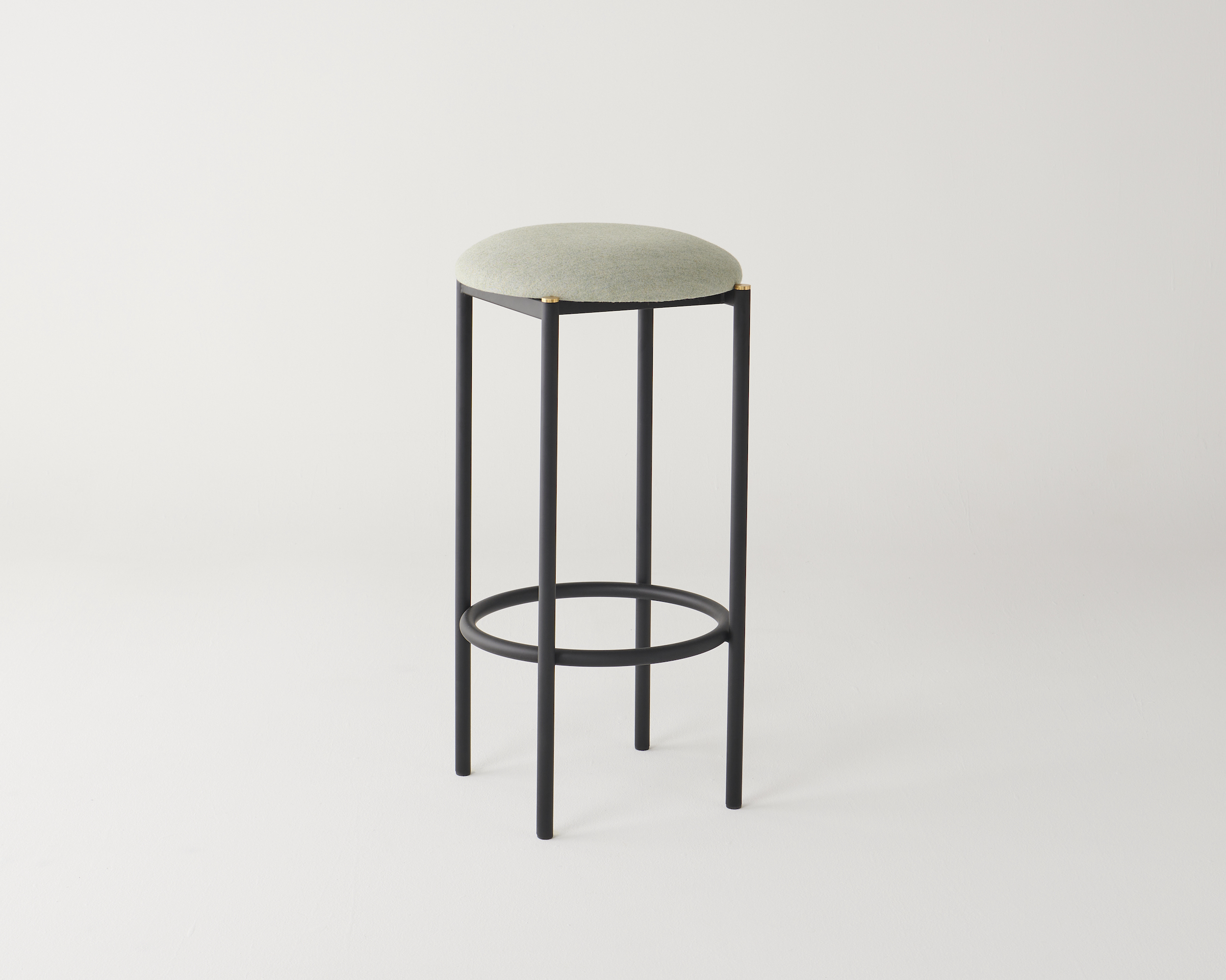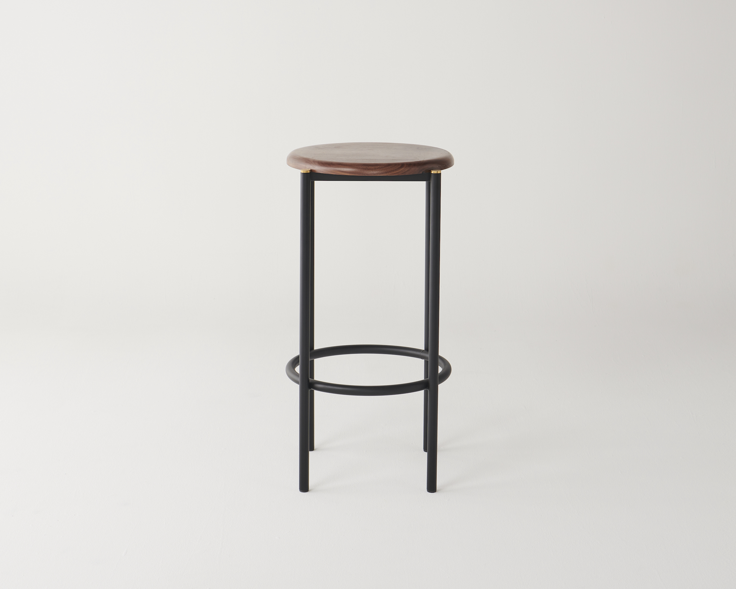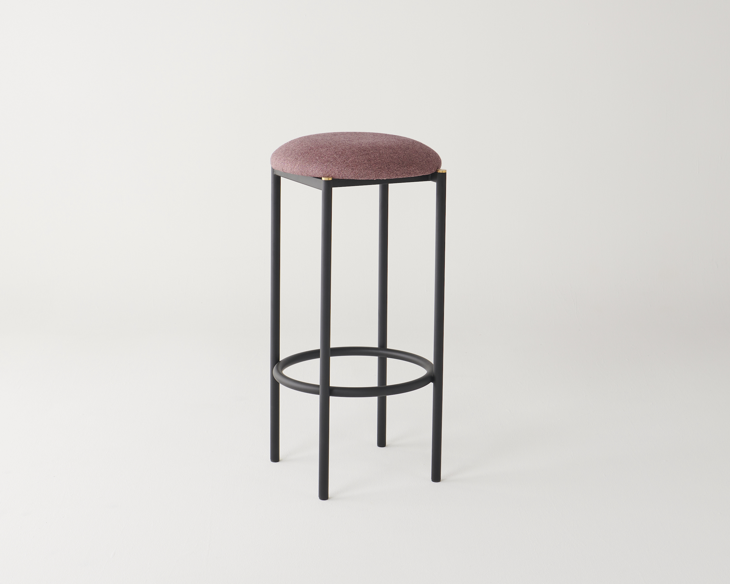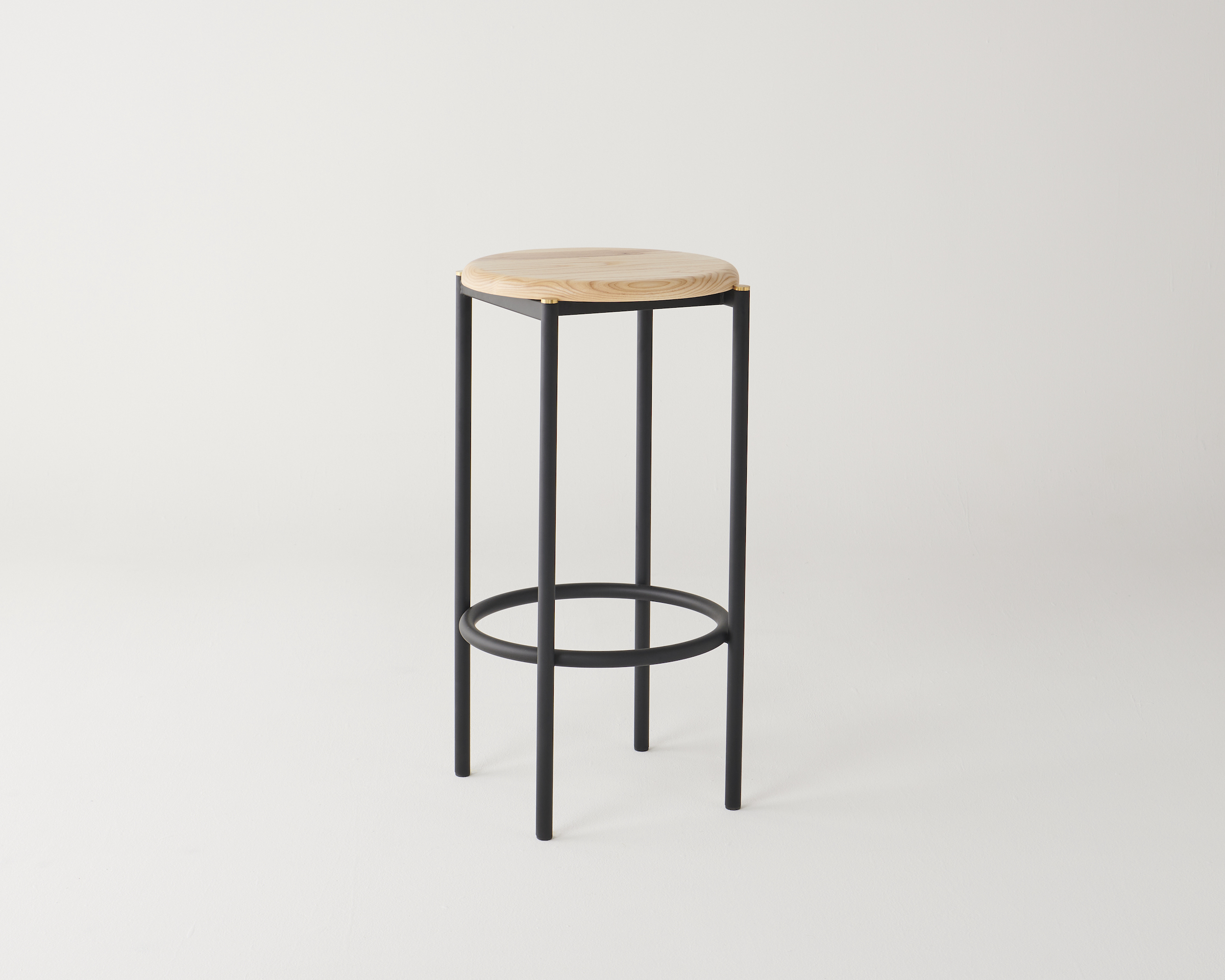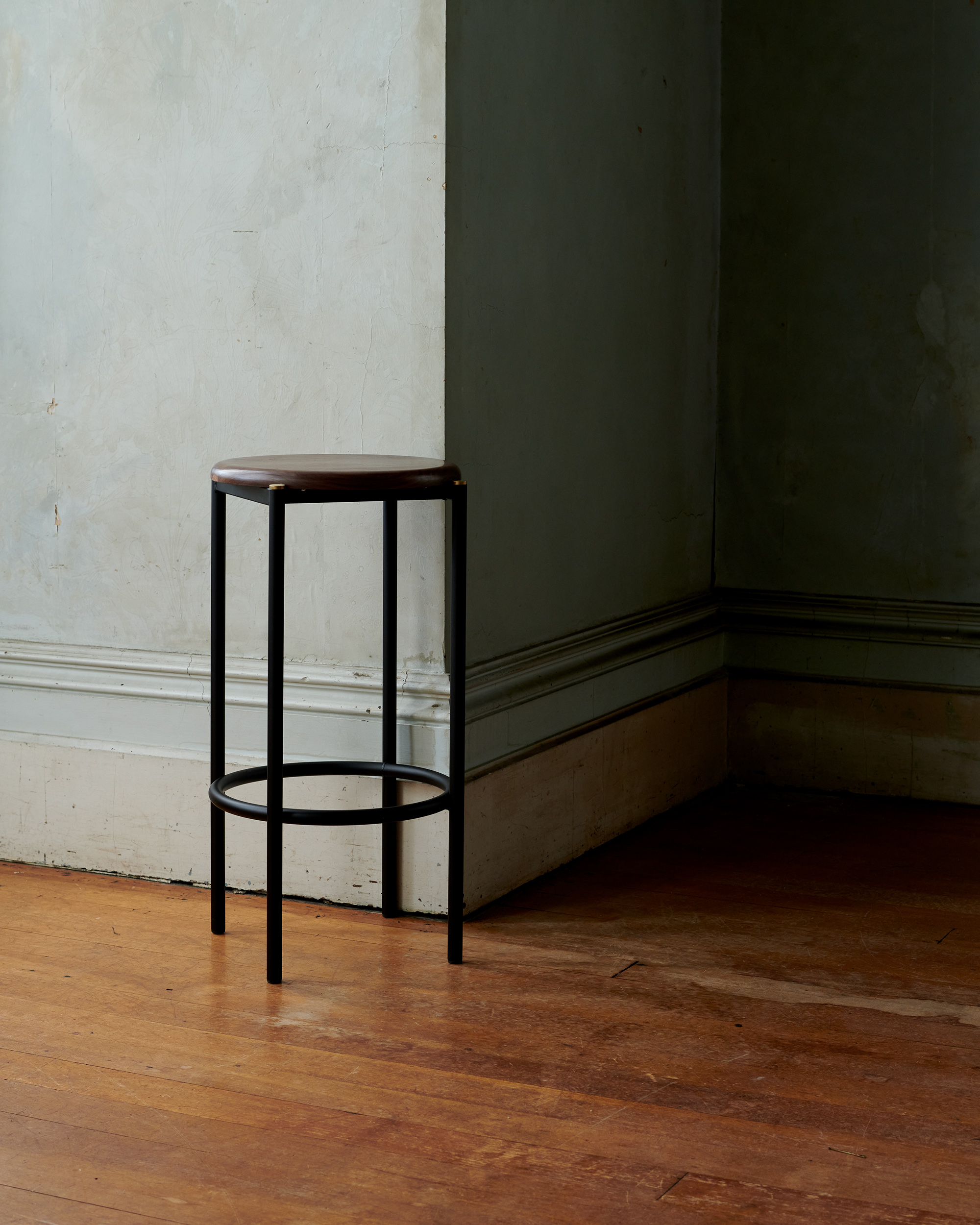 The Volta Collection is a new approach to seating from Dowel Jones. With a carved solid timber backrest that embraces the body and circular seat with the option of upholstery — the Volta High Stool explores the possibility of a mixed-material chair.