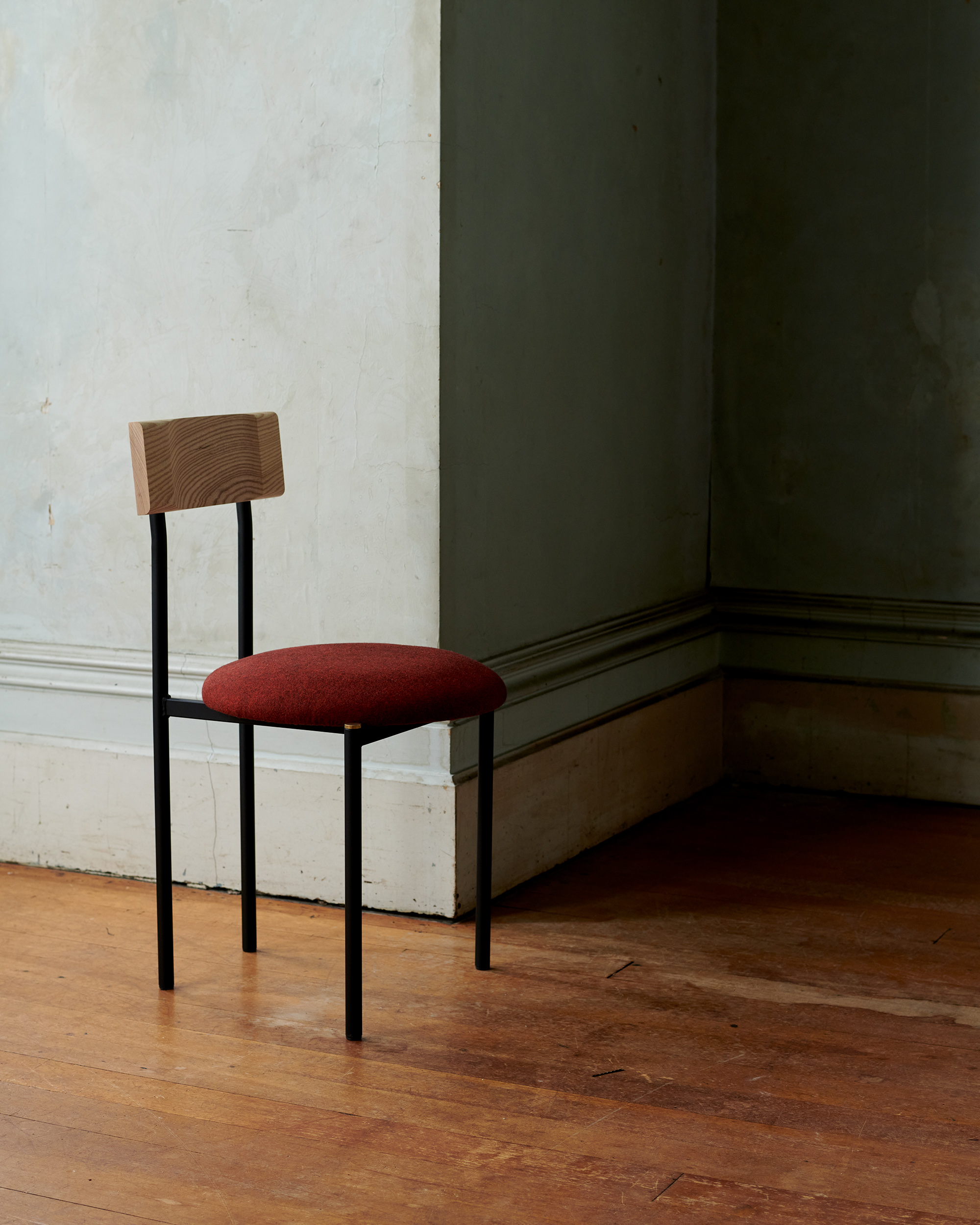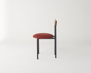 The Volta Collection is a new approach to seating from Dowel Jones. With a carved solid timber backrest that embraces the body and circular seat with the option of upholstery — the Volta Chair explores the possibility of a mixed-material chair.