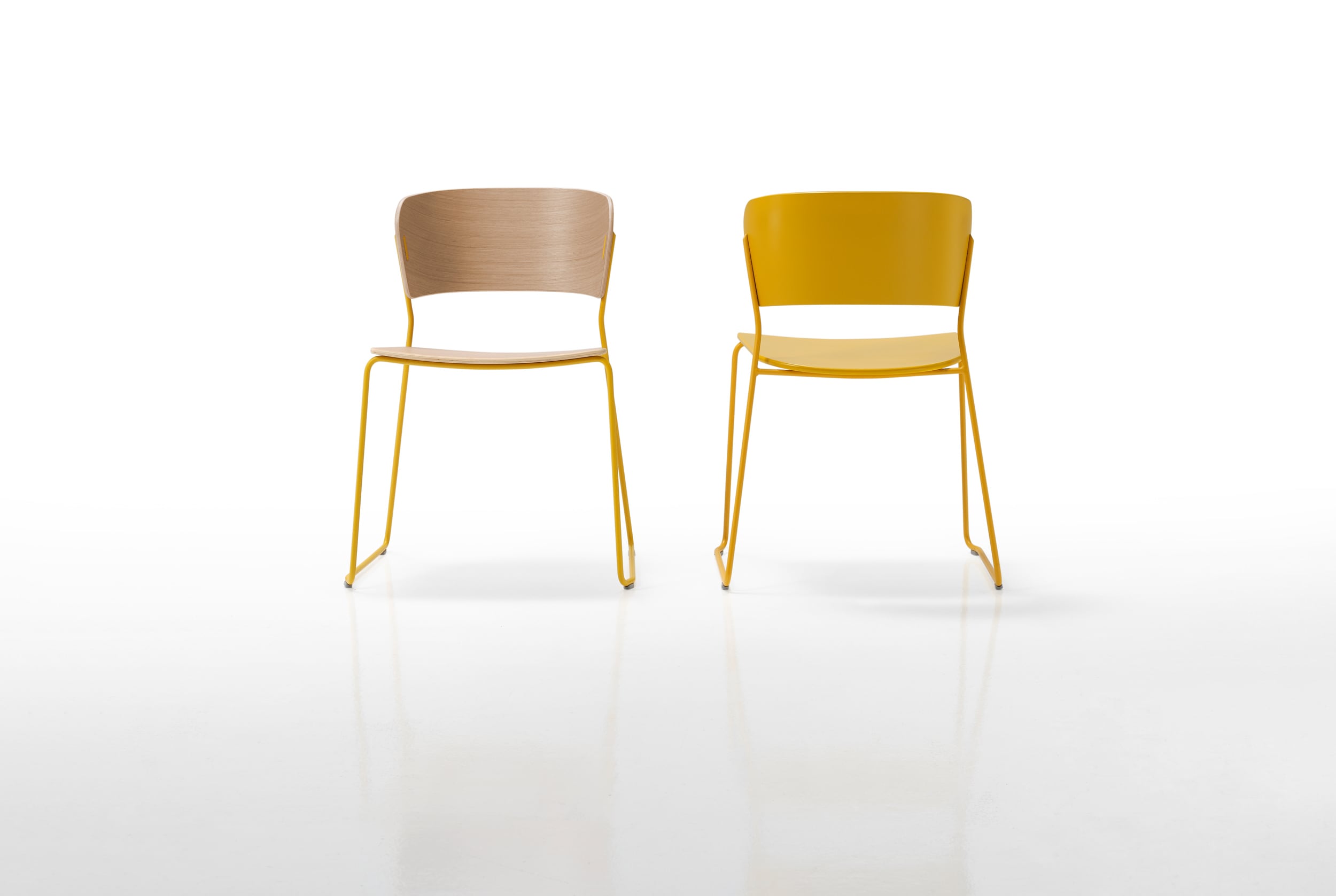Featuring sinuous lines and an elegant, timeless design, Arc is a multipurpose chair, available in a 4 leg or sled base option. The chairs are characterised by an unusual curved backrest, creating an embracing arc and making them extremely comfortable.