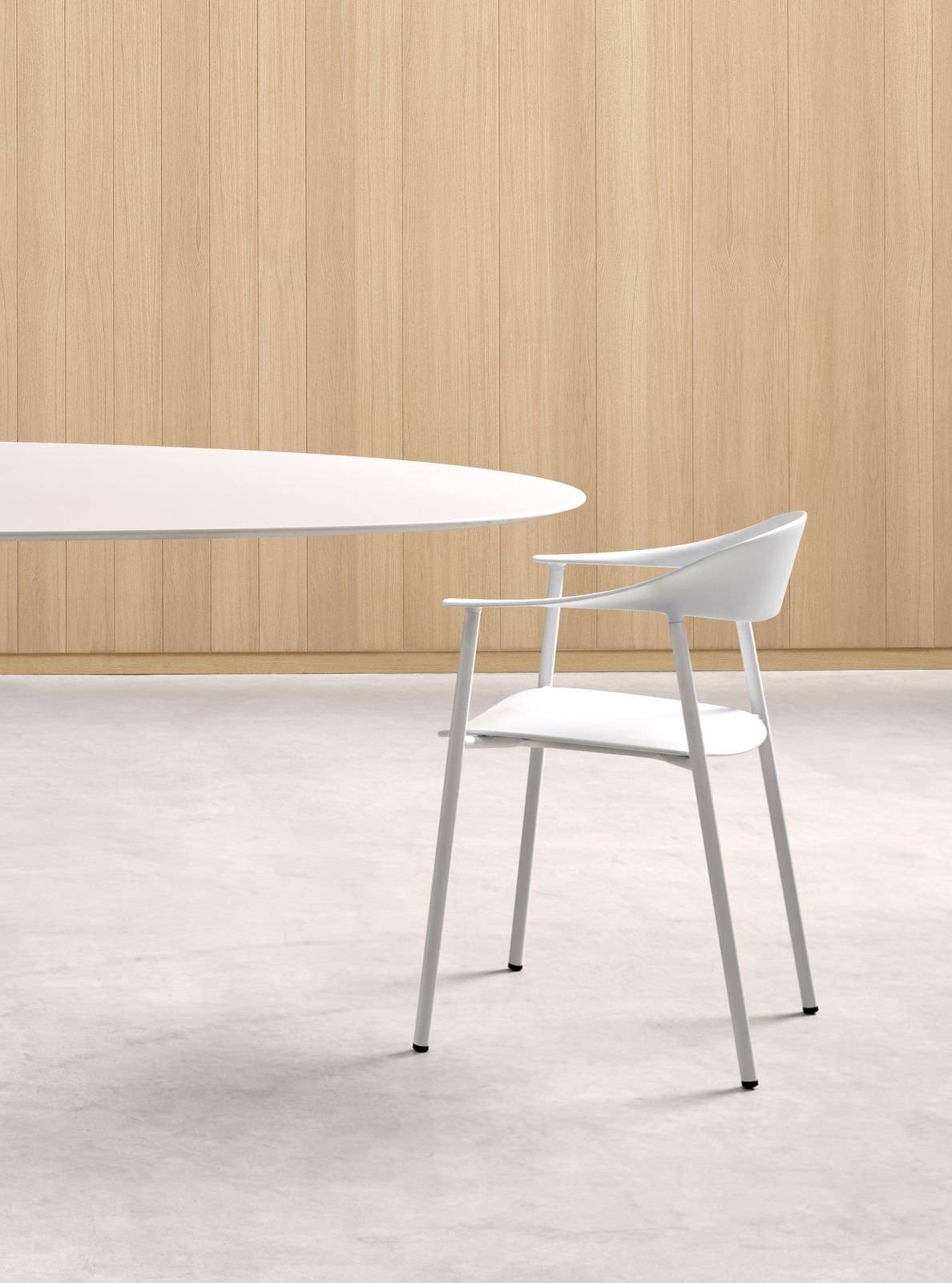 Arum is designed for transversal use in a wide variety of contexts. A unique armchair that stands out for its elegant curves, lightness and comfort. The wrap-around backrest is pleasant to the touch, fluid and ergonomic, while the seat is smoothly shaped like a river stone. The frame is constructed from steel tube with a polypropylene seat and back.