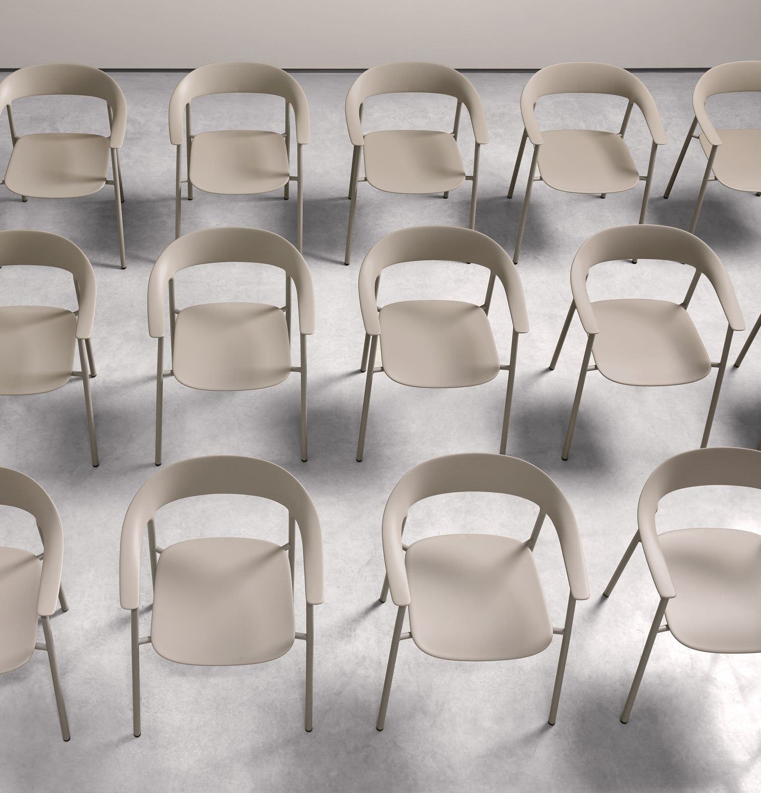 Arum armchairs are available in a wide selection of house colours, allowing a broad range of customisation possibilities to facilitate their integration into a multitude of environments and spaces.