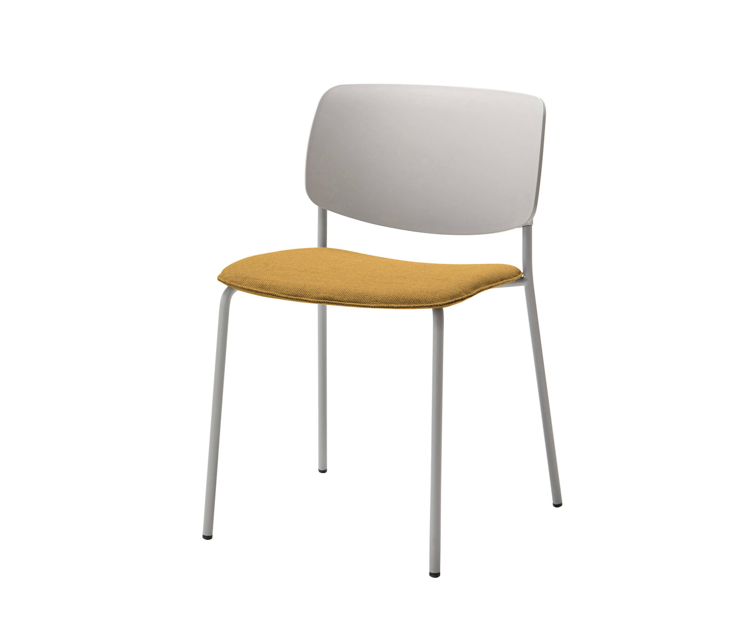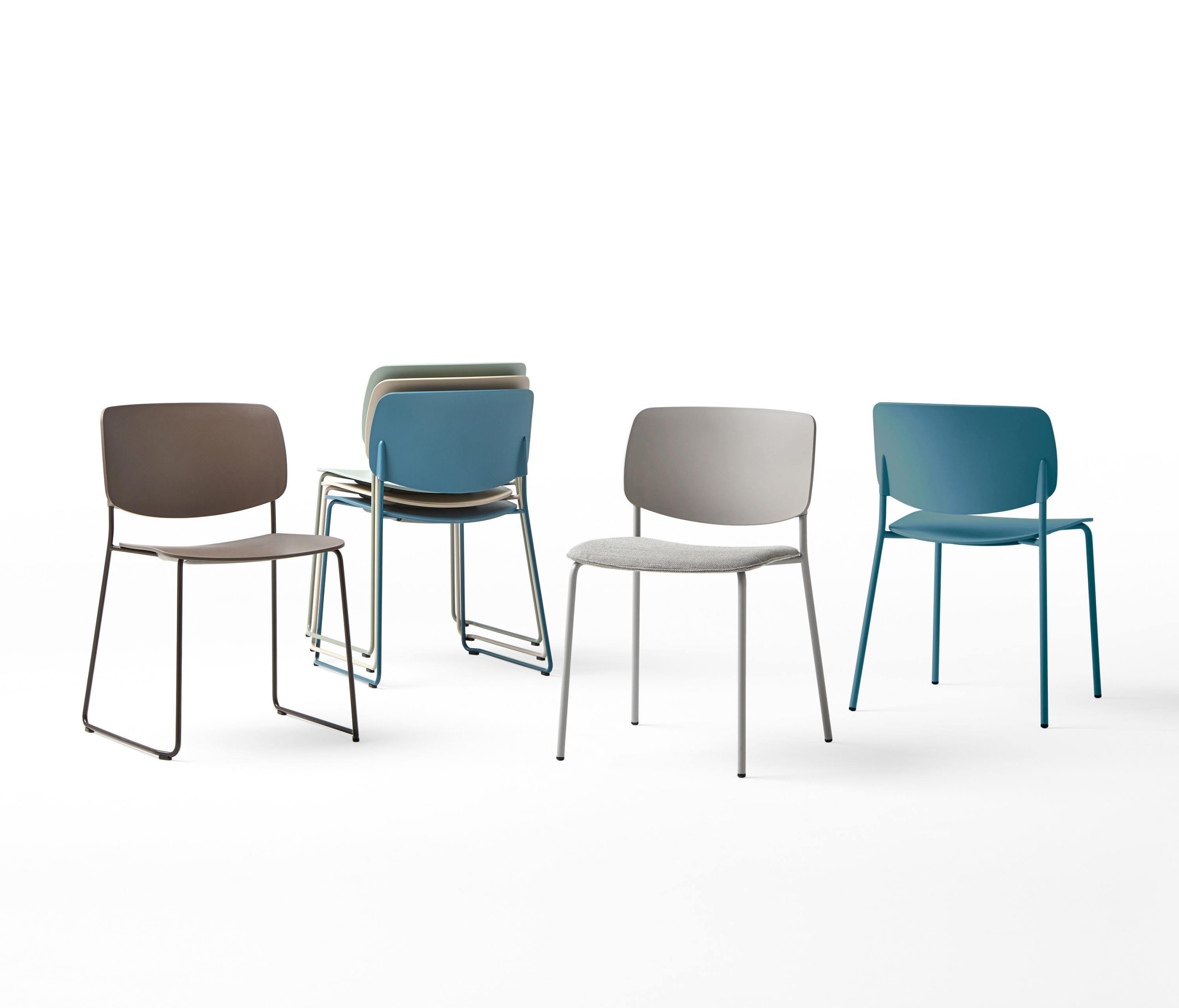 The seats and backrests are available in twelve vibrant plastic colours or fully upholstered. Their strength and stackability ensure years of everyday use in a wide range of public and private environments.
