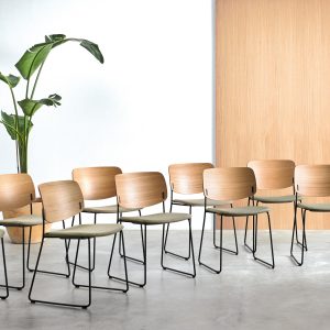 Contemporary and light the Aryn Wood stacking chair balances form and function whilst being visually appealing from any perspective. Designed with comfort in mind, Aryn Wood chairs are available with a 4-Leg or sled base, both of which are stackable.