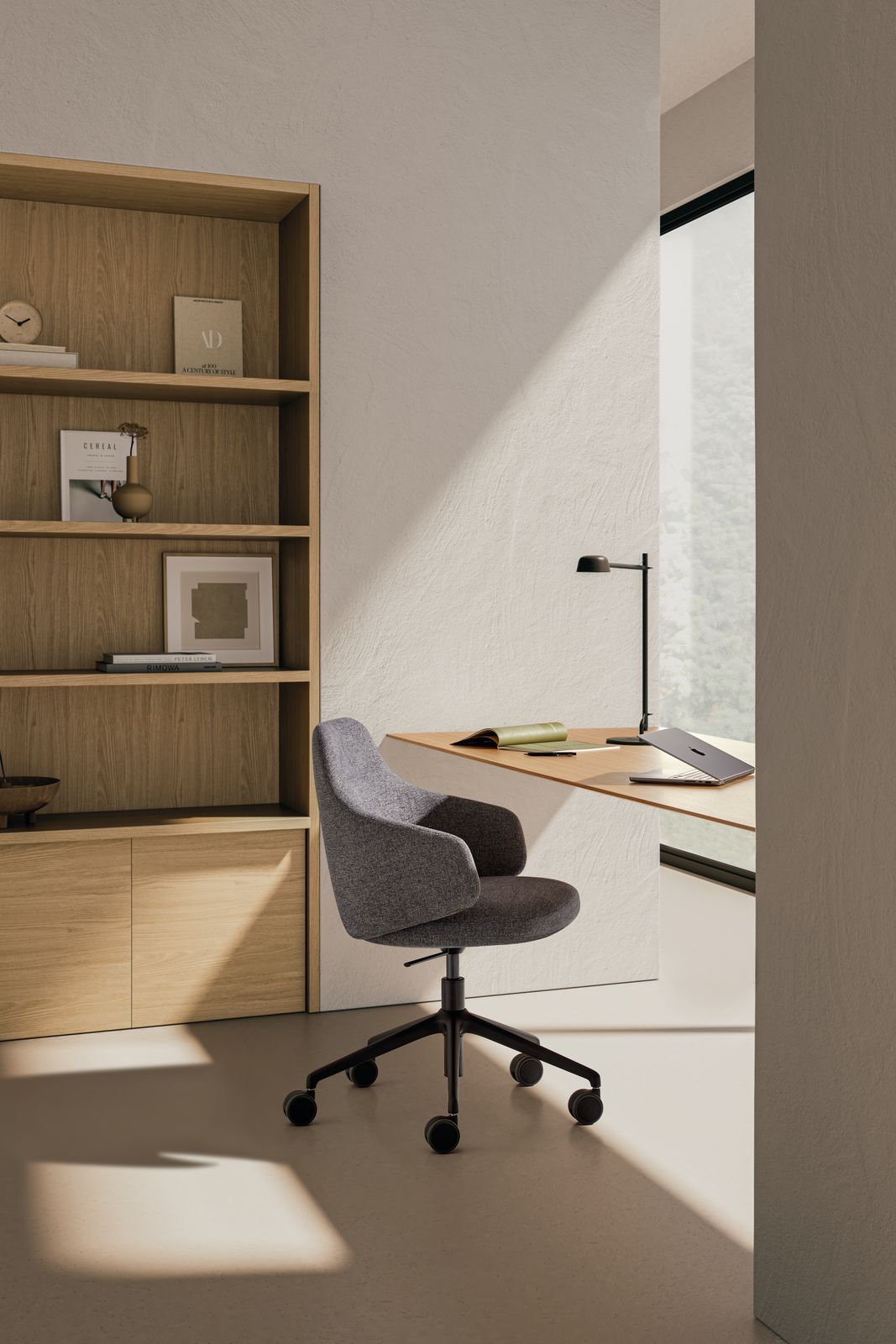 Binar’s versatile design allows the collection to easily inhabit meeting spaces, offices or coworking environments. Comfort, functionality, and versatility also make them ideal armchairs for hospitality spaces and waiting areas. The Binar is also well suited to home office spaces as it fits the requirements of a light task chair.