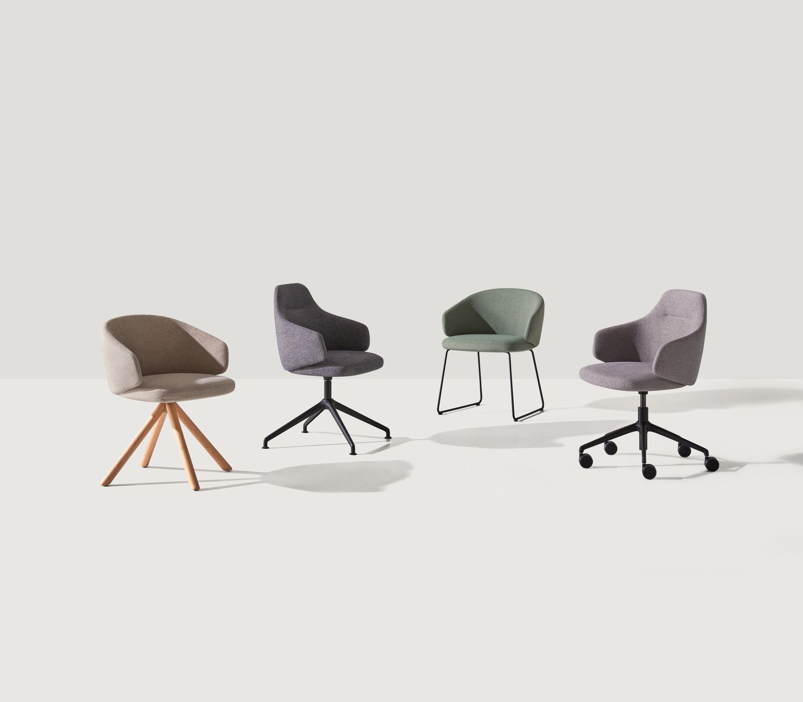Binar’s versatile design allows the collection to easily inhabit meeting spaces, offices or coworking environments. Comfort, functionality, and versatility also make them ideal armchairs for hospitality spaces and waiting areas. The Binar is also well suited to home office spaces as it fits the requirements of a light task chair.