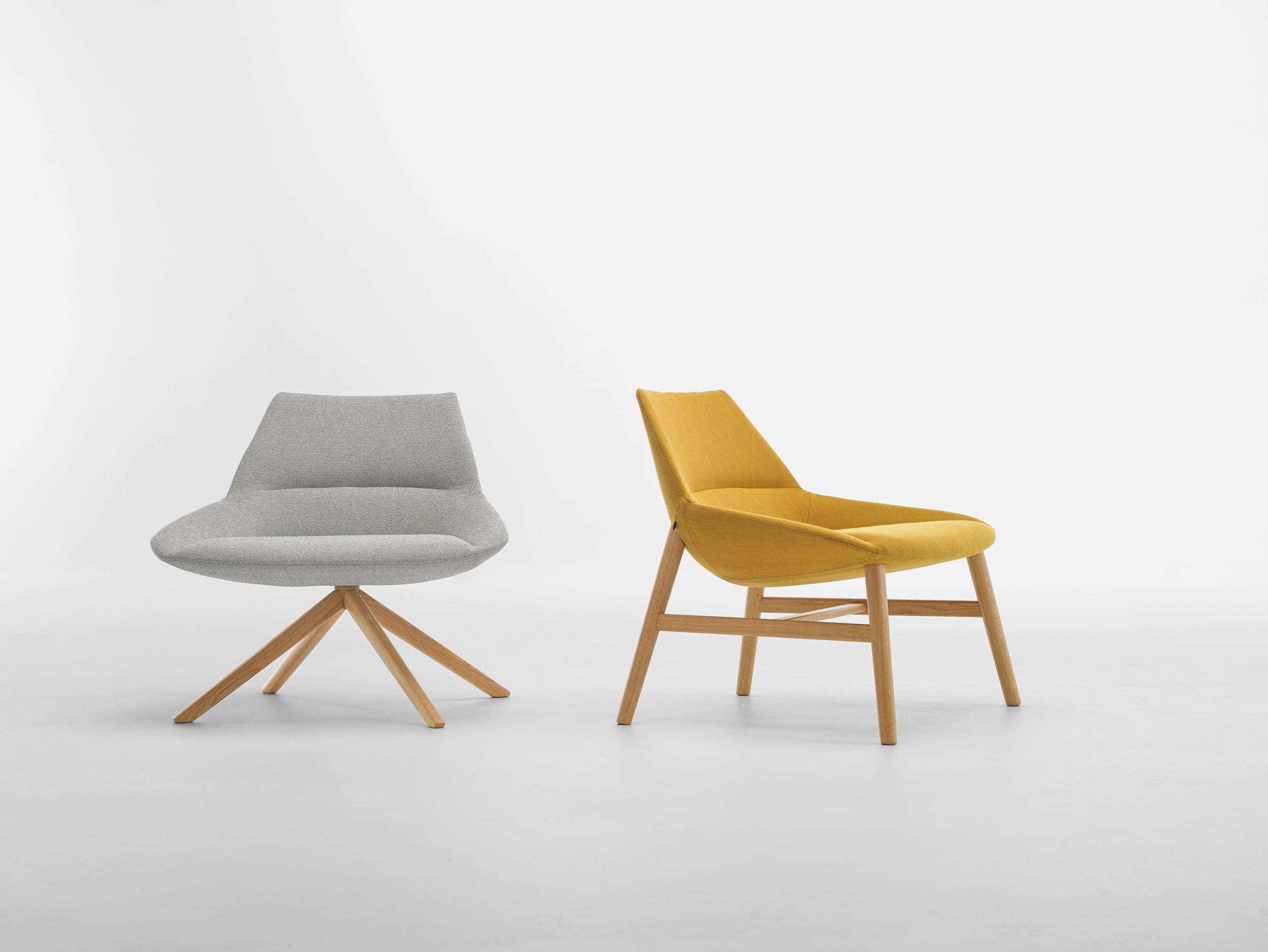 The lounges are available in two backrest heights which can be combined with a variety of bases; Sled, 4-Way Swivel, Timber 4 Leg and Timber Trestle options.