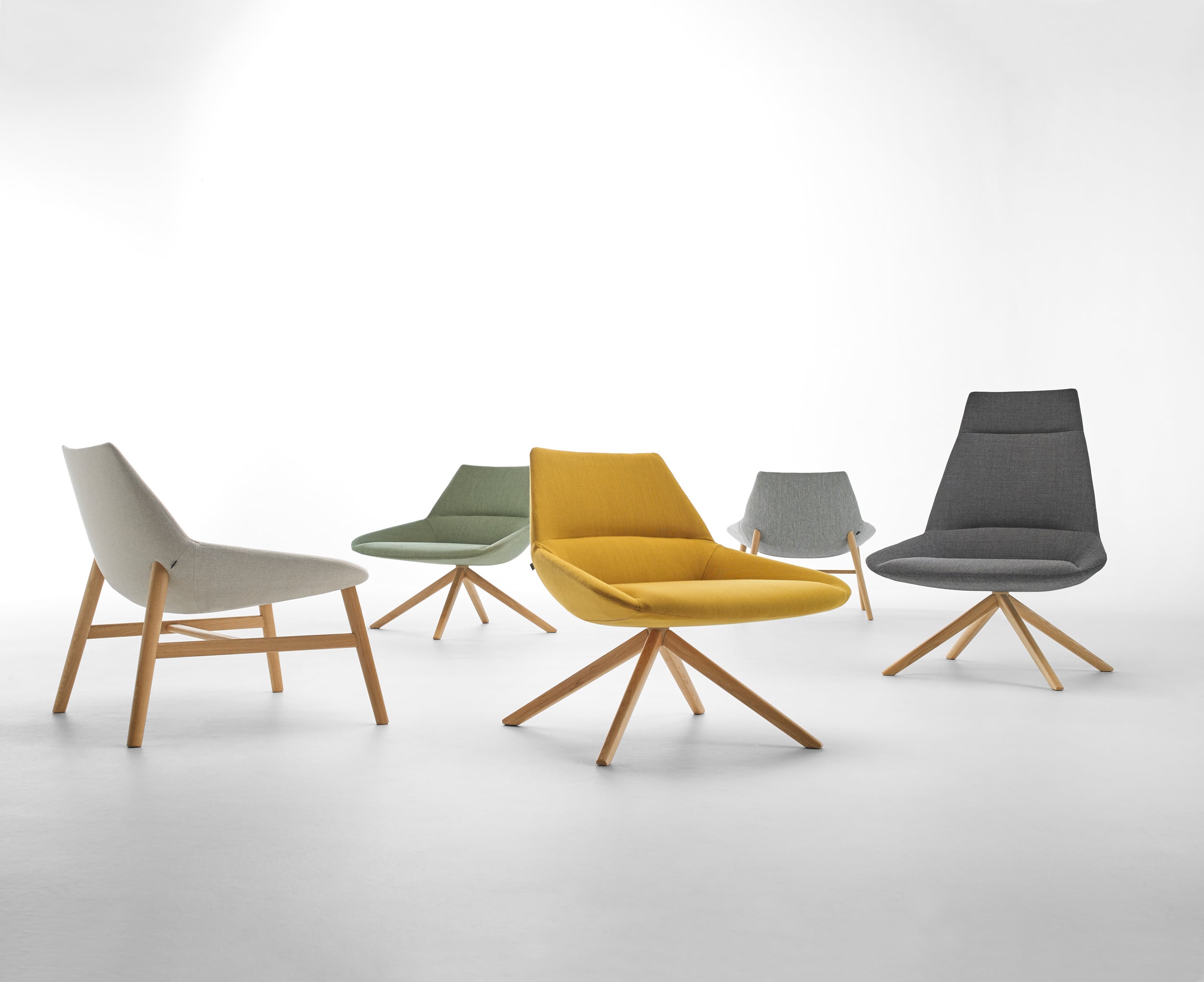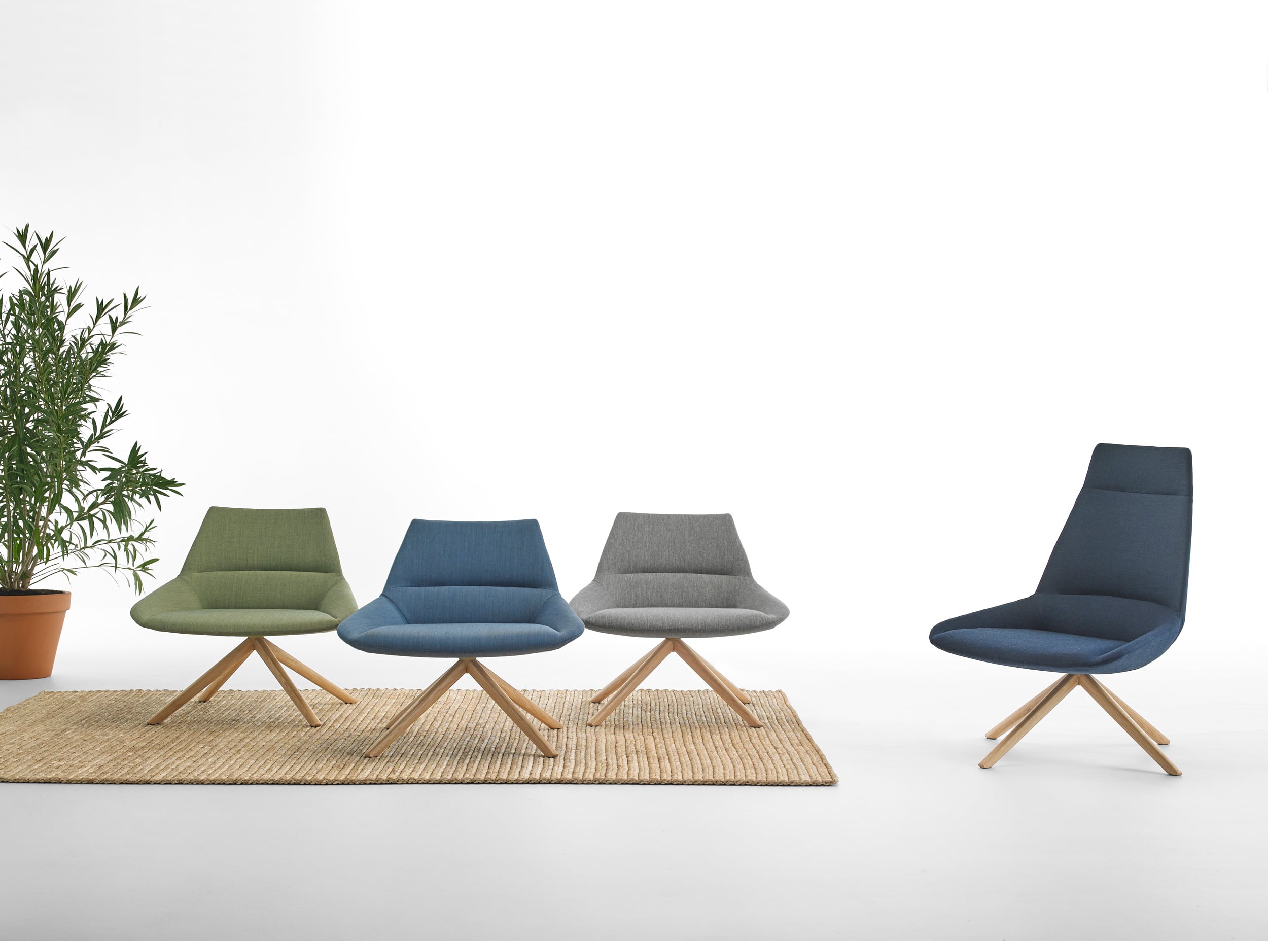 The lounges are available in two backrest heights which can be combined with a variety of bases; Sled, 4-Way Swivel, Timber 4 Leg and Timber Trestle options.