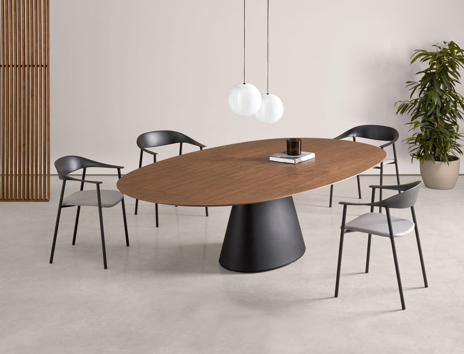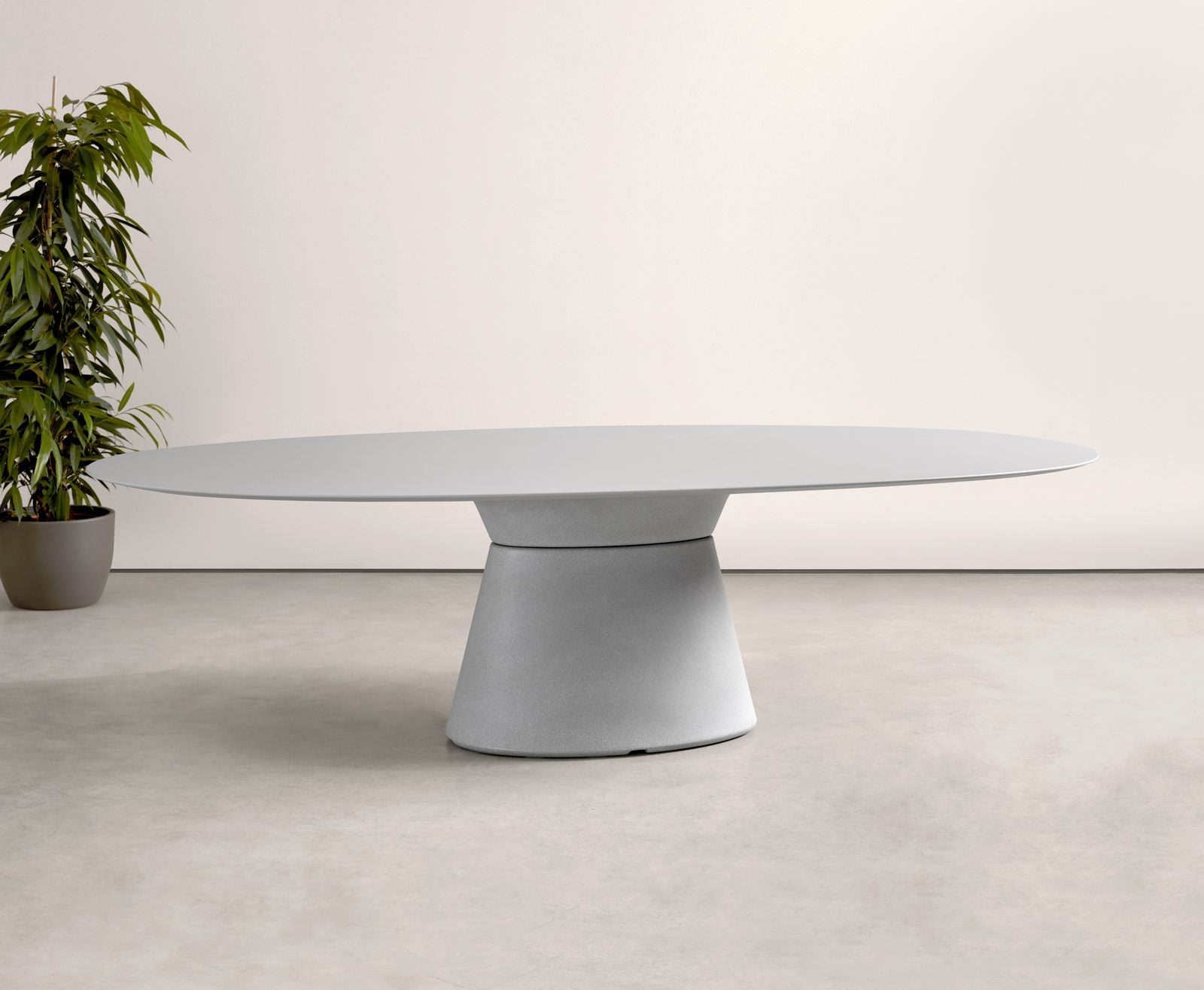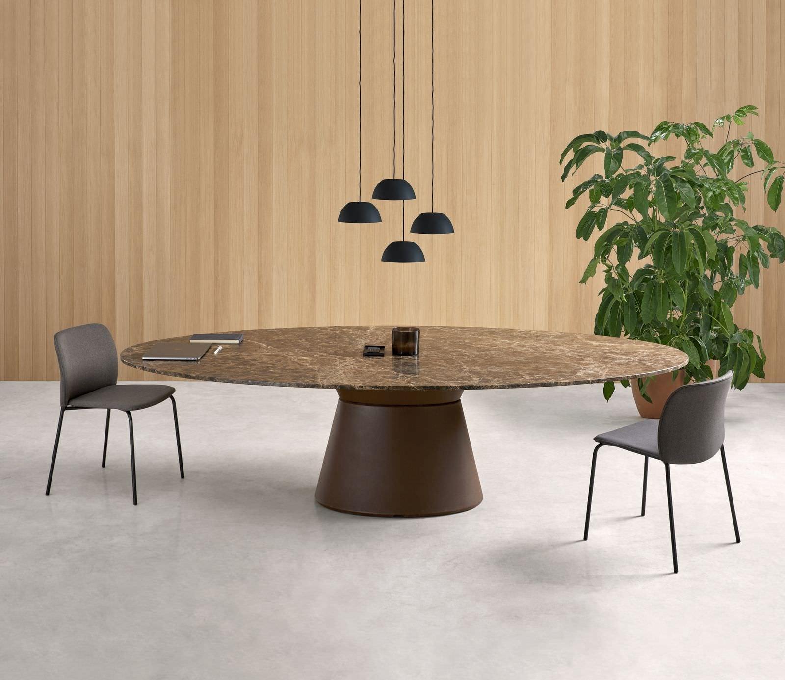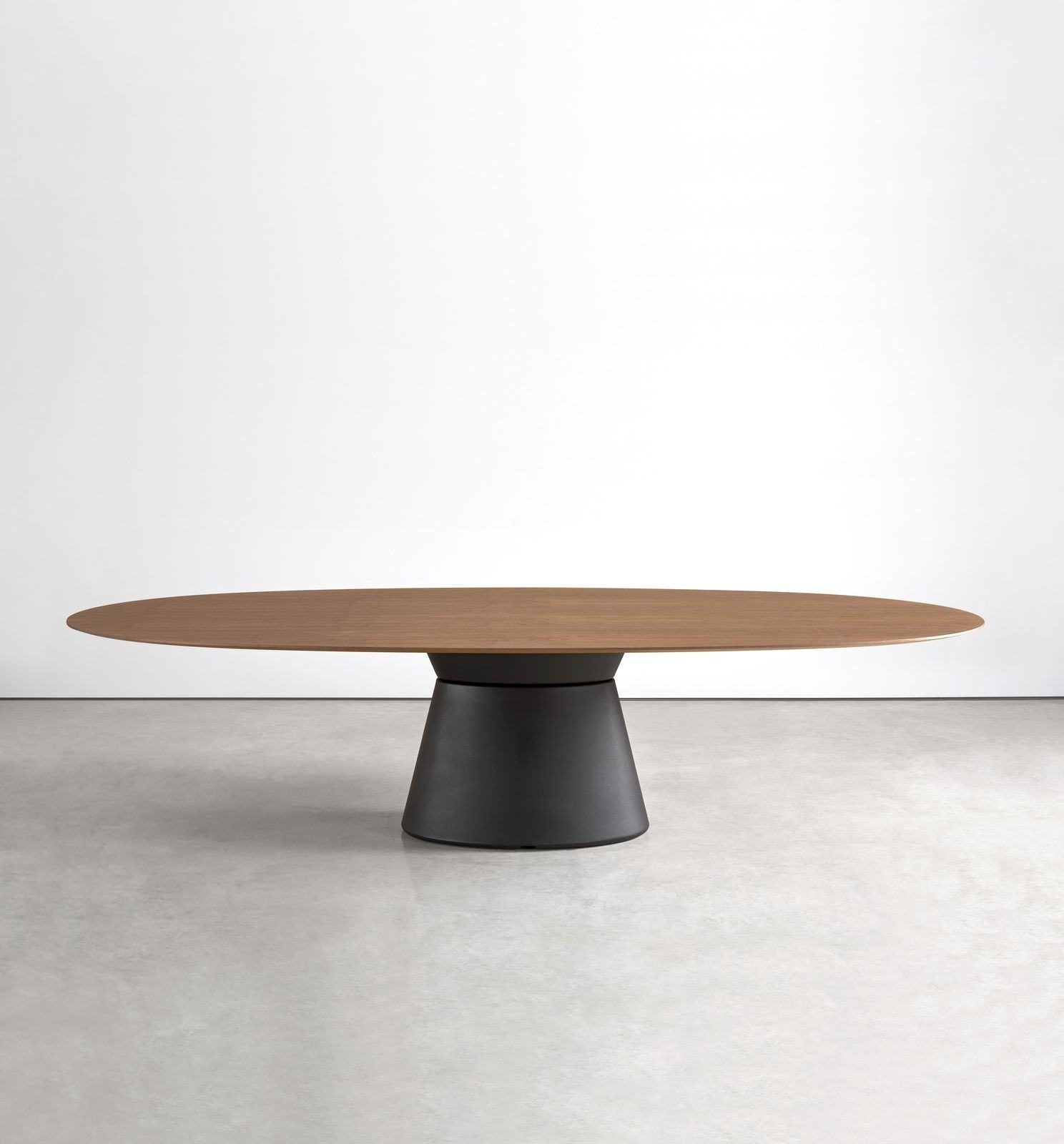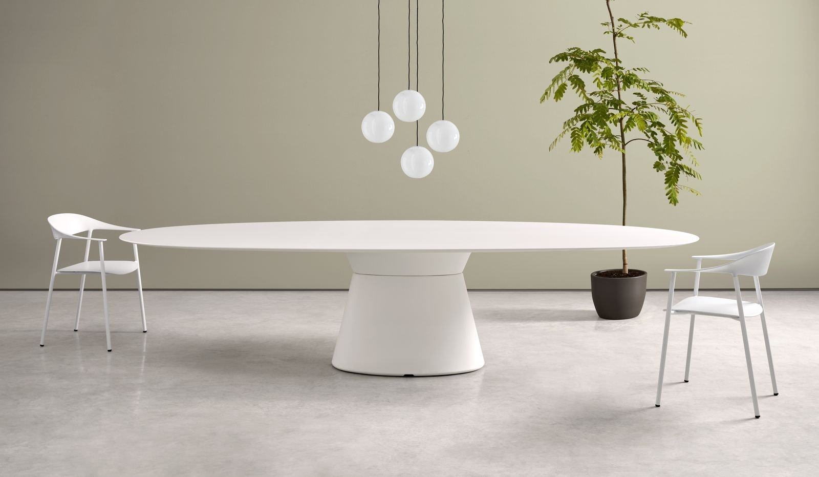 Designed by Jonathan Prestwich, the Essens table base collection from Inclass, Spain combines versatility, beauty and harmonious proportions — perfectly balancing two sculptural volumes. Highly transversal, the Essens family of table bases includes six different shapes and sizes, allowing specifiers to compose tables in an endless variety of formats.