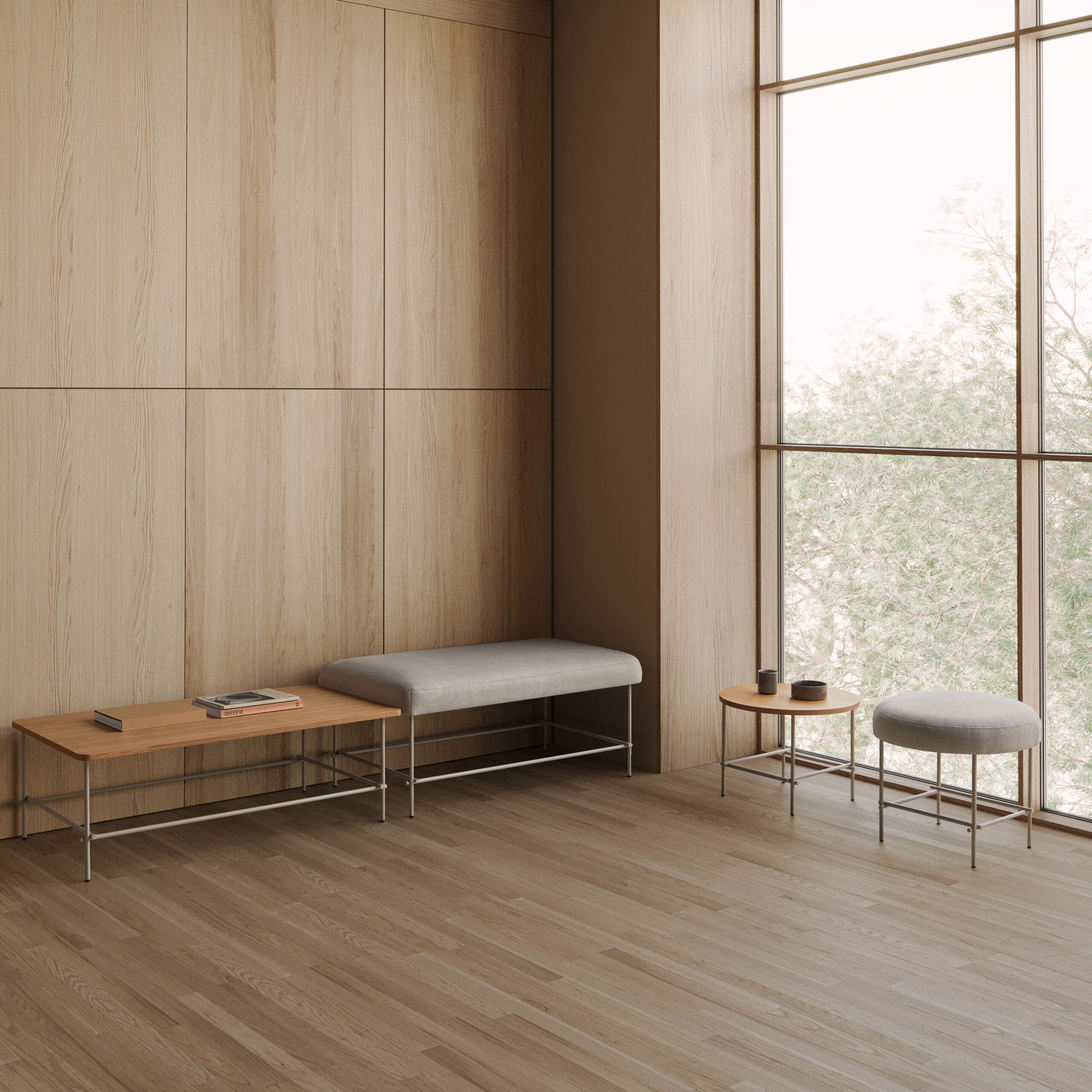 The Nuc program comprises a variety of side tables and poufs which combine versatility, style, and contemporary elegance. Each element of the collection is designed to work independently or be freely combined to create unique and functional compositions.