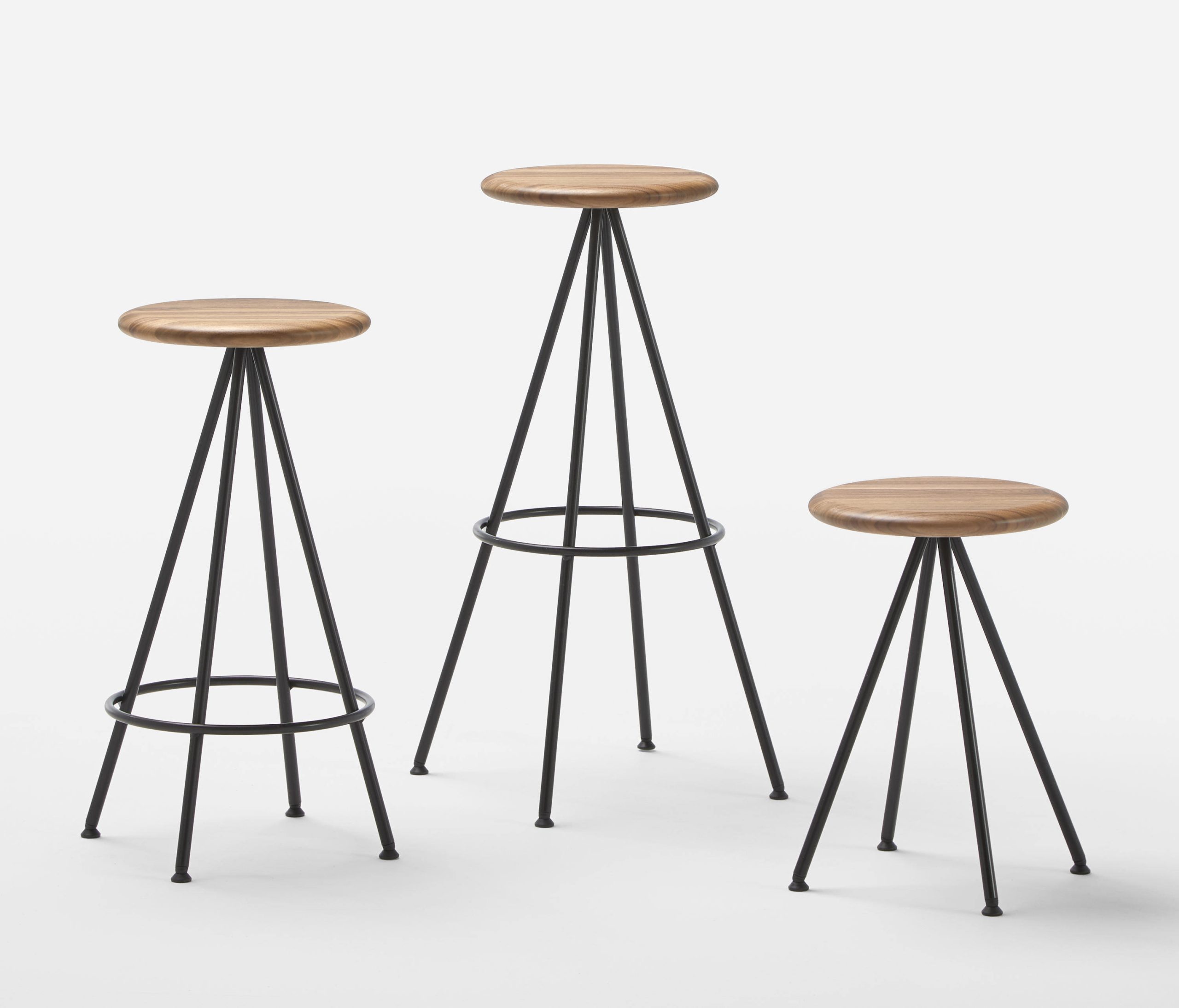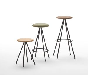 The stools are manufactured in three frame heights with the option of a solid timber or fully upholstered seat.