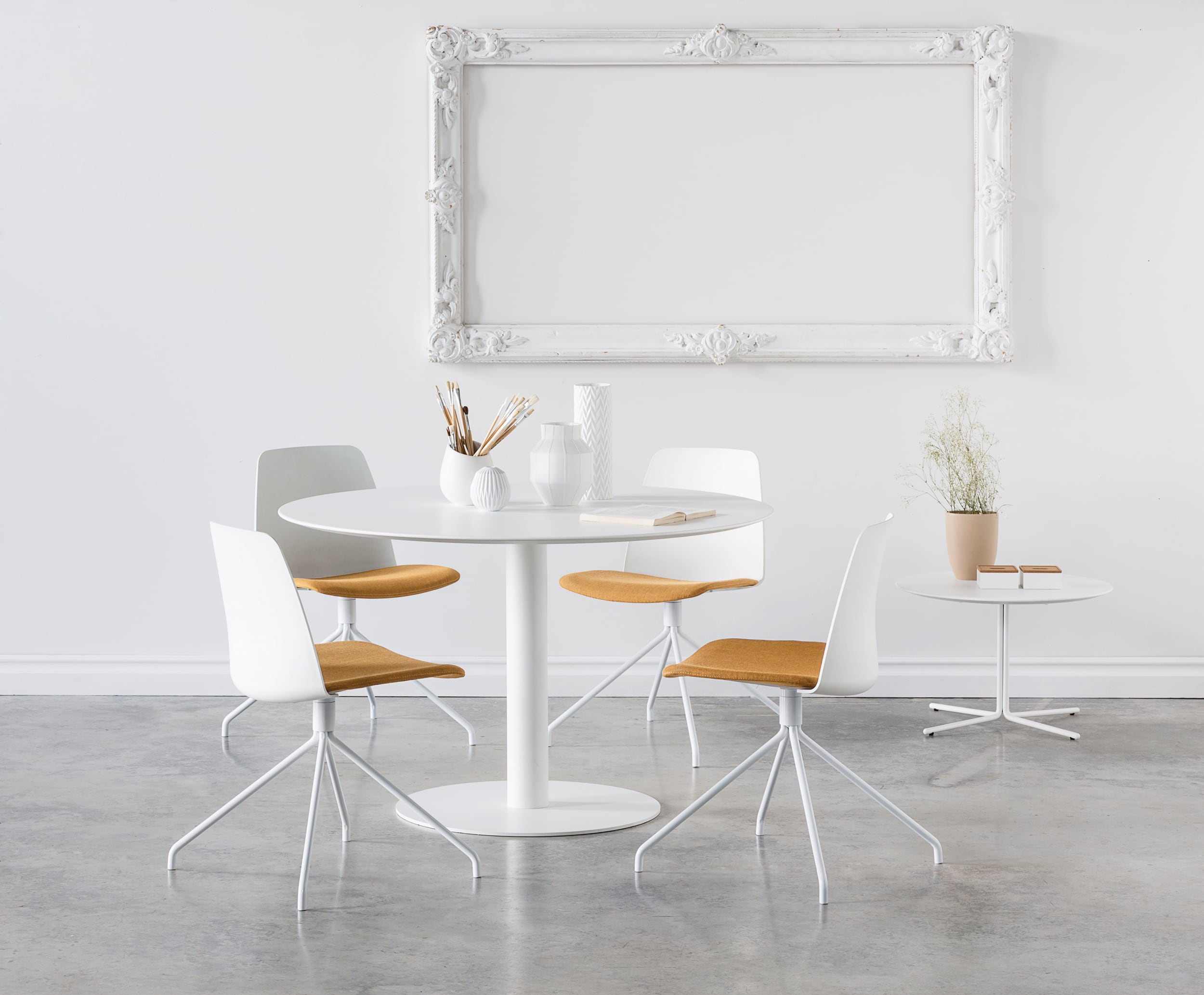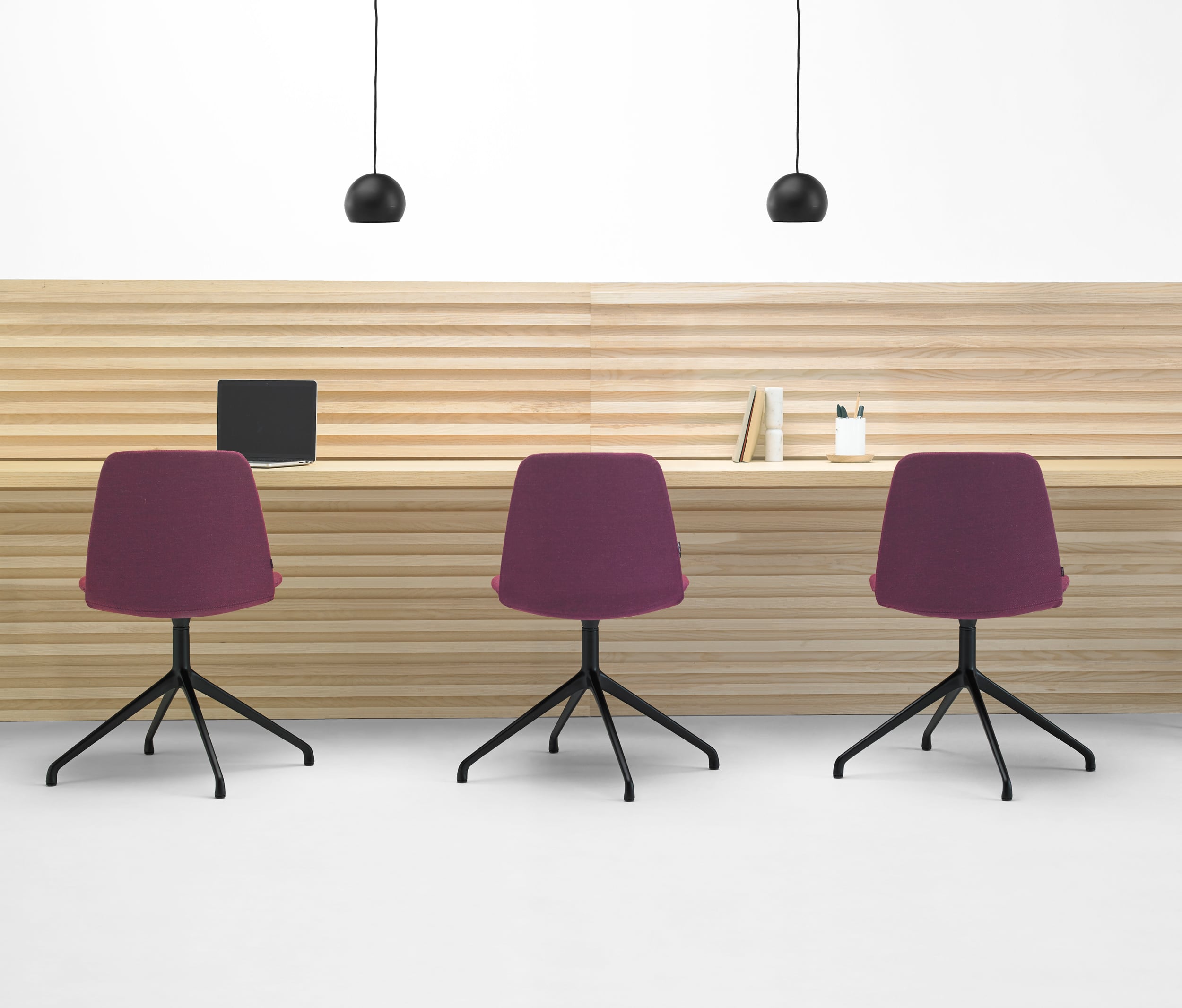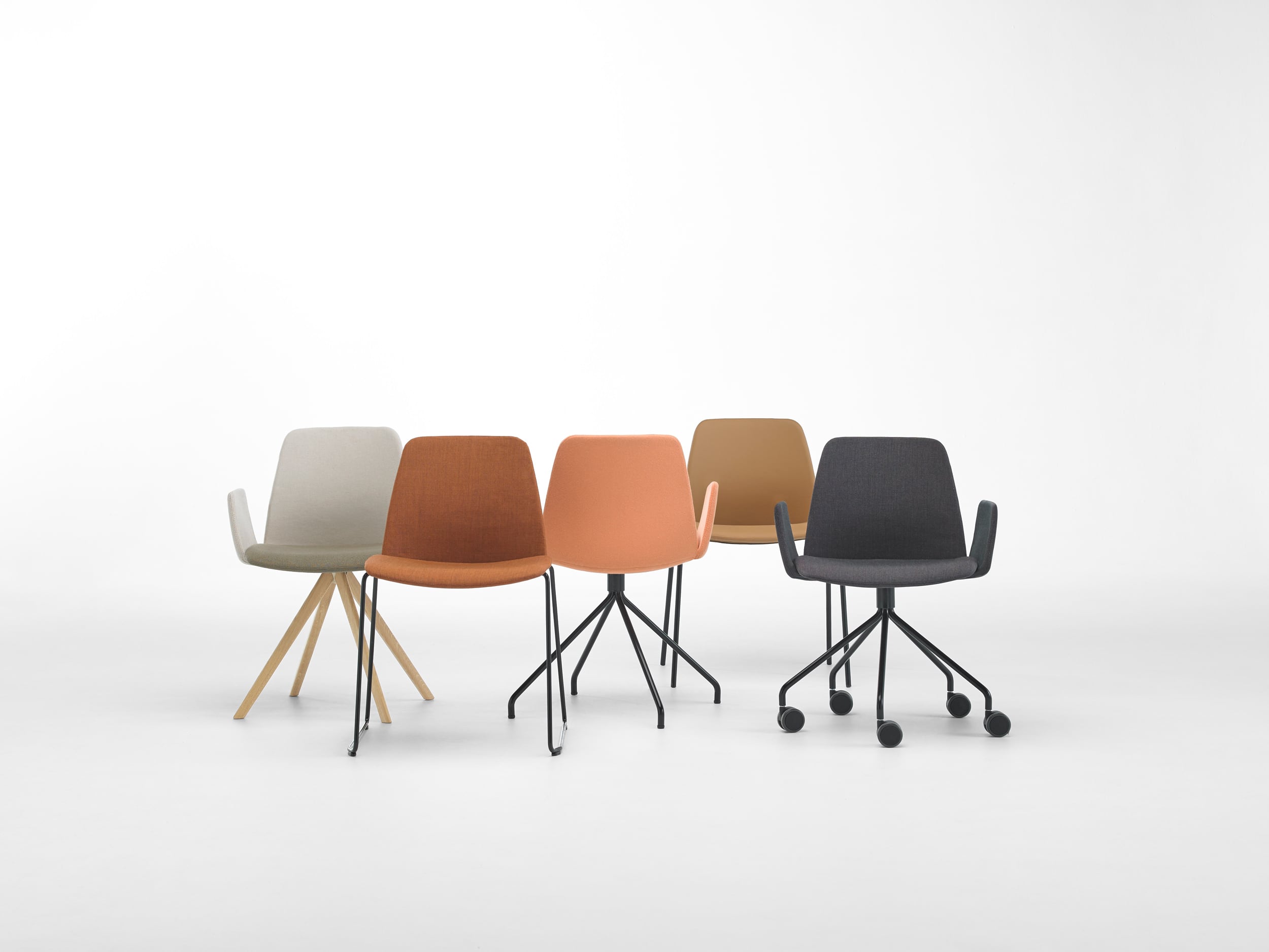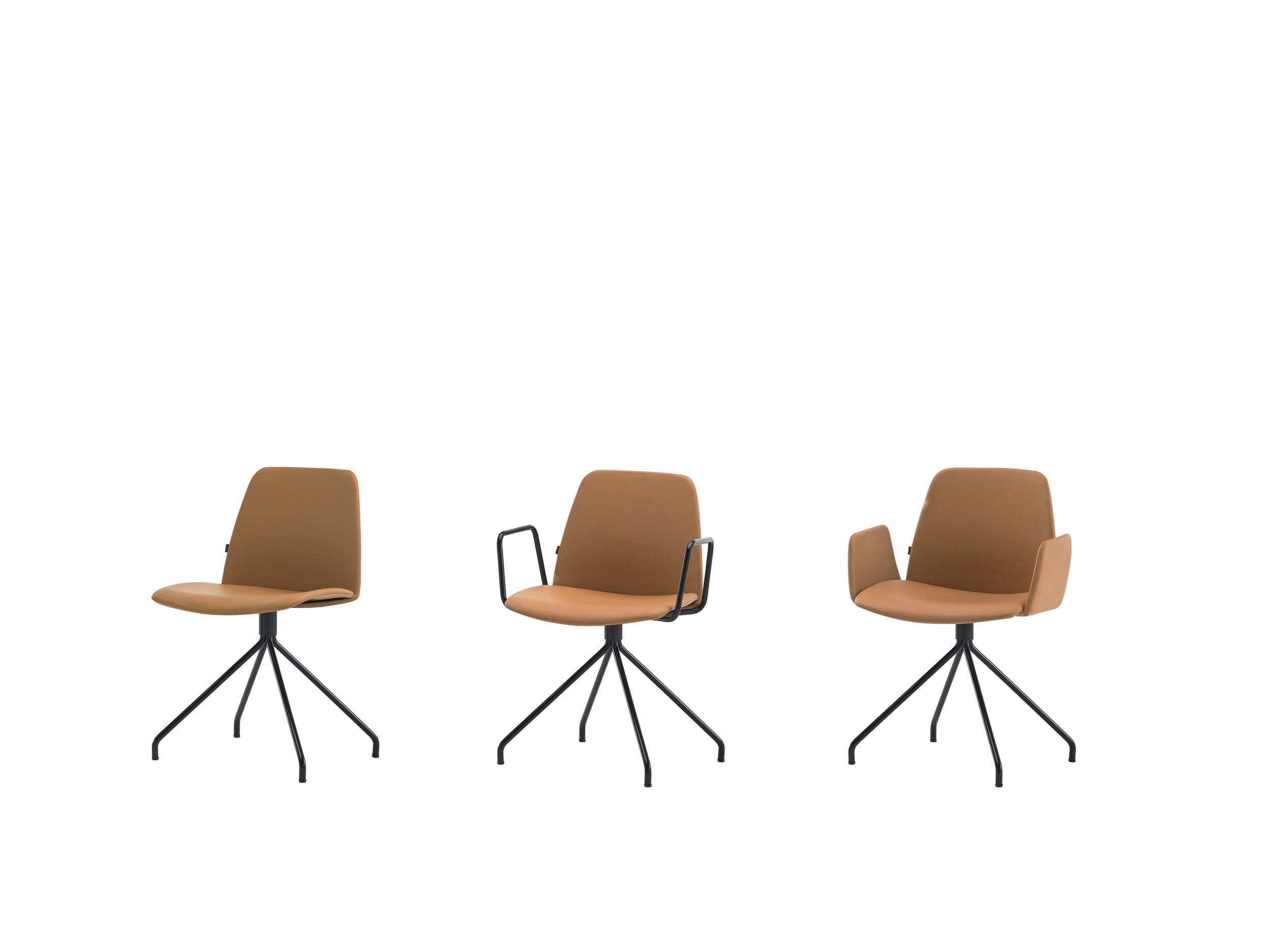 The Unnia family includes the following base options; 4 Leg (metal and timber), Sled, 4-Way Swivel, 4-Way Pedestal and 5-Way Swivel chair on castors. All chairs are available with or without arms, and in selected house colours or finishes. Also available to complement the range are the Unnia Soft lounge chairs available with both sled and swivel bases.
