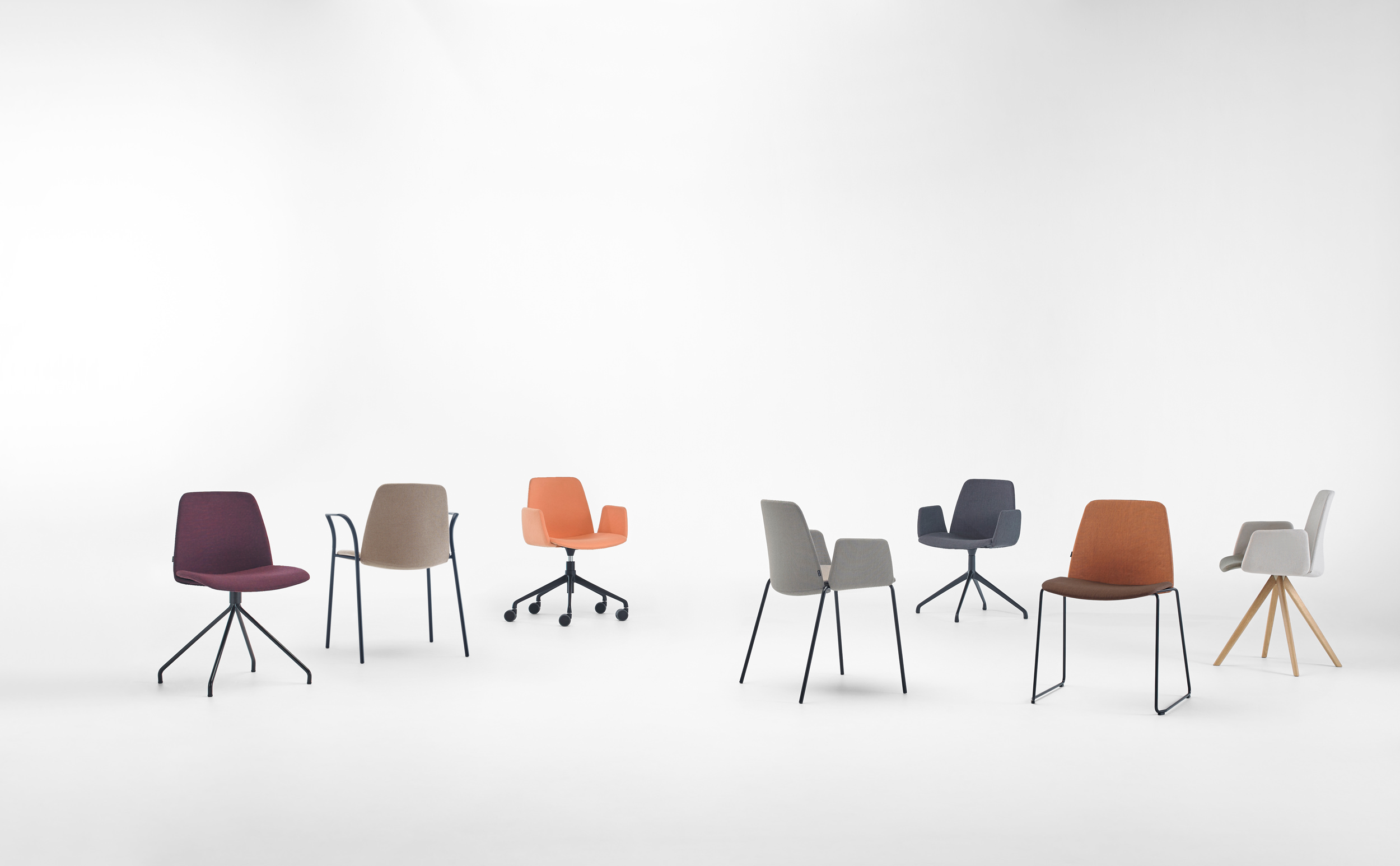 The Unnia family includes the following base options; 4 Leg (metal and timber), Sled, 4-Way Swivel, 4-Way Pedestal and 5-Way Swivel chair on castors. All chairs are available with or without arms, and in selected house colours or finishes. Also available to complement the range are the Unnia Soft lounge chairs available with both sled and swivel bases.