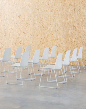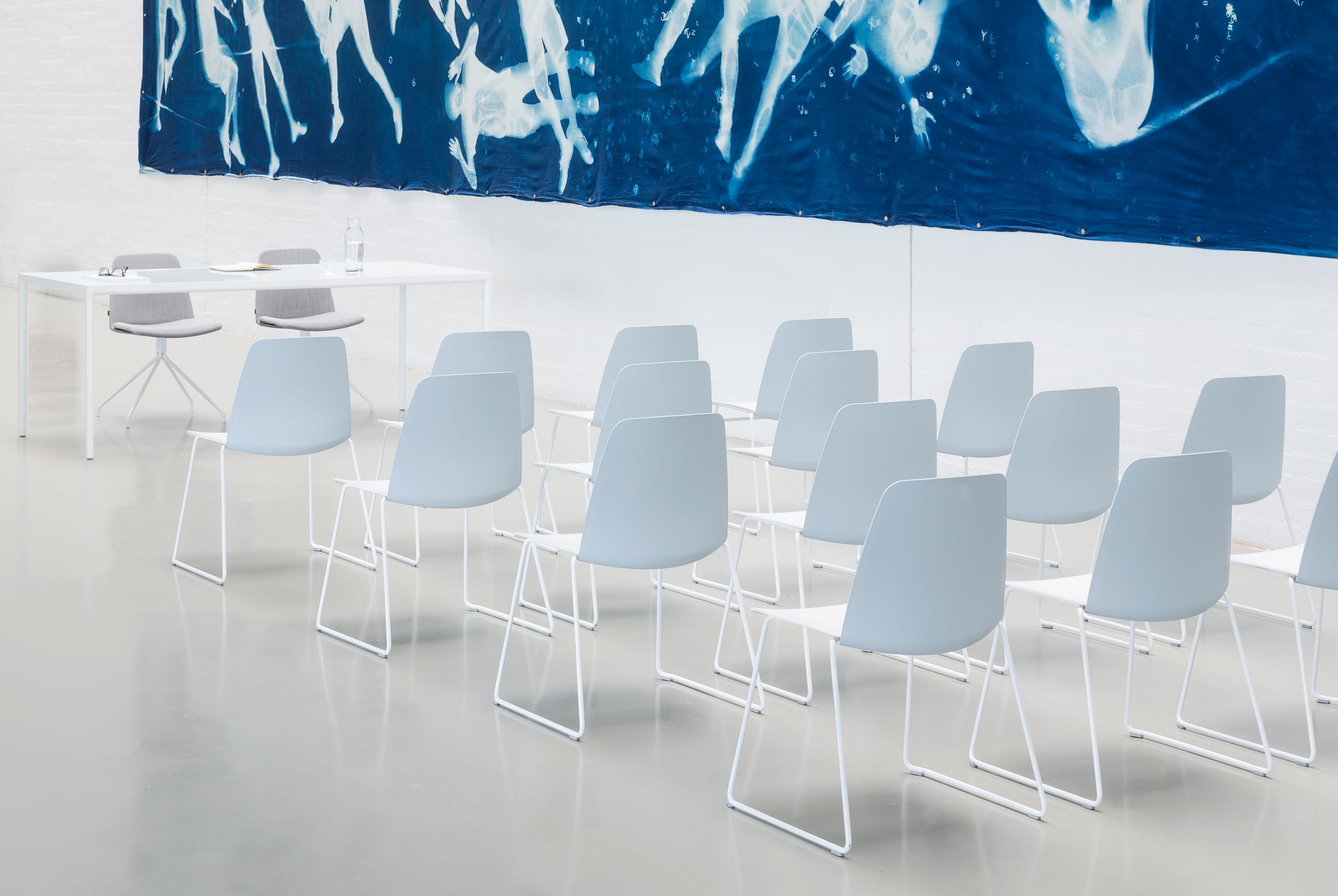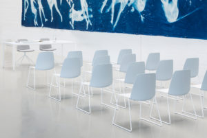 The Unnia 4 Leg and sled base chair are stackable up to 10 chairs on the floor or 20 chairs on a trolley. Accessories include a stacking trolley, writing tablet, linking mechanism and the option of nylon or felt glides to suit customer floor types.