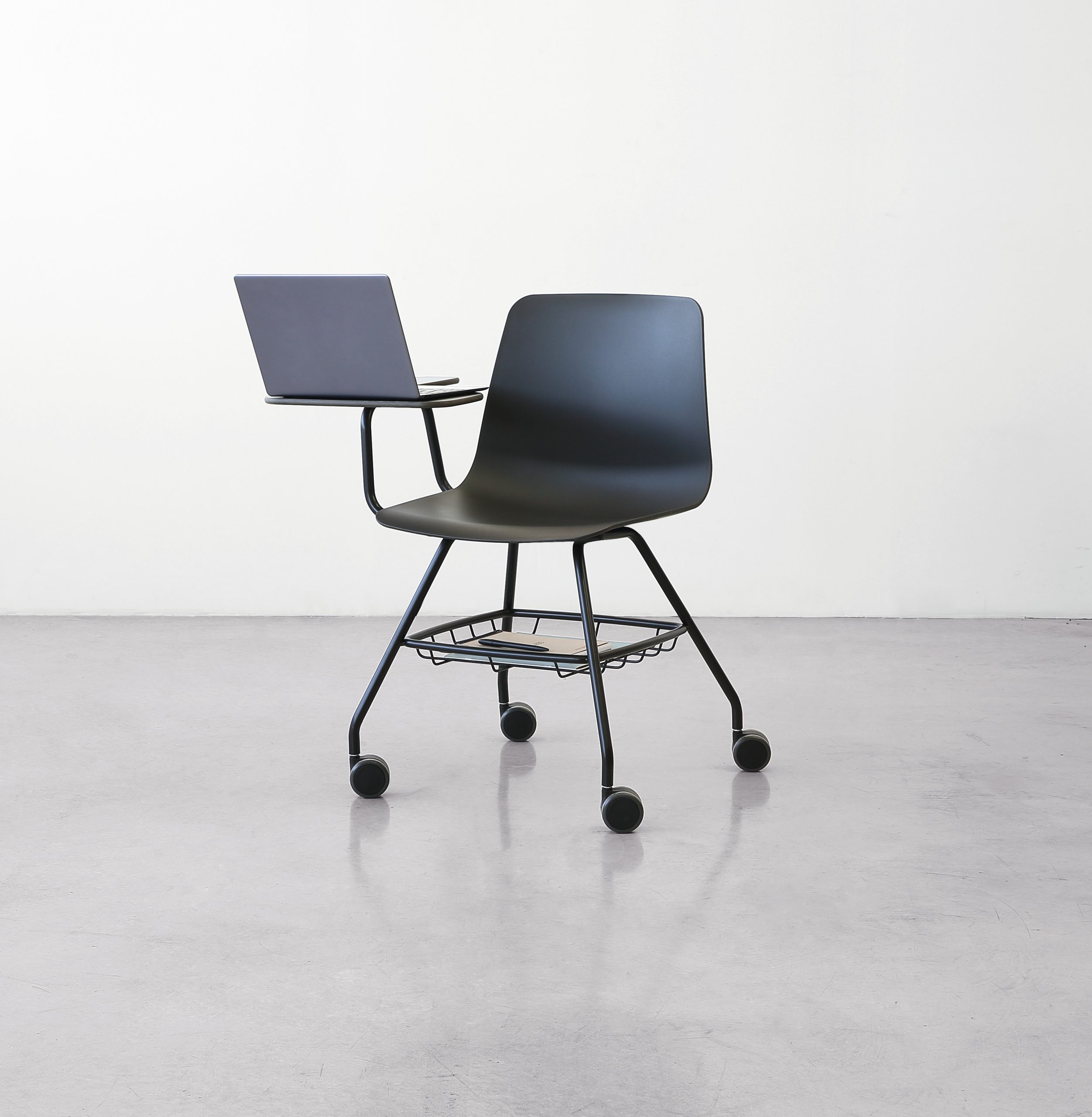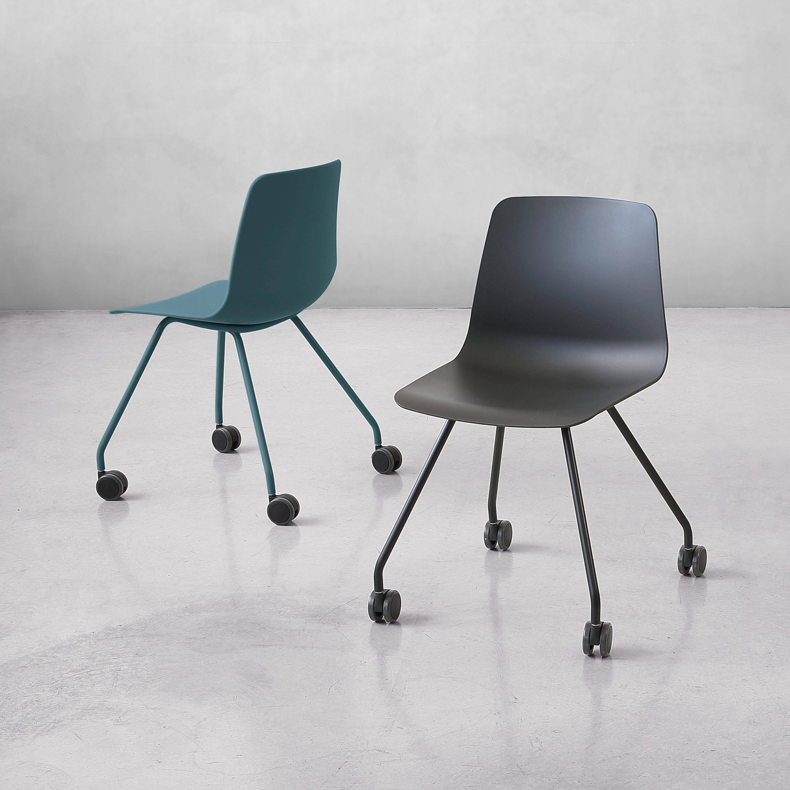 The Varya collection comprises an extensive range of chairs, armchairs, stools and benches. The seat shell is available in moulded thermoplastic in twelve colours and also upholstered in three variants. The collection is generated by combining comfortable seats and different metallic or timber bases.