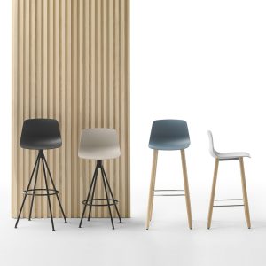 The Varya collection comprises an extensive range of chairs, armchairs, stools and benches. The seat shell is available in moulded thermoplastic in twelve colours and also upholstered in three variants. The collection is generated by combining comfortable seats and different metallic or timber bases.