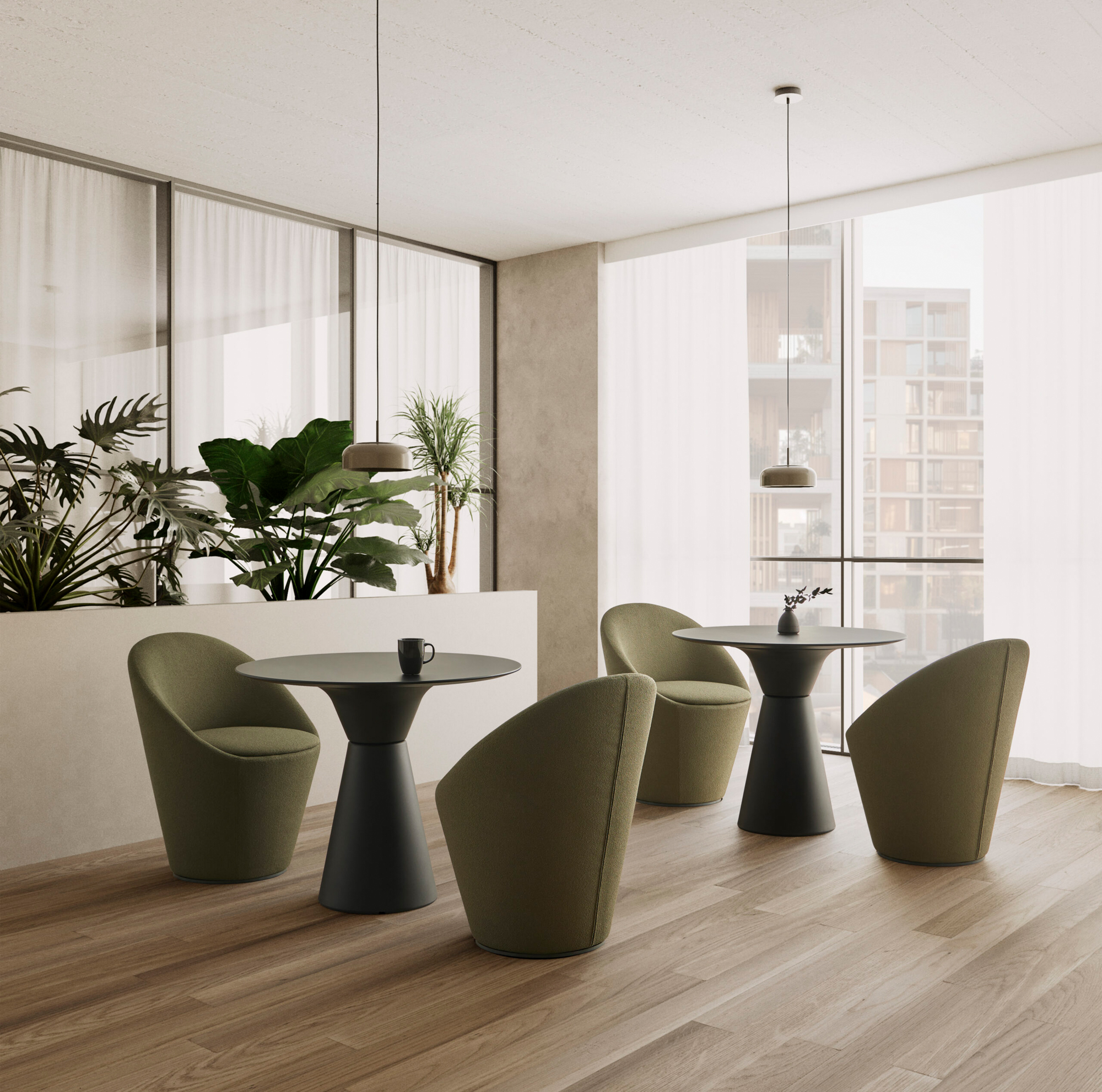 Comprising four elements: lounge armchair, armchair, pouf, and side table, this collection combines elegance with sustainability and functionality. Its smooth, enveloping, and organic lines radiate warmth and harmony while providing a welcoming comfort.