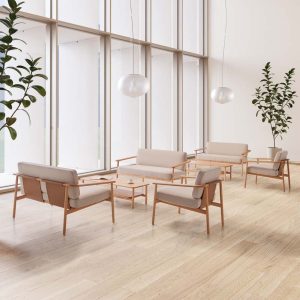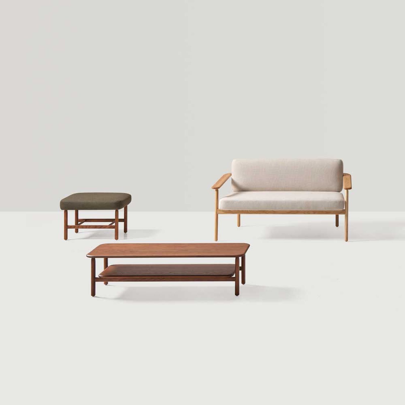 The Wudi Collection of armchairs, ottomans, benches and side tables combine tradition and modernity through the use of wood. Timeless characteristics are embraced across the design of this collection culminating in soft and inviting aesthetic.