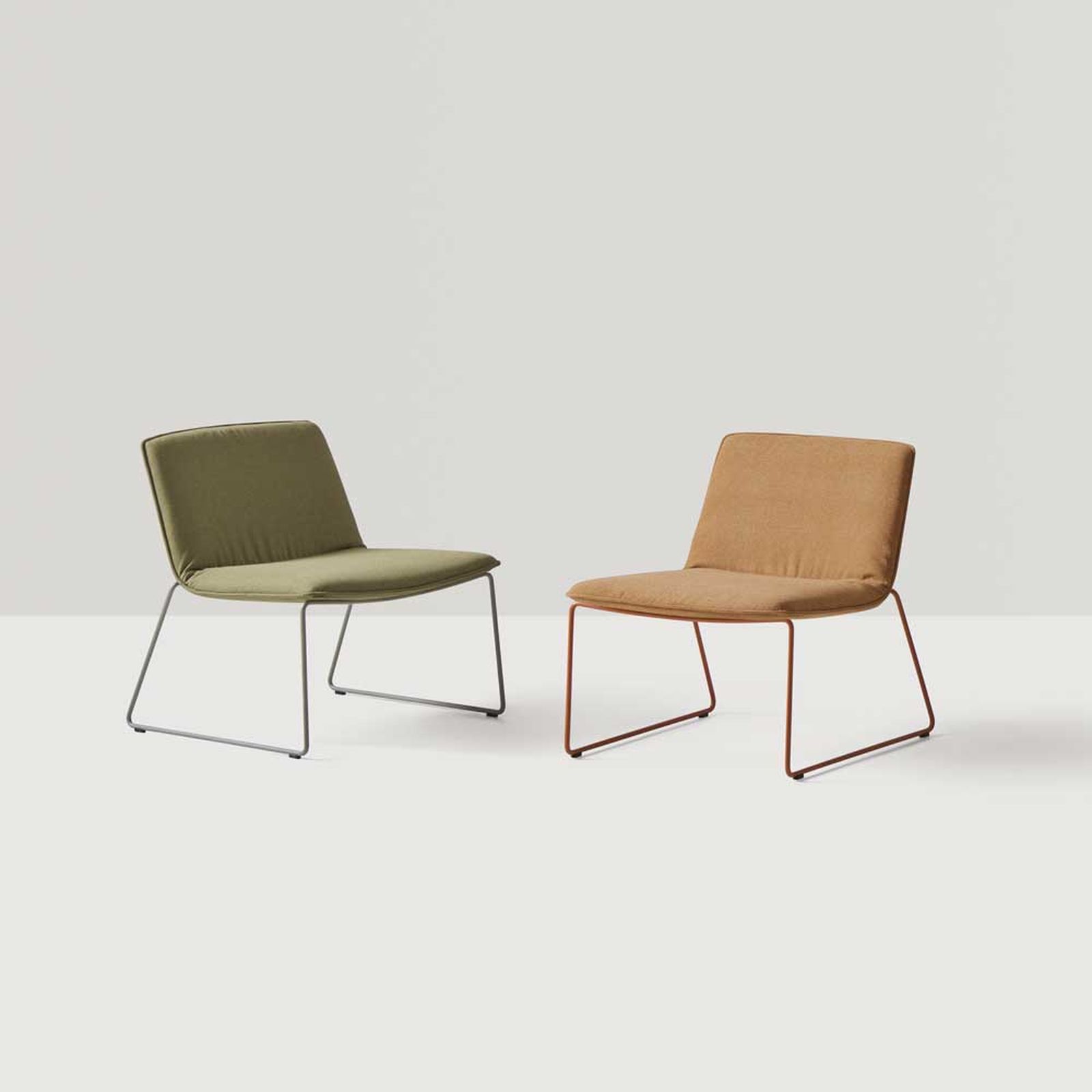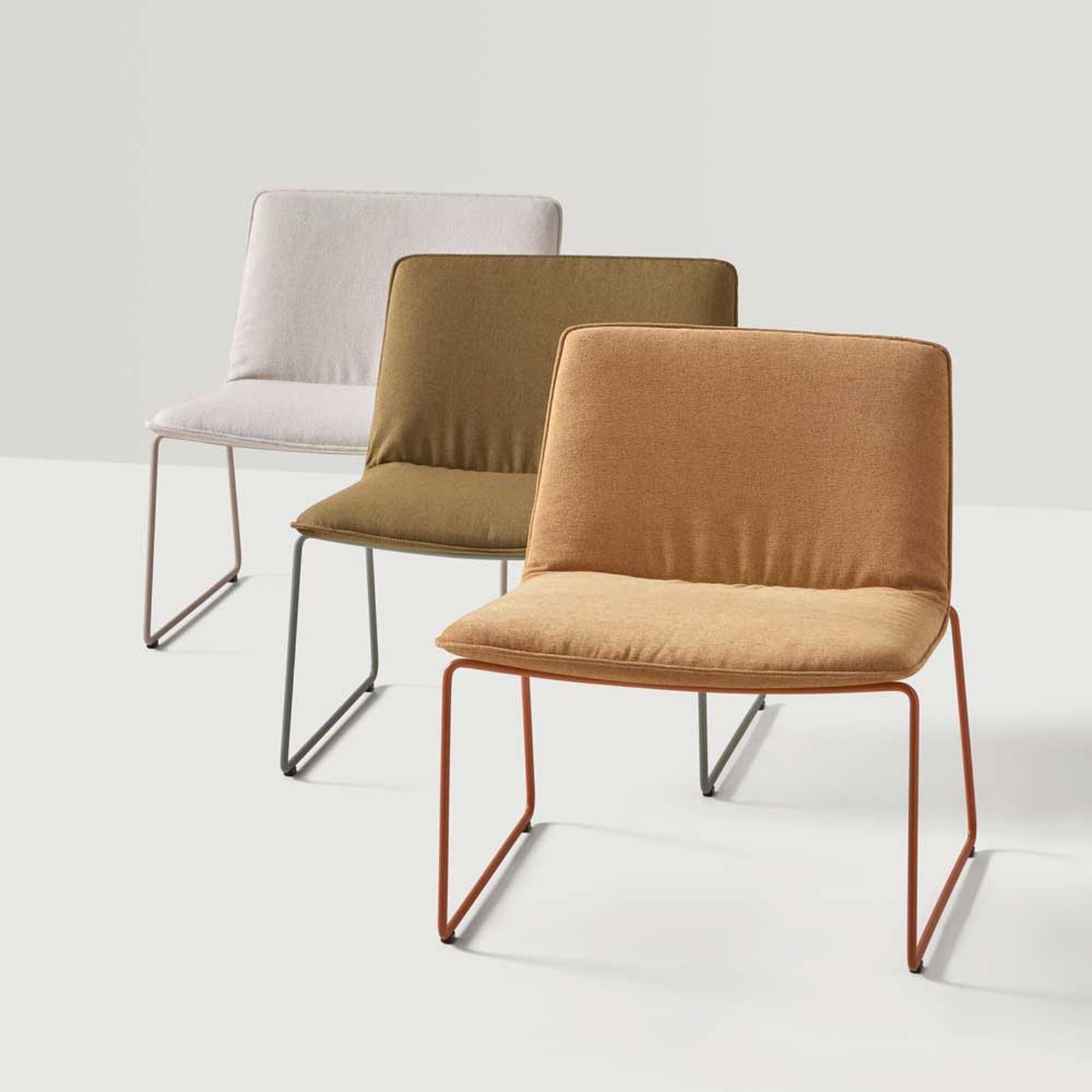 The armchairs are available with two frame versions: sled or metal 4-leg and with optional upholstered armrests. Xail’s generous seats and sturdy structure is also available in a wide selection of finishes that allow multiple combinations, facilitating their integration in lounge or waiting spaces.